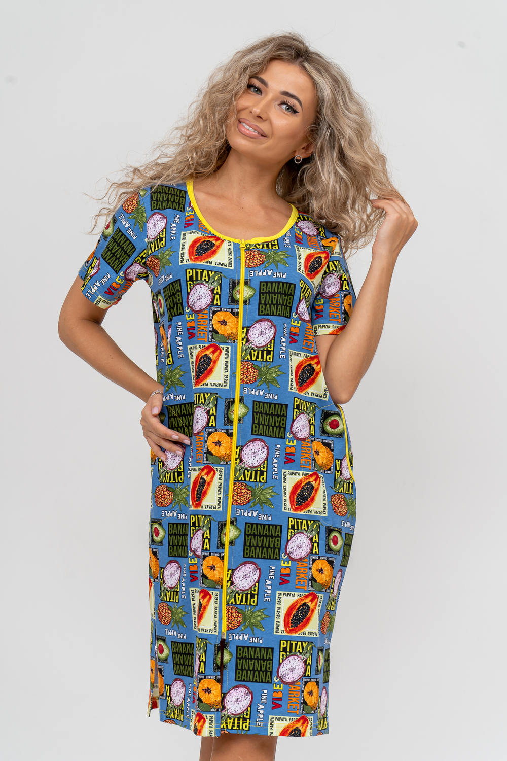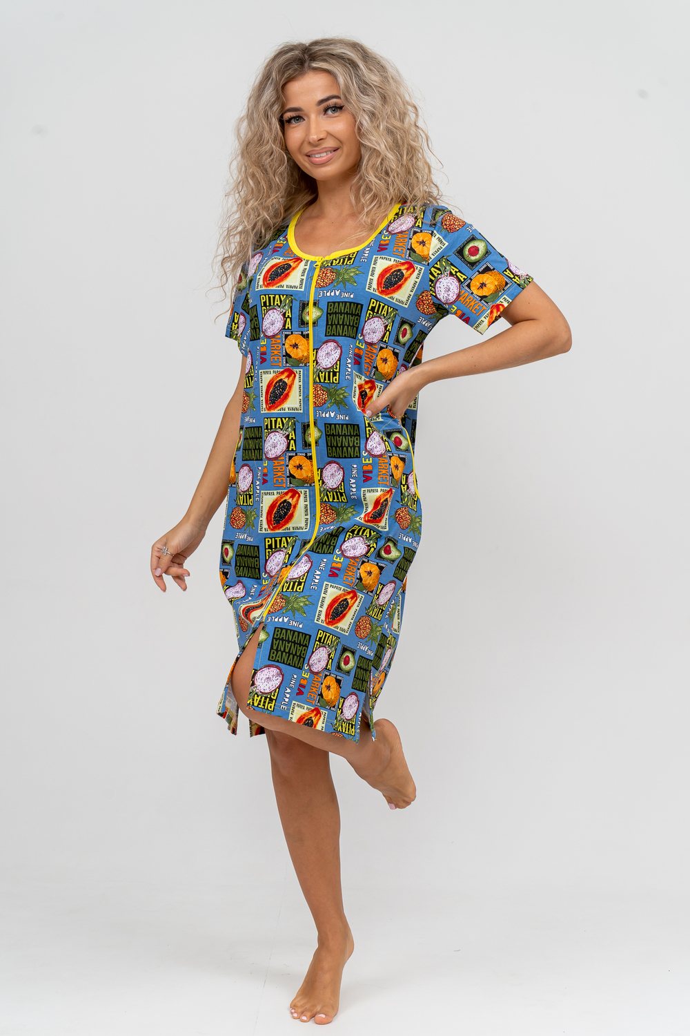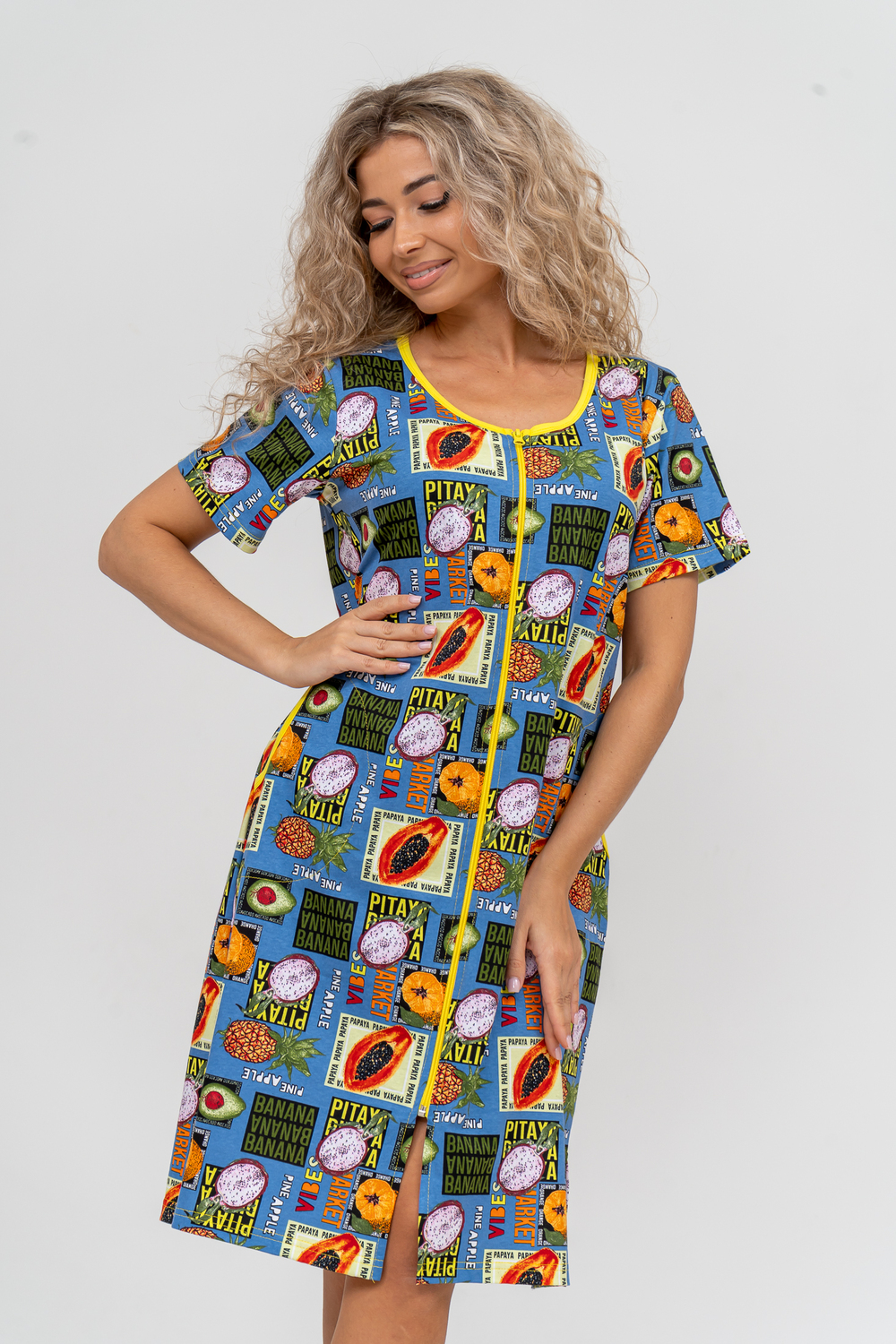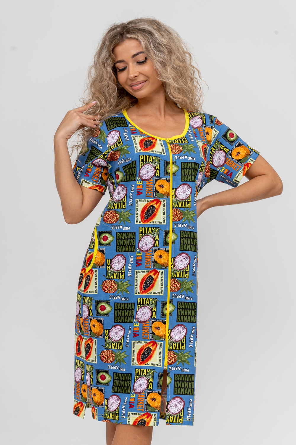Модный женственный халатик выполнен из 100% хлопчатобумажной ткани, что обеспечивает максимальный комфорт при ношении. Отличается мягкостью и приятной на ощупь текстурой. Материал прекрасно дышит. Носить такой халатик Вы сможете как летом, так и в любой другой сезон. Надёжный замок на молнии сохраняет свои свойства в течении всего времени использования. Женственный вырез и 2 боковых кармана добавляют образу шарм и делают изделие удобным и практичным. Изысканный халатик подойдёт для любого типа фигуры. Отличная модель для дома, для роддома, после родов, для кухонных дел и хозяйственной уборки, для дачи. И конечно идеально после душа, сауны, бани и ванной.