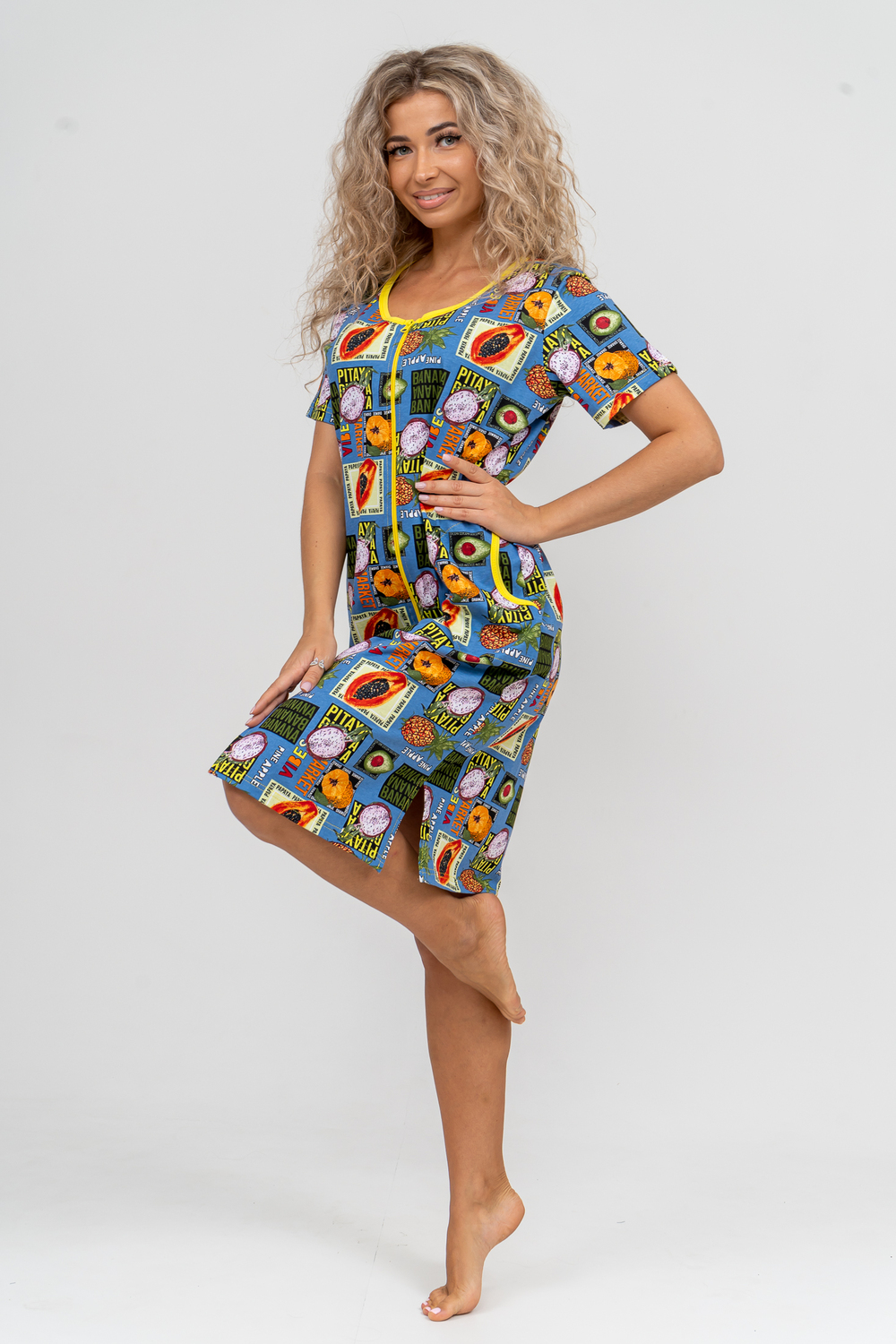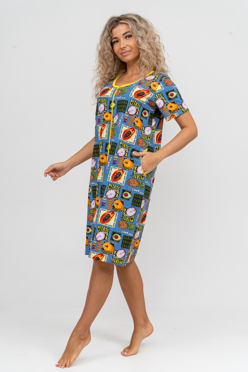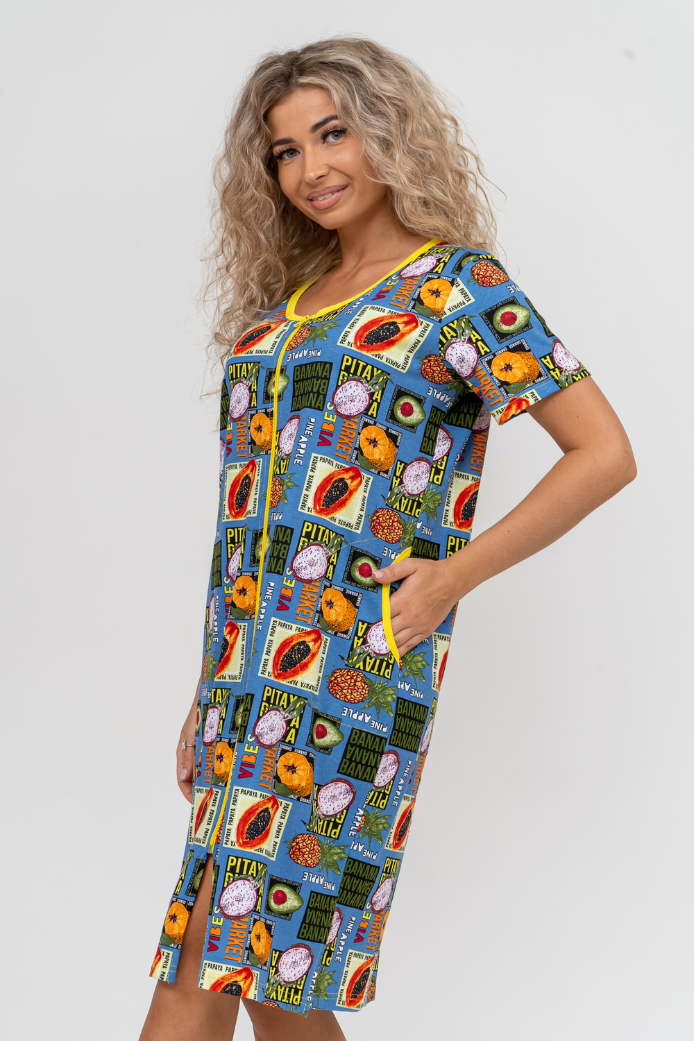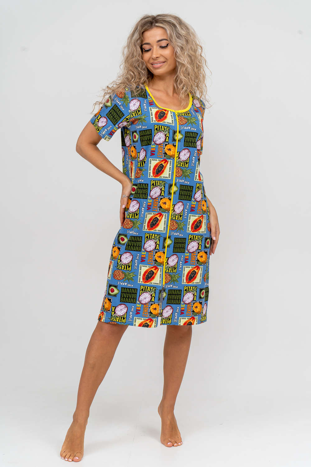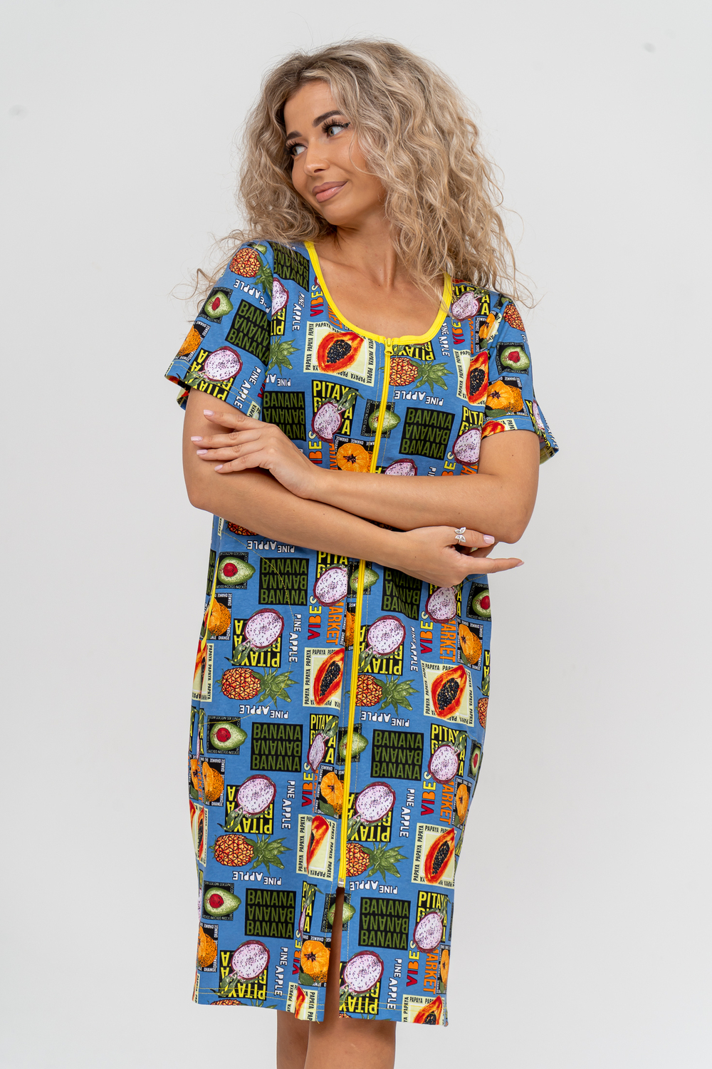 Модный женственный халатик выполнен из 100% хлопчатобумажной ткани, что обеспечивает максимальный комфорт при ношении. Отличается мягкостью и приятной на ощупь текстурой. Материал прекрасно дышит. Носить такой халатик Вы сможете как летом, так и в любой другой сезон. Надёжный замок на молнии сохраняет свои свойства в течении всего времени использования. Женственный вырез и 2 боковых кармана добавляют образу шарм и делают изделие удобным и практичным. Изысканный халатик подойдёт для любого типа фигуры. Отличная модель для дома, для роддома, после родов, для кухонных дел и хозяйственной уборки, для дачи. И конечно идеально после душа, сауны, бани и ванной.