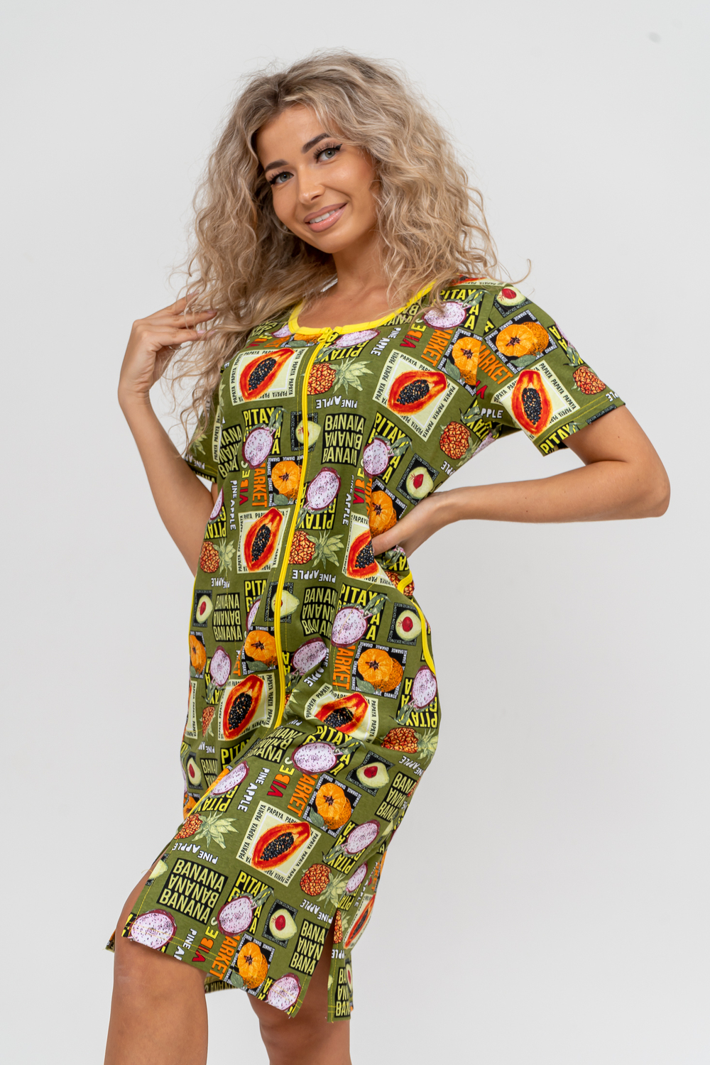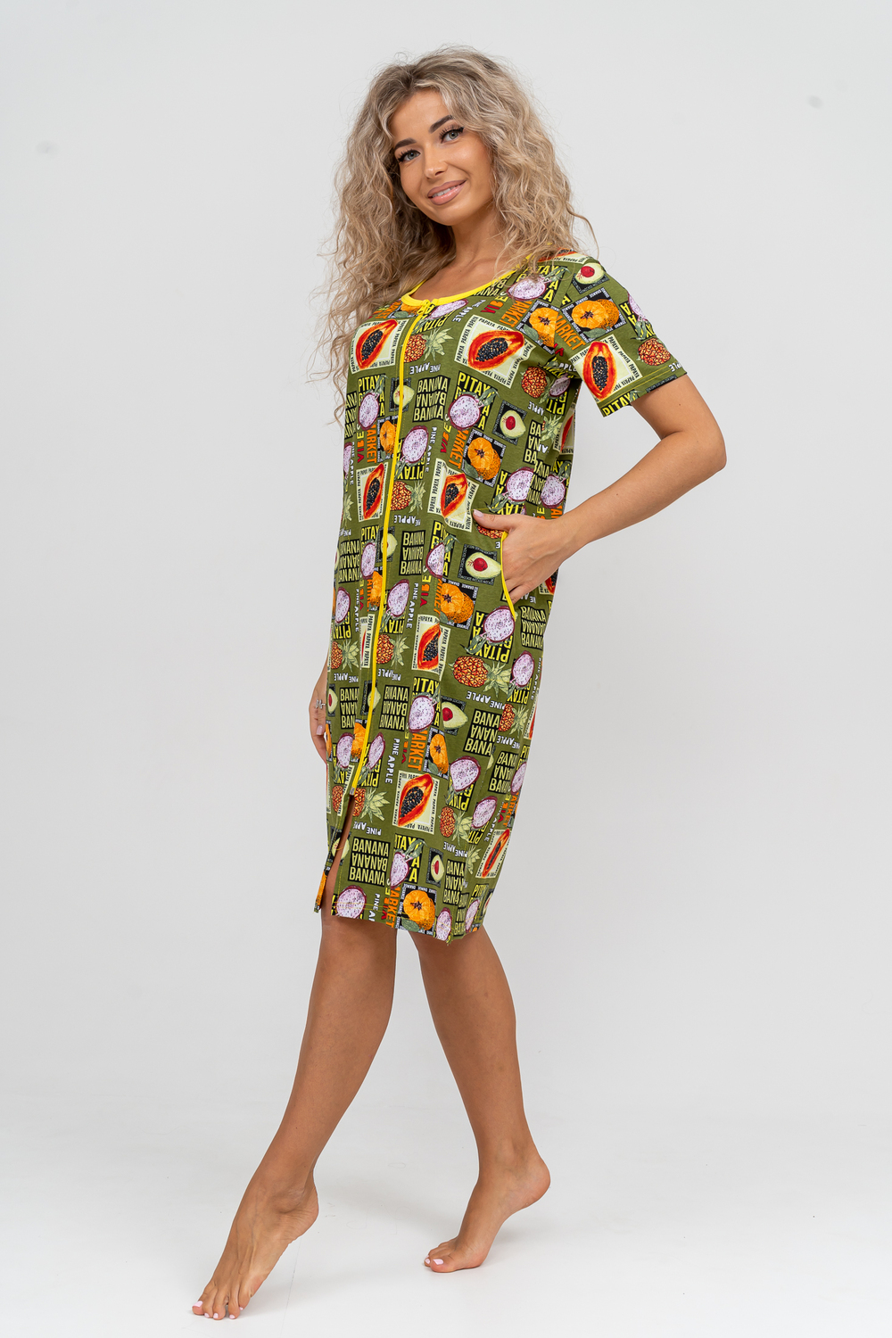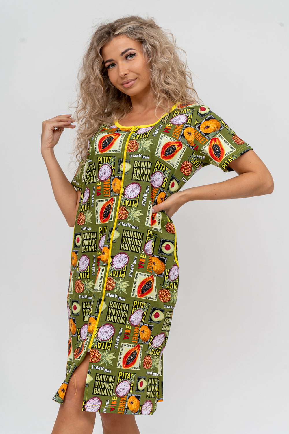 Модный женственный халатик выполнен из 100% хлопчатобумажной ткани, что обеспечивает максимальный комфорт при ношении. Отличается мягкостью и приятной на ощупь текстурой. Материал прекрасно дышит. Носить такой халатик Вы сможете как летом, так и в любой другой сезон. Надёжный замок на молнии сохраняет свои свойства в течении всего времени использования. Женственный вырез и 2 боковых кармана добавляют образу шарм и делают изделие удобным и практичным. Изысканный халатик подойдёт для любого типа фигуры. Отличная модель для дома, для роддома, после родов, для кухонных дел и хозяйственной уборки, для дачи. И конечно идеально после душа, сауны, бани и ванной.