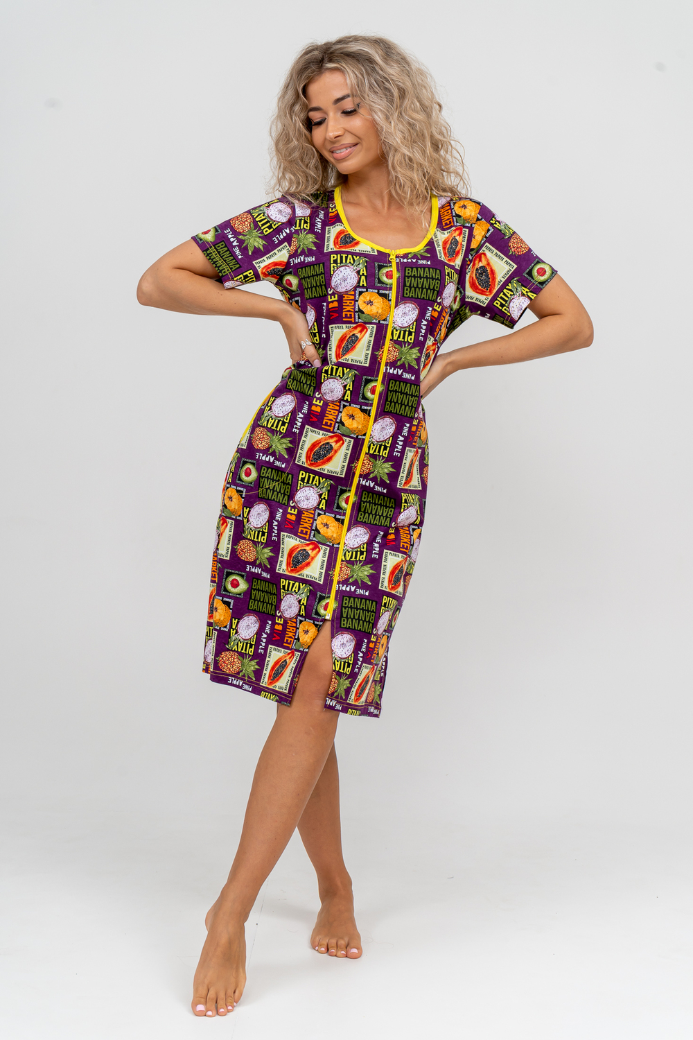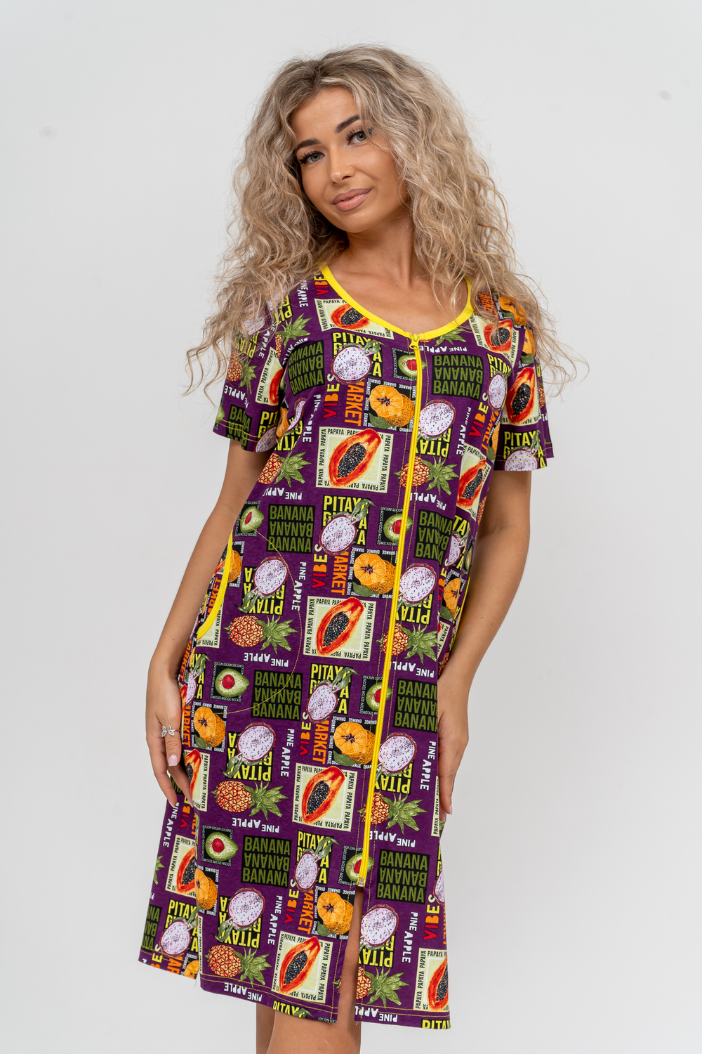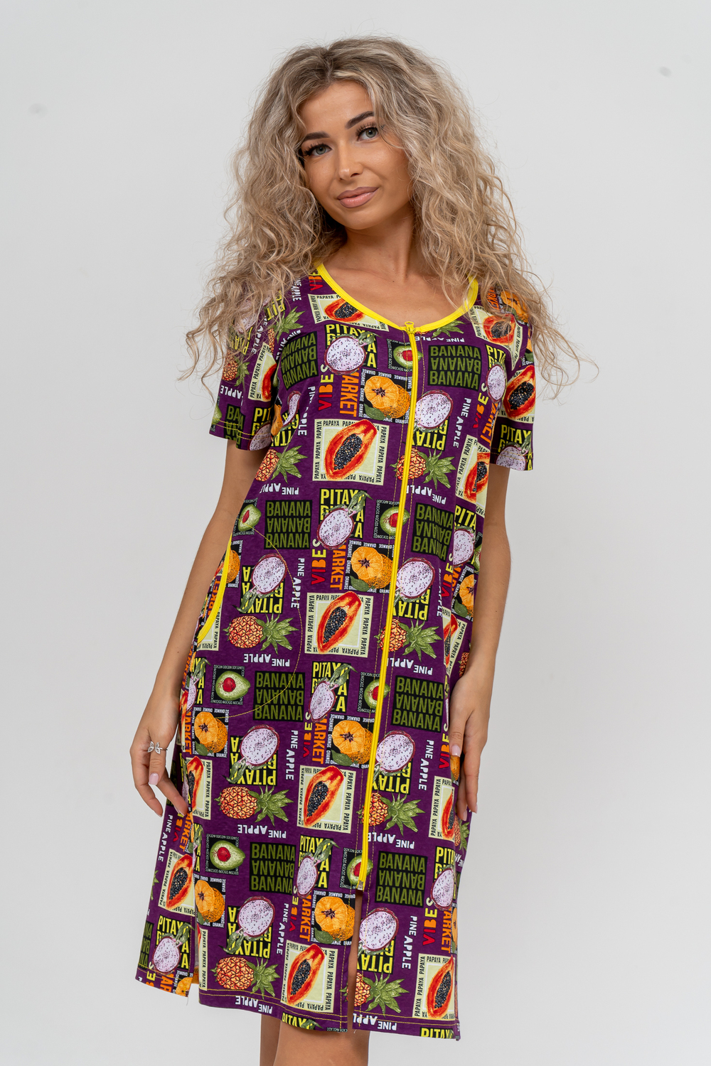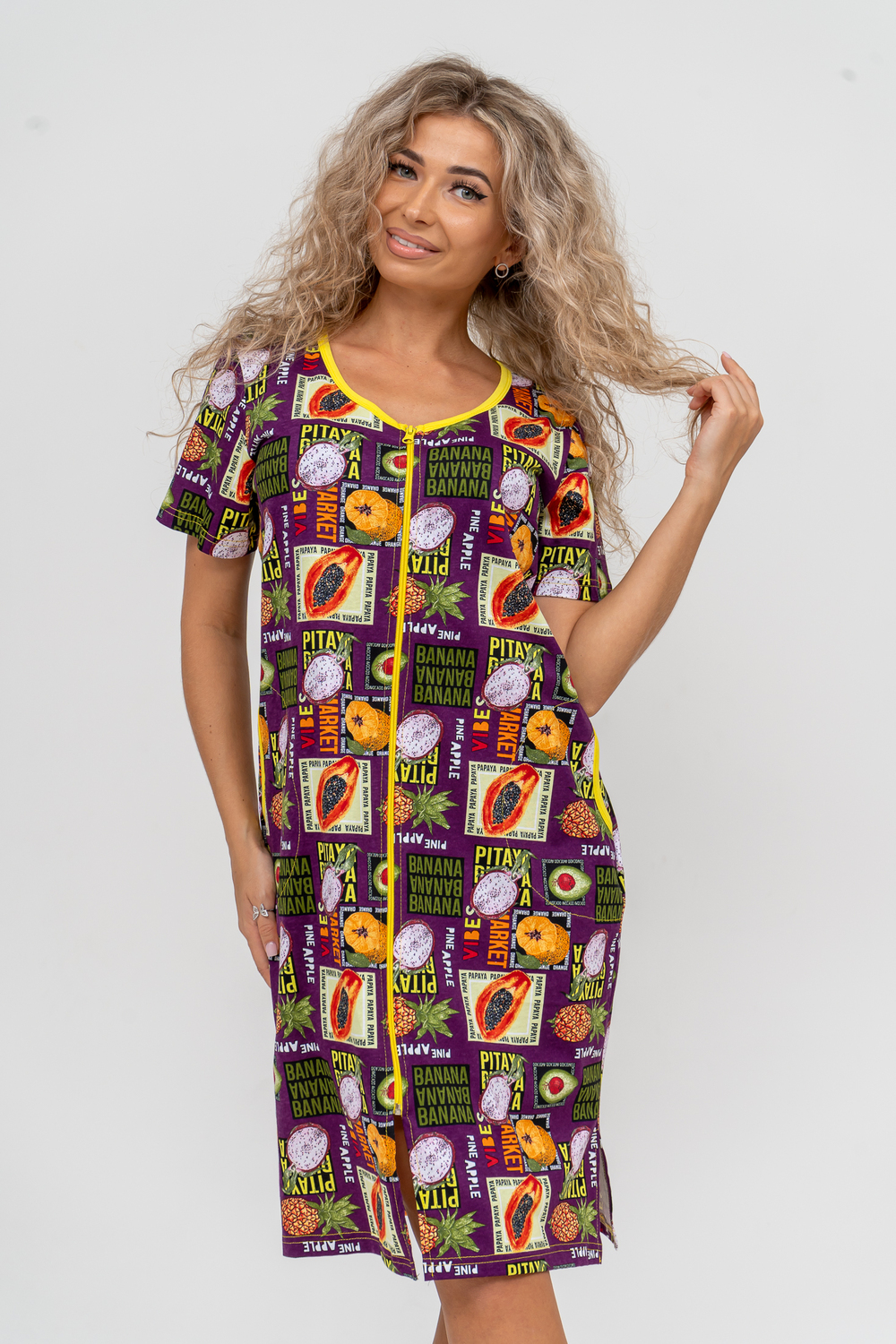 Модный женственный халатик выполнен из 100% хлопчатобумажной ткани, что обеспечивает максимальный комфорт при ношении. Отличается мягкостью и приятной на ощупь текстурой. Материал прекрасно дышит. Носить такой халатик Вы сможете как летом, так и в любой другой сезон. Надёжный замок на молнии сохраняет свои свойства в течении всего времени использования. Женственный вырез и 2 боковых кармана добавляют образу шарм и делают изделие удобным и практичным. Изысканный халатик подойдёт для любого типа фигуры. Отличная модель для дома, для роддома, после родов, для кухонных дел и хозяйственной уборки, для дачи. И конечно идеально после душа, сауны, бани и ванной.
