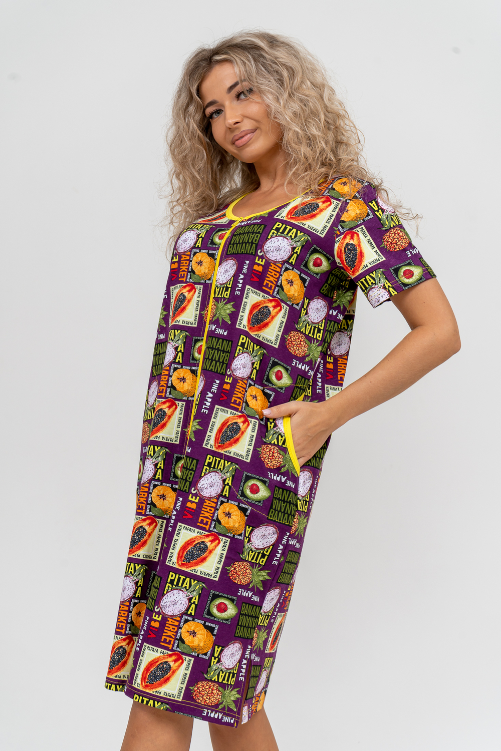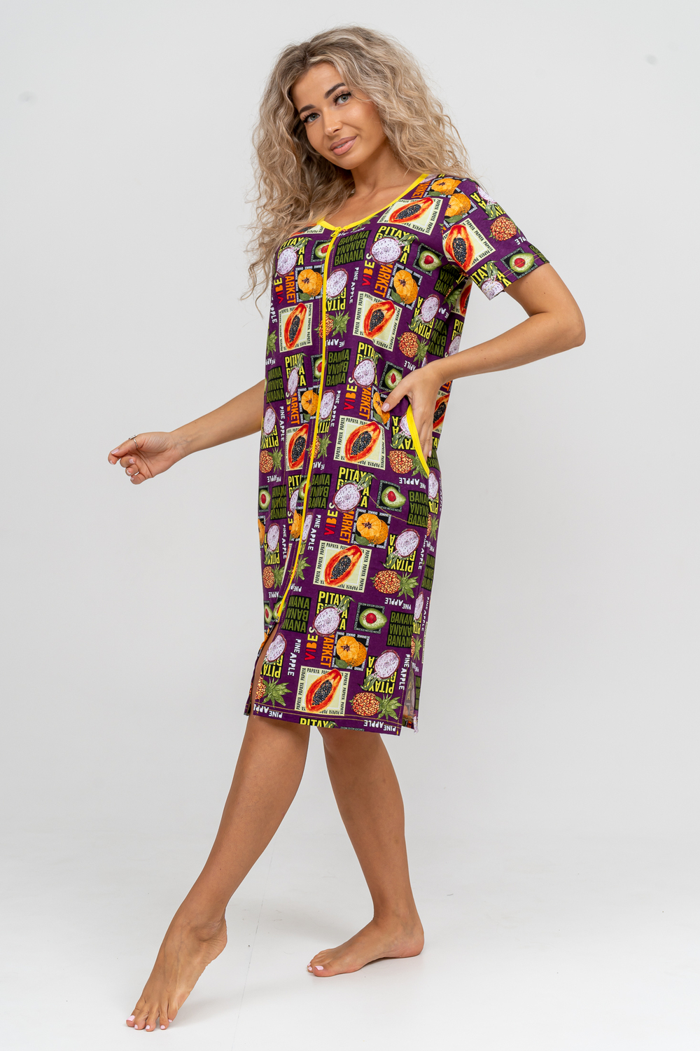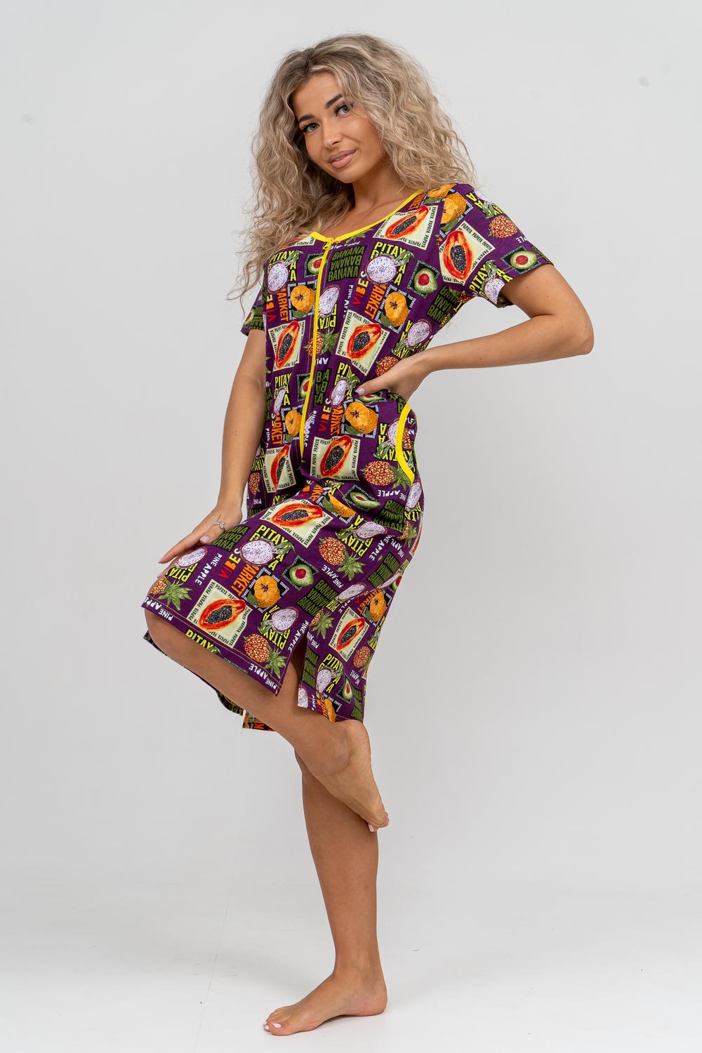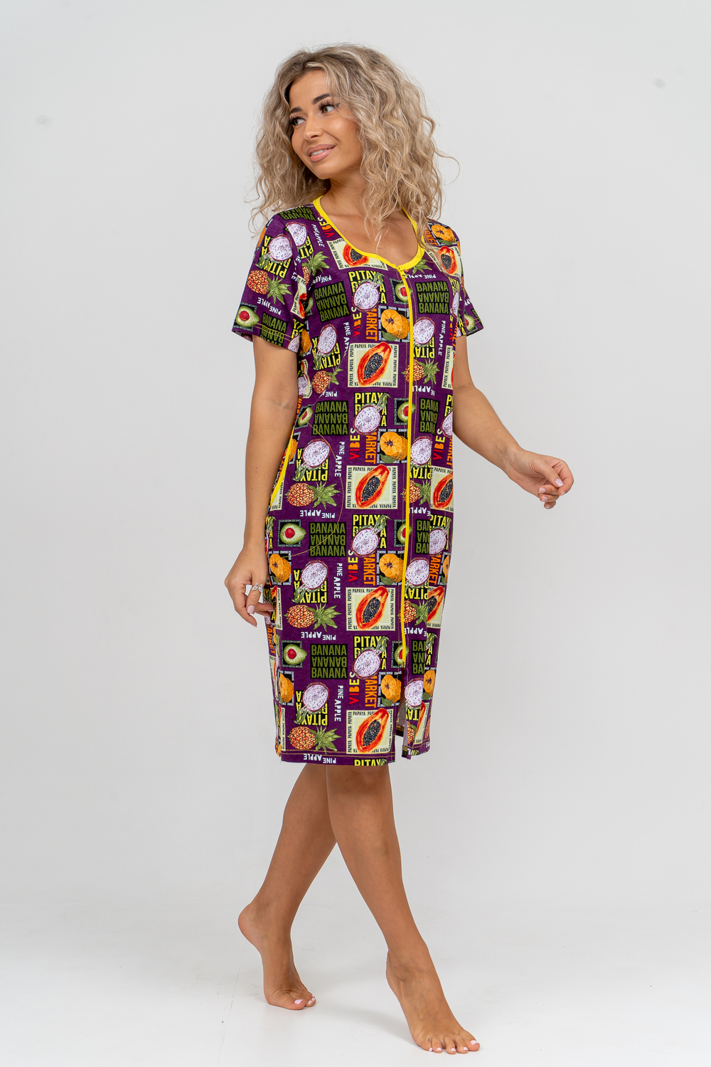 Модный женственный халатик выполнен из 100% хлопчатобумажной ткани, что обеспечивает максимальный комфорт при ношении. Отличается мягкостью и приятной на ощупь текстурой. Материал прекрасно дышит. Носить такой халатик Вы сможете как летом, так и в любой другой сезон. Надёжный замок на молнии сохраняет свои свойства в течении всего времени использования. Женственный вырез и 2 боковых кармана добавляют образу шарм и делают изделие удобным и практичным. Изысканный халатик подойдёт для любого типа фигуры. Отличная модель для дома, для роддома, после родов, для кухонных дел и хозяйственной уборки, для дачи. И конечно идеально после душа, сауны, бани и ванной.