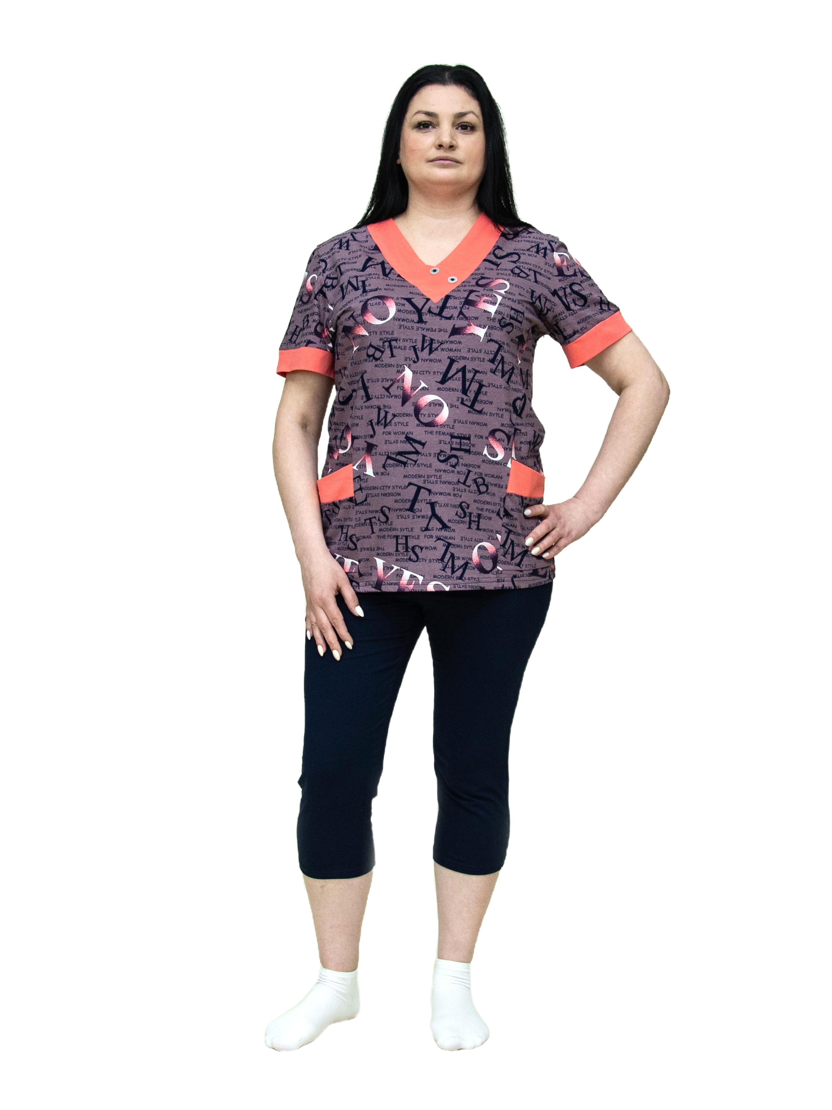 Женский костюм "Дачник" состоит из футболки с коротким рукавом и бридж. Удобный женский костюм сшит из хлопковой ткани, кулирки.