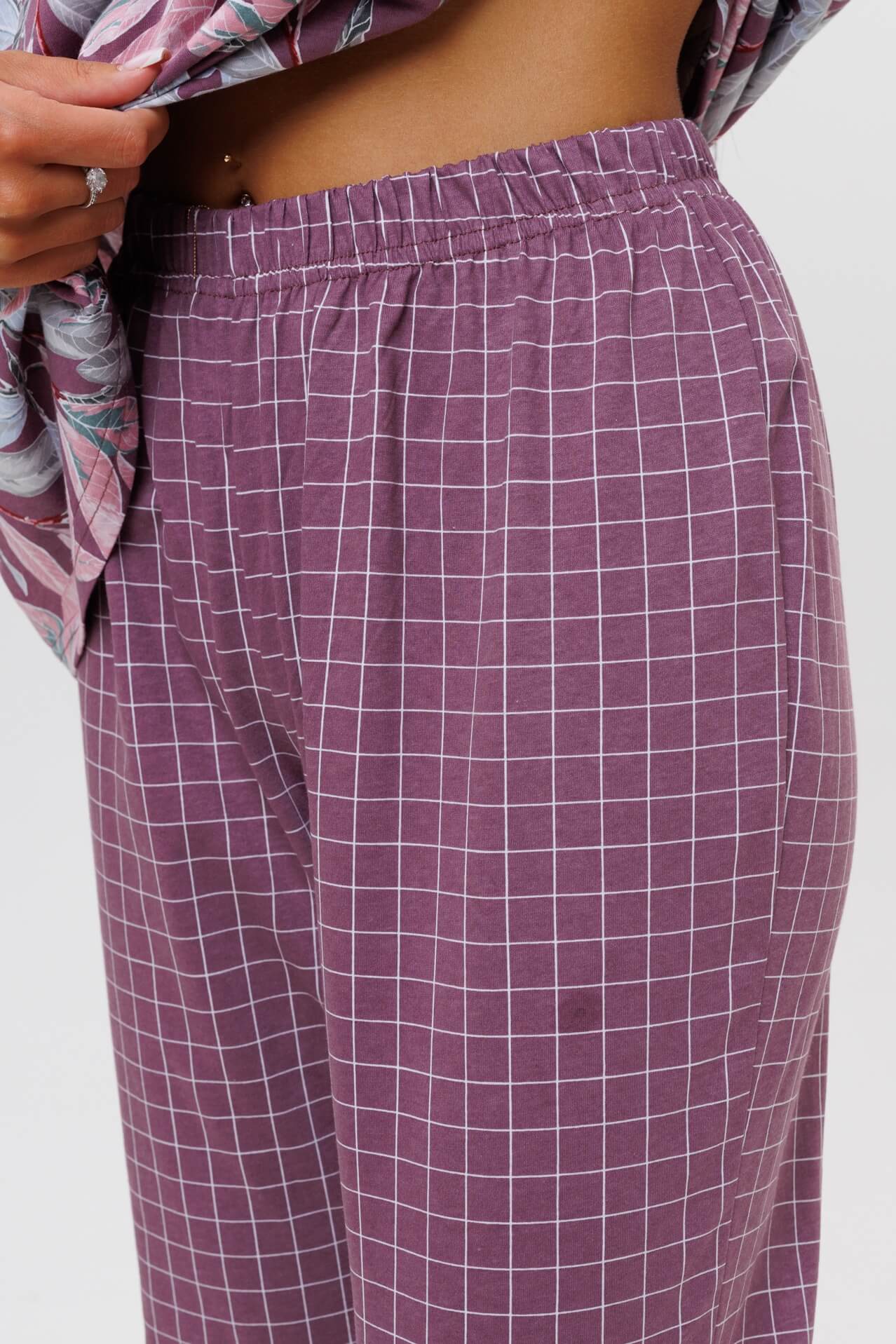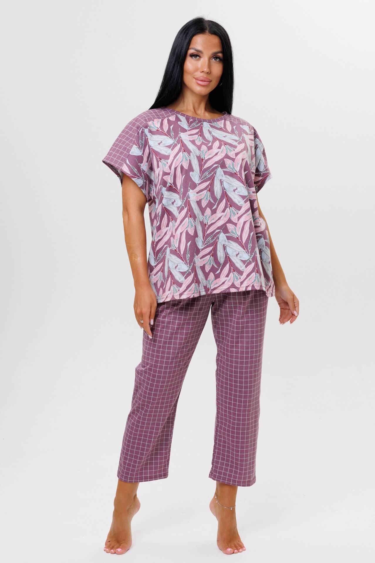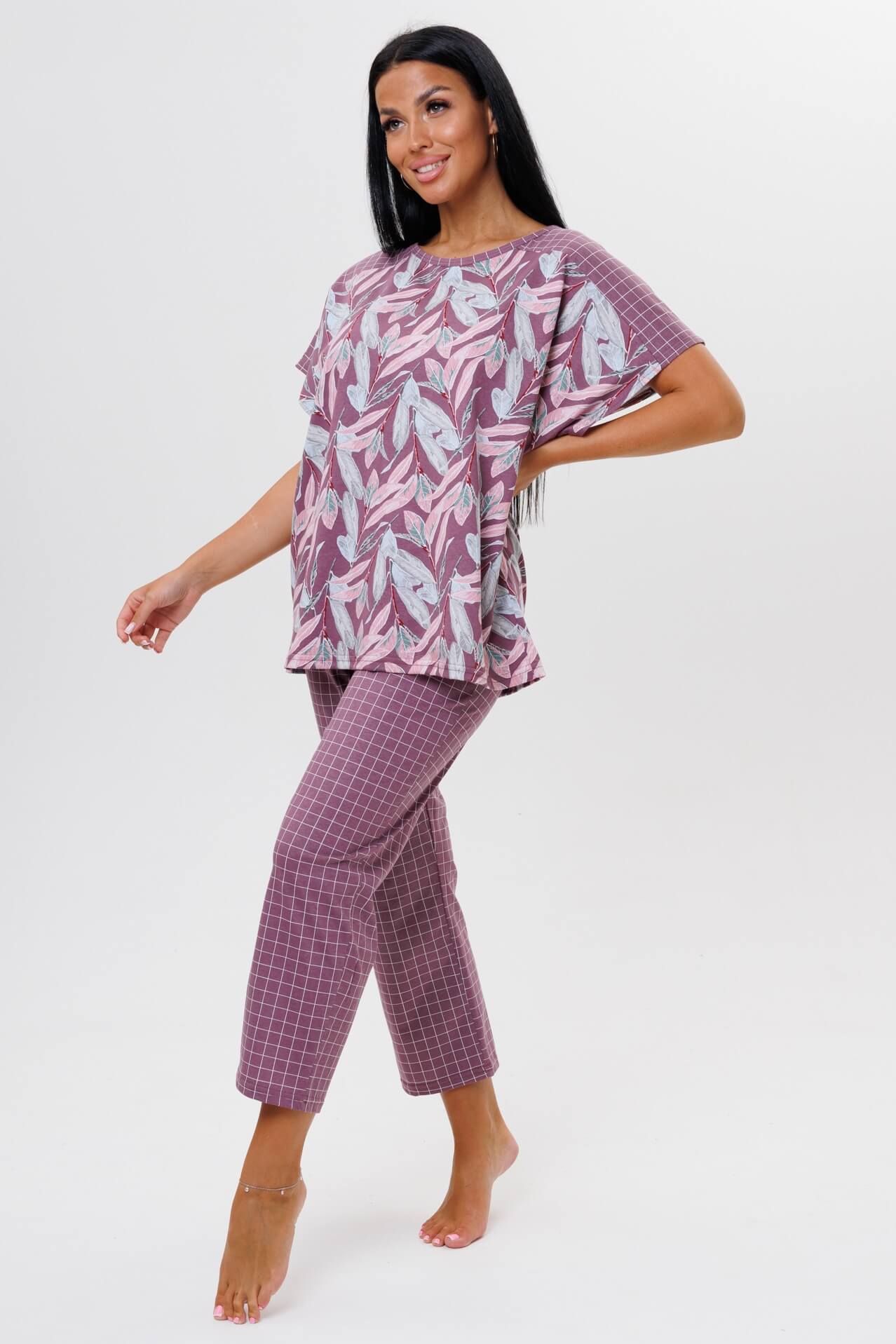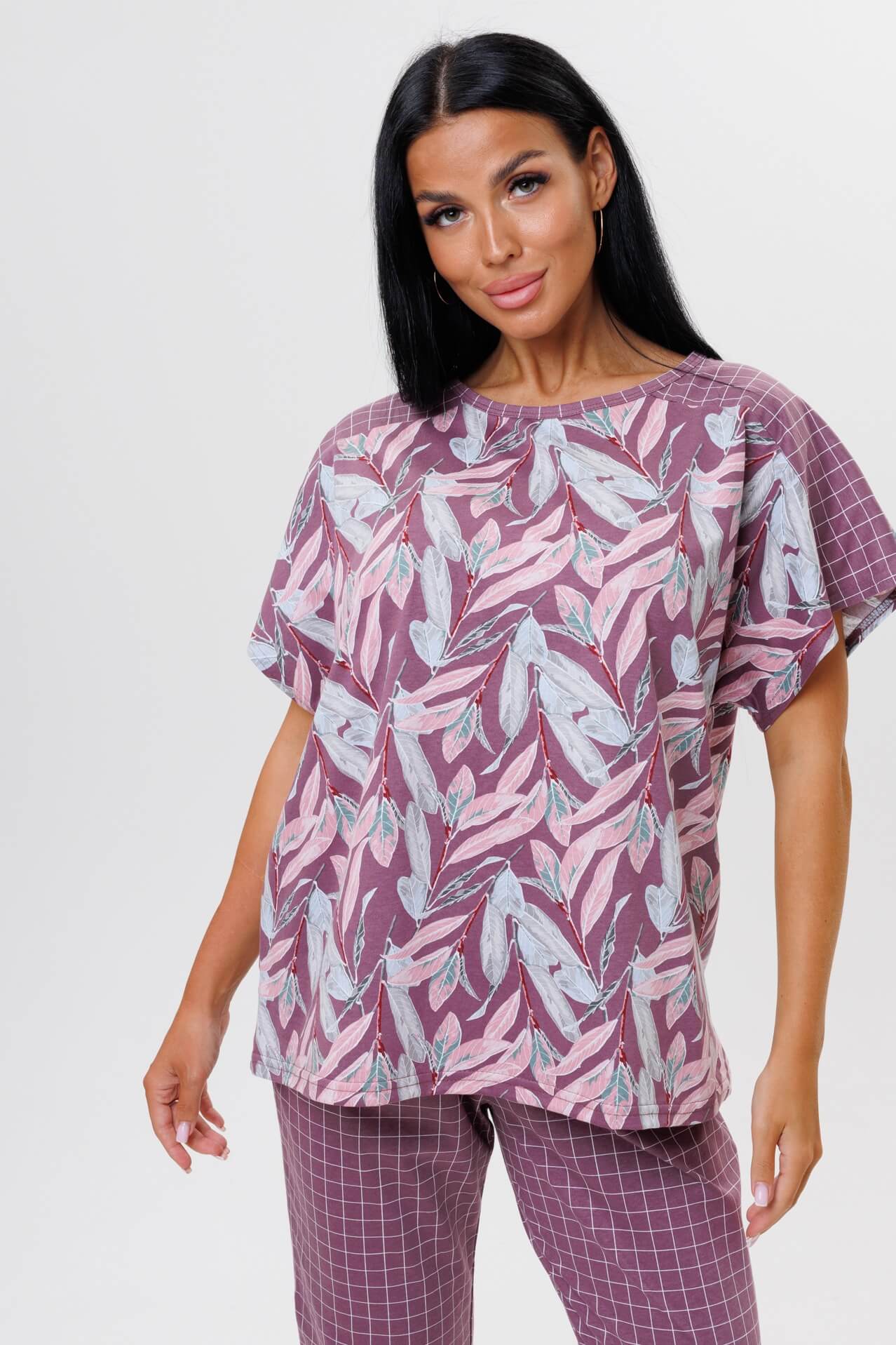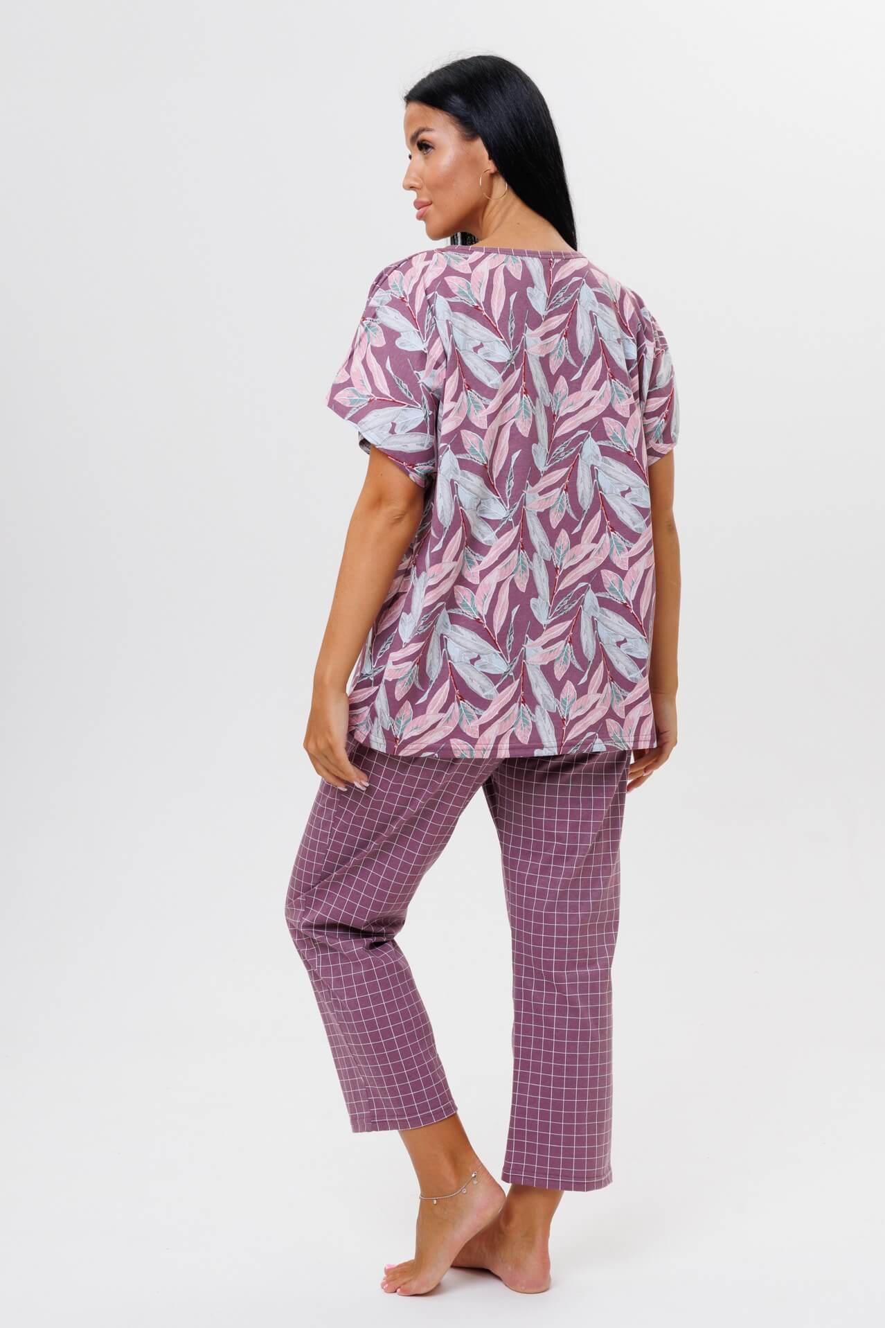 Женский костюм с брюками 2044/1 / Брусничный состоит из футболки с короткими рукавами и брюк. Женский костюм отлично подойдет в качестве пижамы и как замена халату.