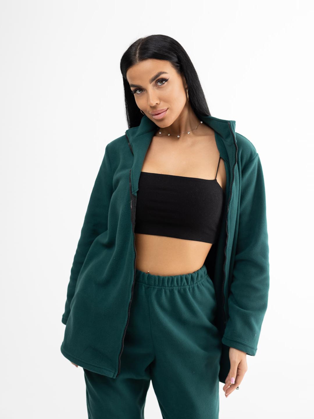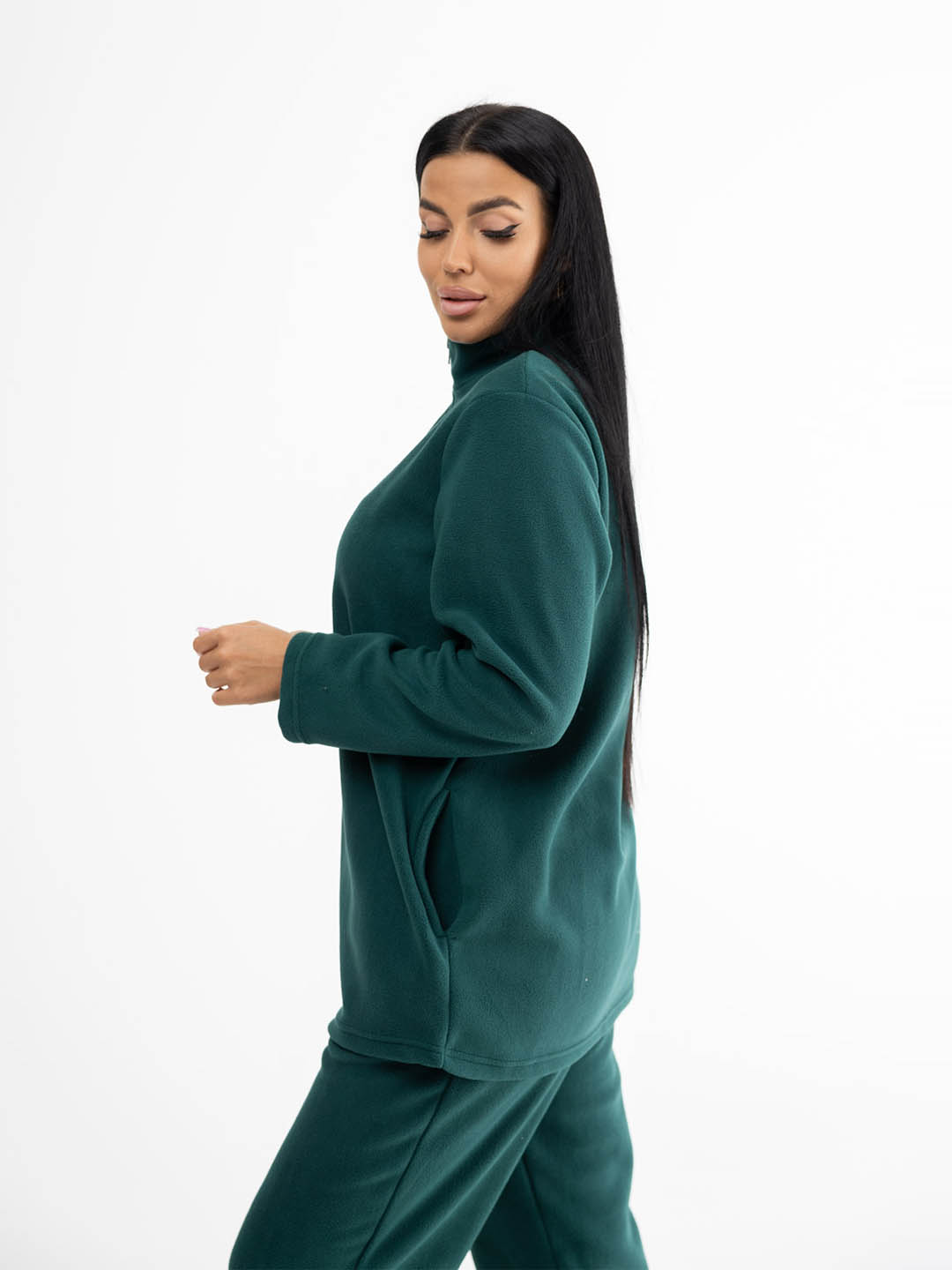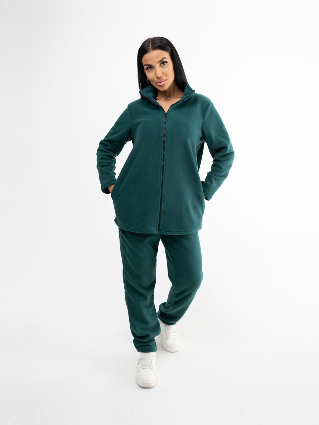 Удобный брючный костюм из флиса мод.1646/8* / Изумрудный. Легкий и функциональный комплект - лучший вариант для прогулок, пробежки и активного отдыха.