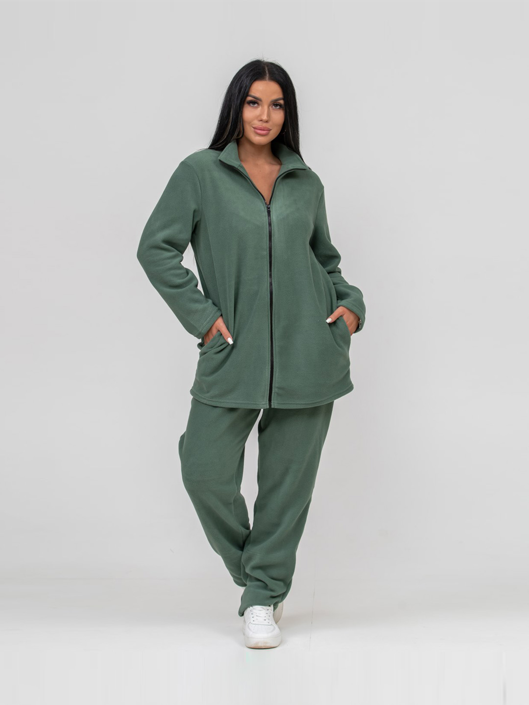 Удобный брючный костюм из флиса мод.1646/3* / Зеленый. Легкий и функциональный комплект - лучший вариант для прогулок, пробежки и активного отдыха.
