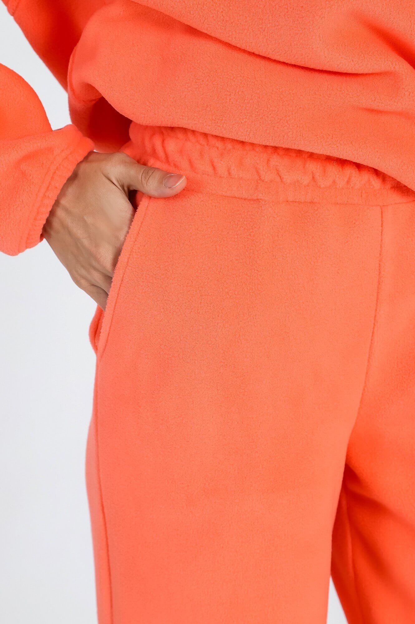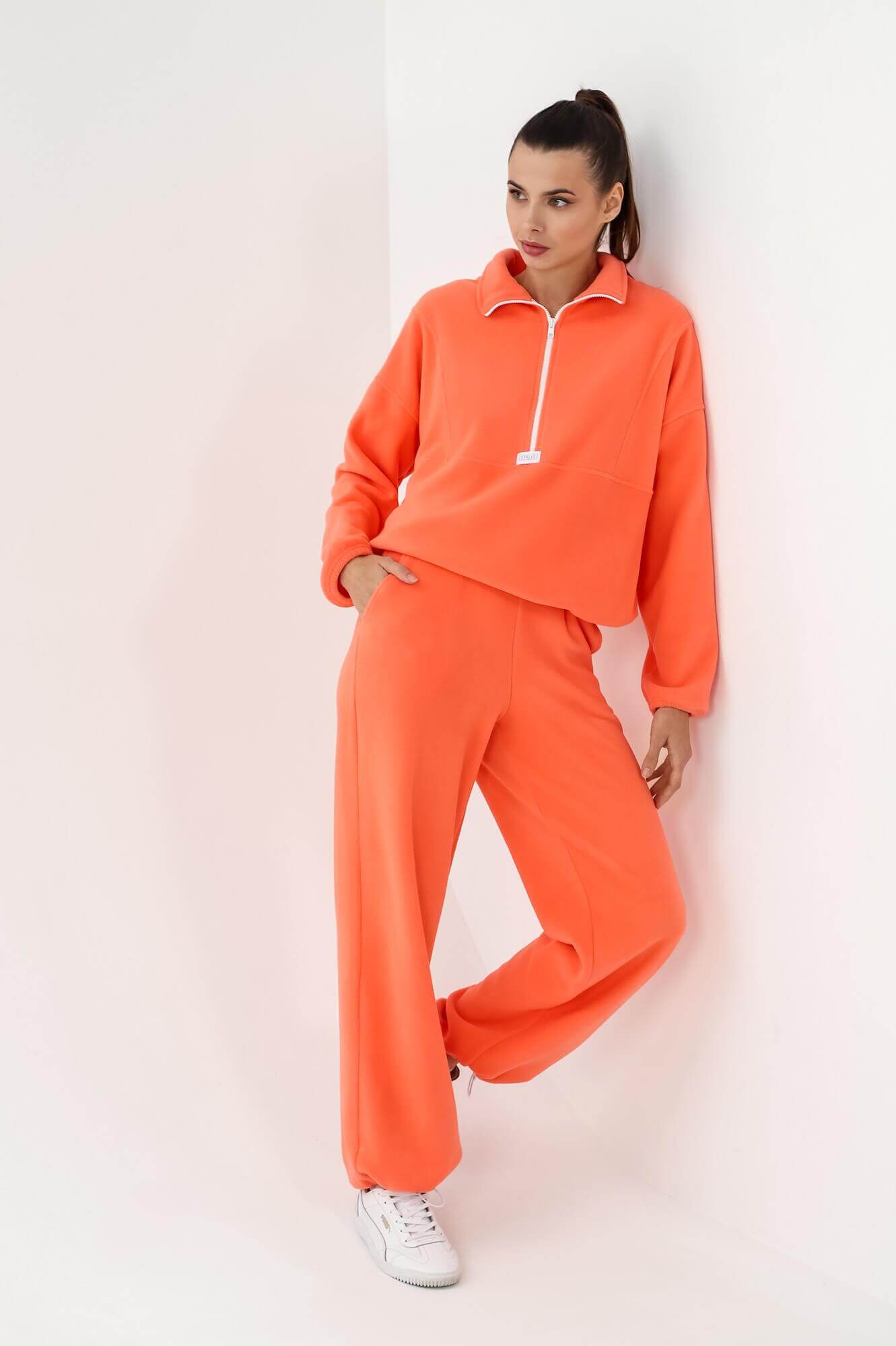Толстовка - свободного покроя, средней длины, с длинными рукавами на основе цельнокроеных. Деталь переда - с отрезной кокеткой, состоящей из четырех деталей, симметрично расположенных относительно центрального шва, обработанного с застежкой на тесьму "молния". Спинка - с отрезной кокеткой. Нижние срезы рукавов обработаны швом вподгибку с эластичной тесьмой. Низ изделия обработан швом вподгибку. По всем основным соединительным швам толстовки настрочены отделочные строчки. Брюки - длинные, свободного покроя, на притачном поясе с эластичной тесьмой внутри и карманами в боковых швах. Нижние срезы обработаны швом вподгибку с эластичной тесьмой.