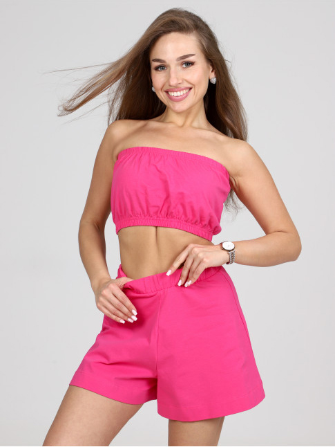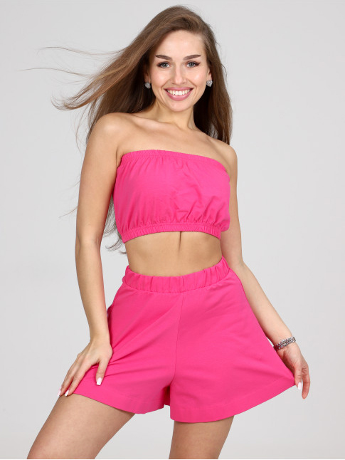 Женский летний комплект: юбка-шорты и топ без лямок (на резинке).
