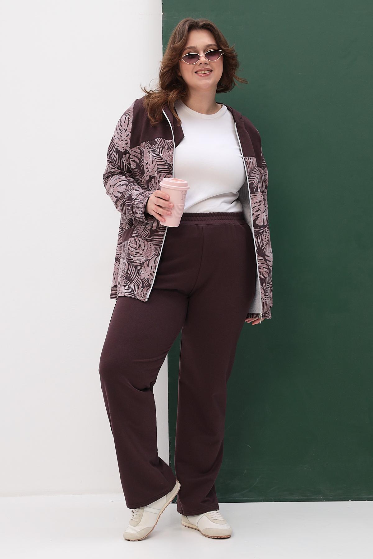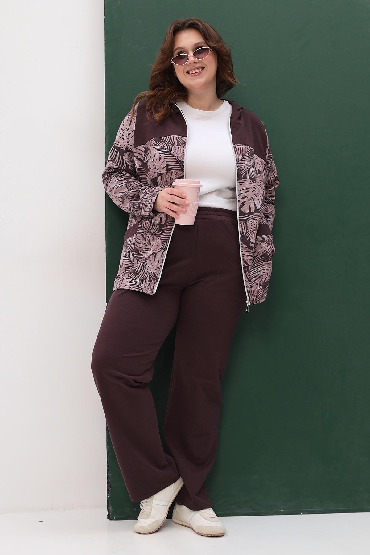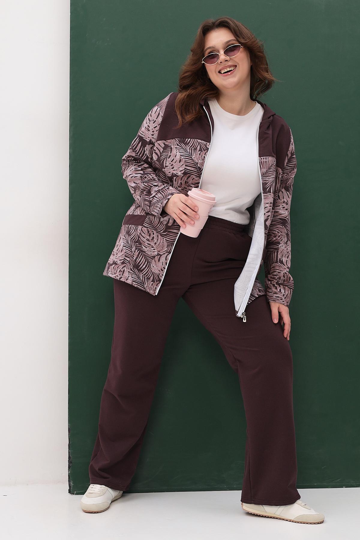 Элегантный костюм состоит из свободной кофты и просторных брюк. Идеальный выбор для повседневной носки и отдыха.