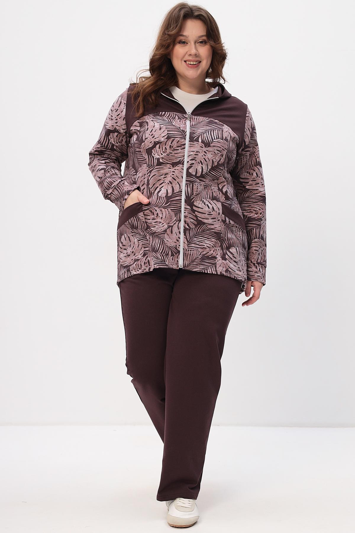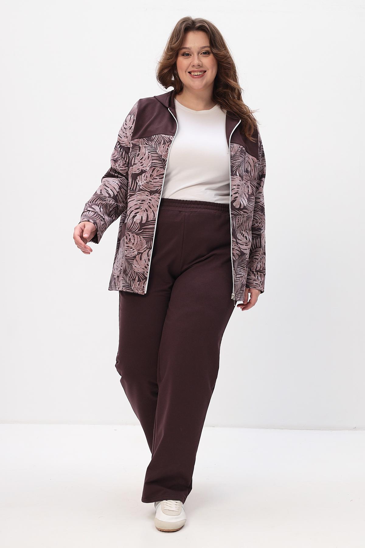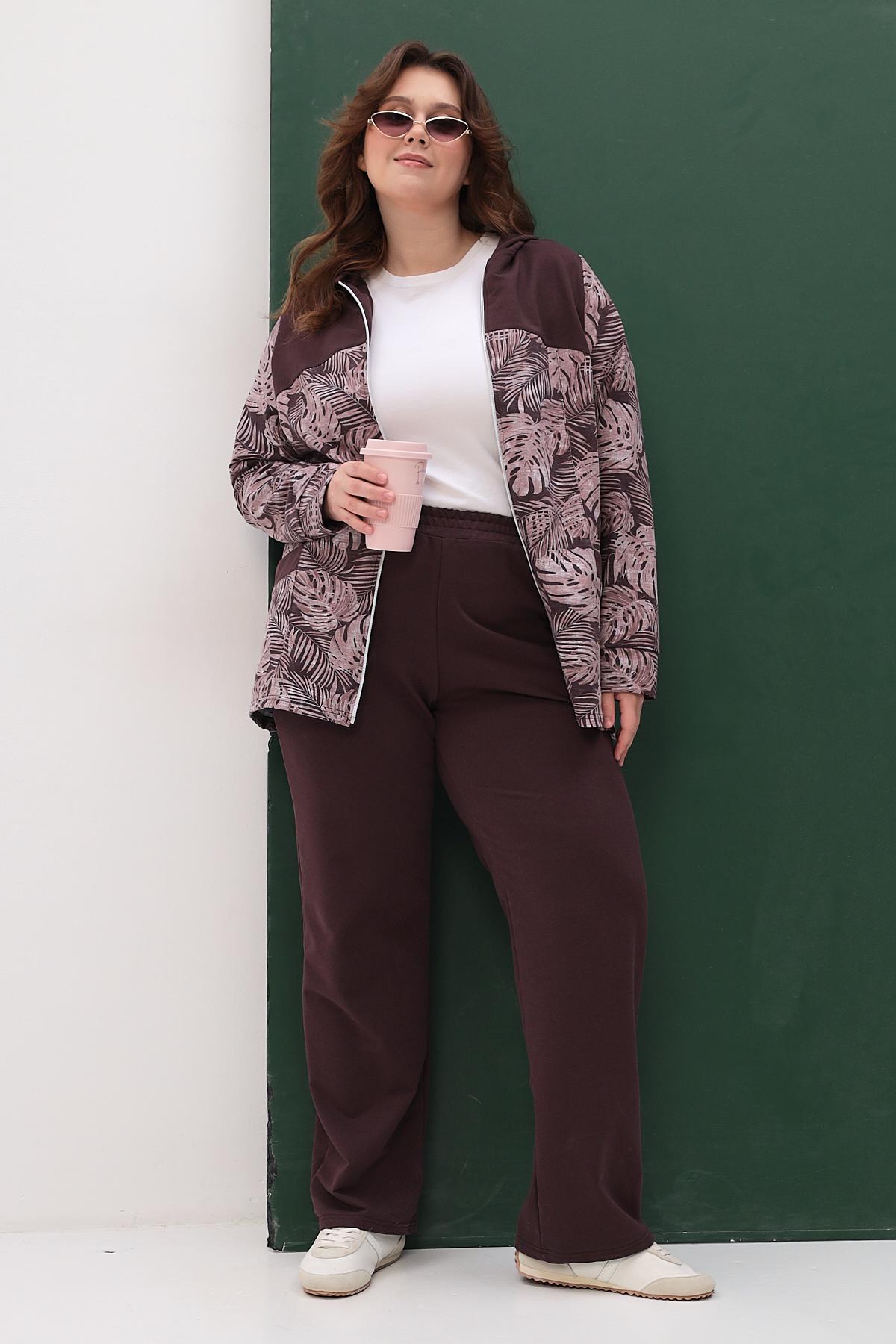 Элегантный костюм состоит из свободной кофты и просторных брюк. Идеальный выбор для повседневной носки и отдыха.