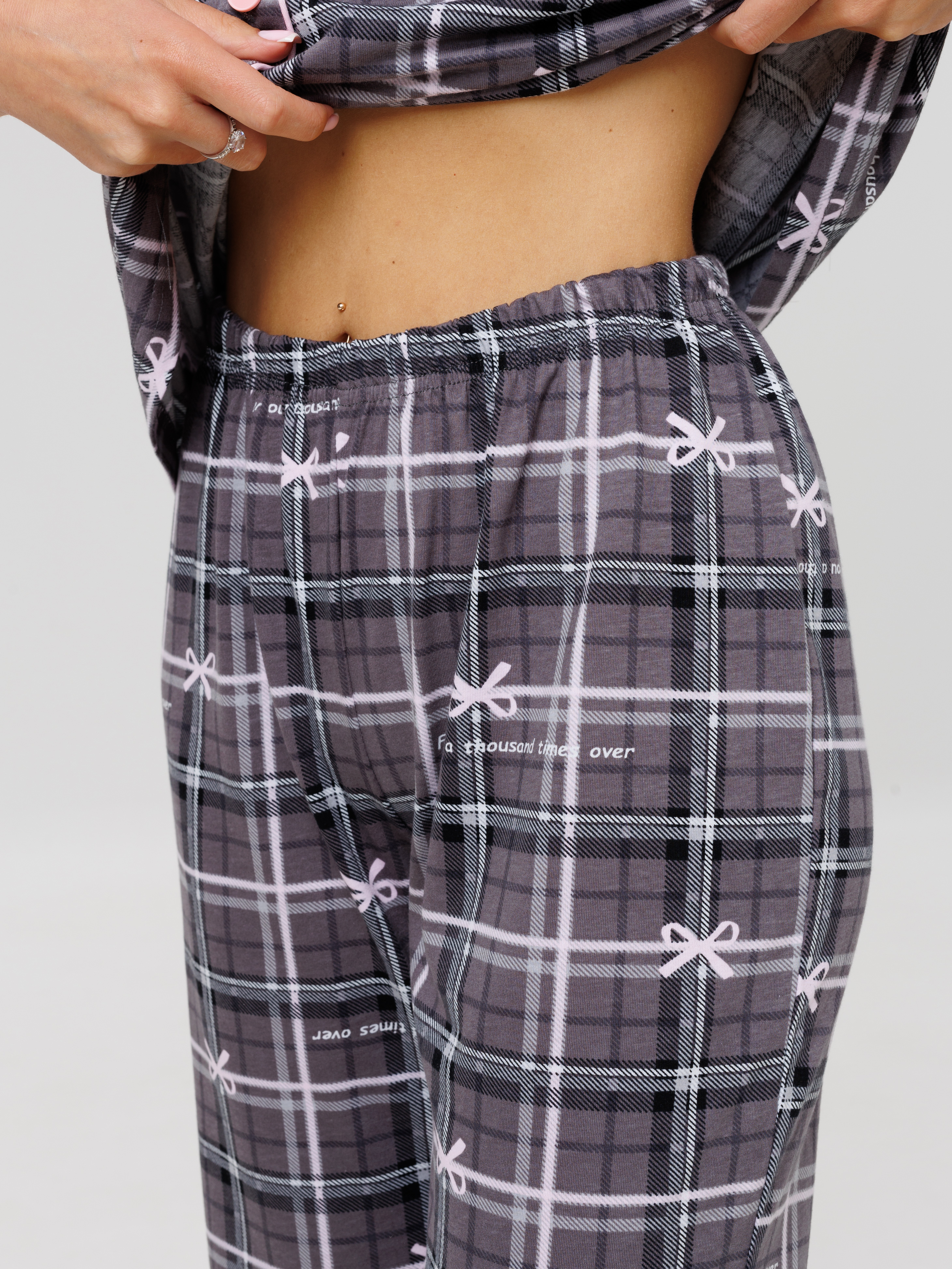 Женский костюм К-132(К) из кулирки, 100% хлопок. Женская пижама состоит из рубашки на пуговицах, с рукавами 3/4 и пижамных брюк.
