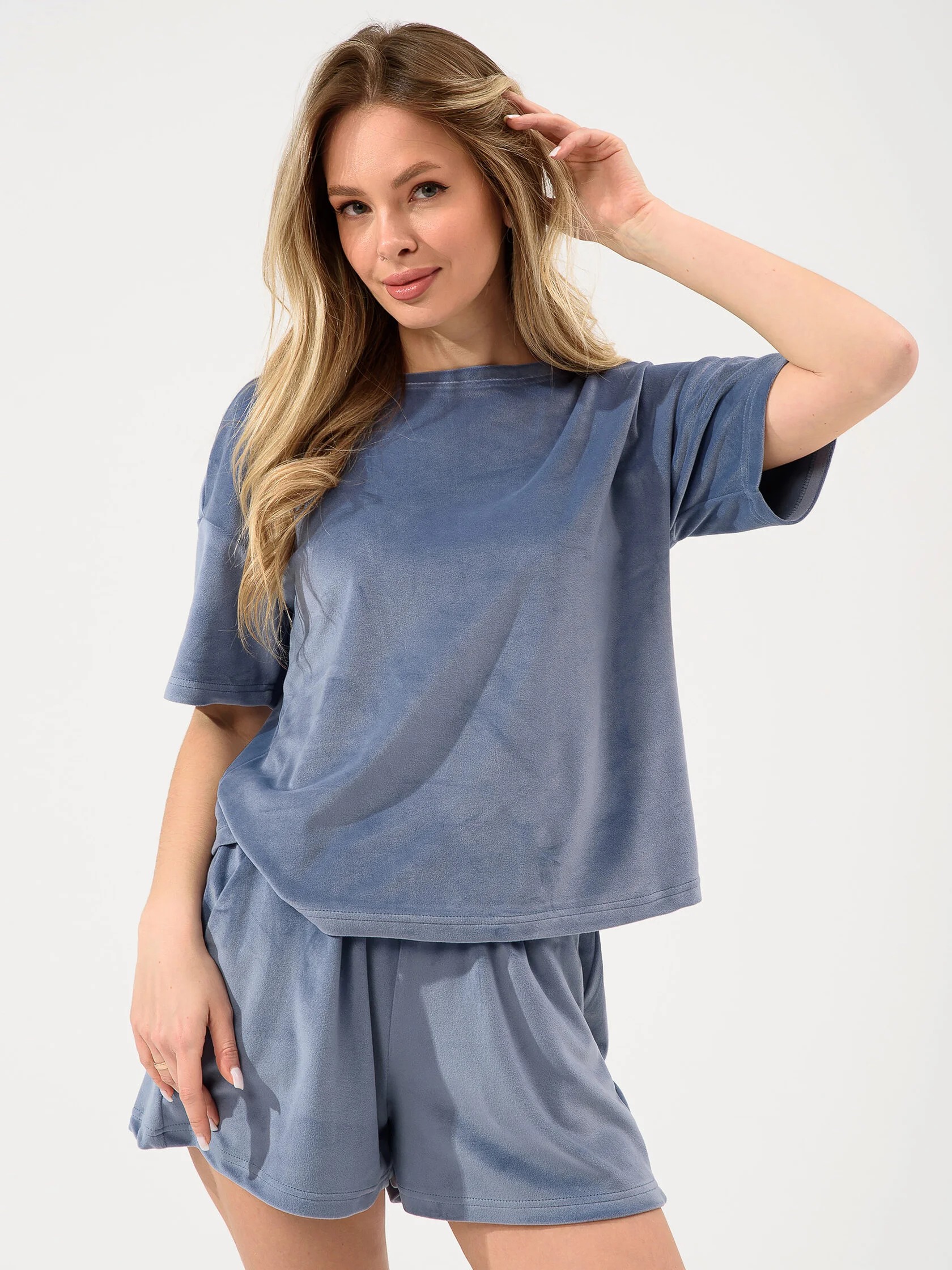 Женский костюм из велюра с шортами — это сочетание комфорта и стиля, подходящее для дома, отдыха или повседневных образов. Такие костюмы обычно состоят из футболки или толстовки и шорт на резинке, выполнены из мягкого материала, который приятен на ощупь.