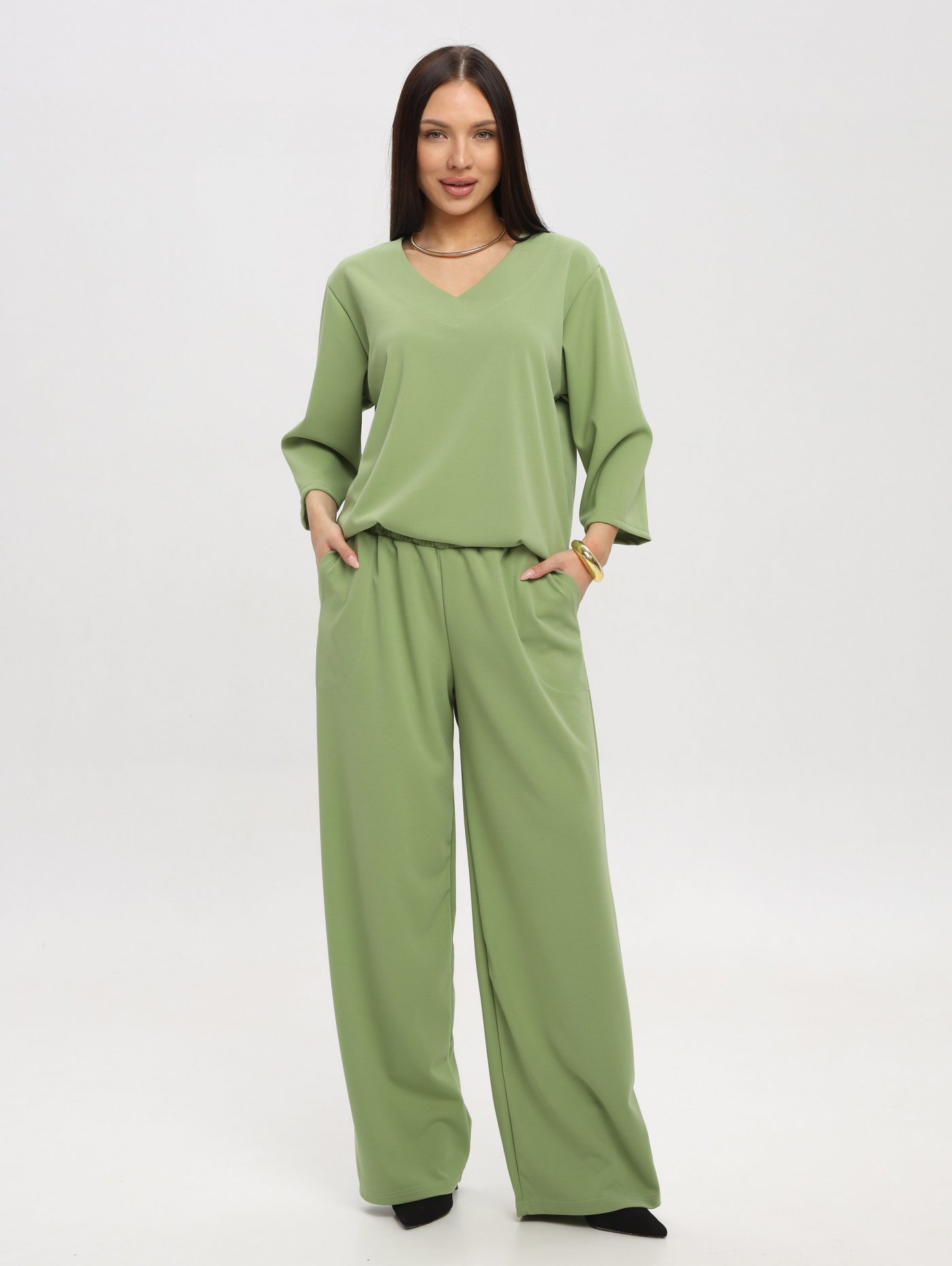 Женский костюм с брюками — это комплект, который сочетает комфорт, функциональность и стиль. Он подходит для тренировок, прогулок, активного отдыха или повседневного использования.