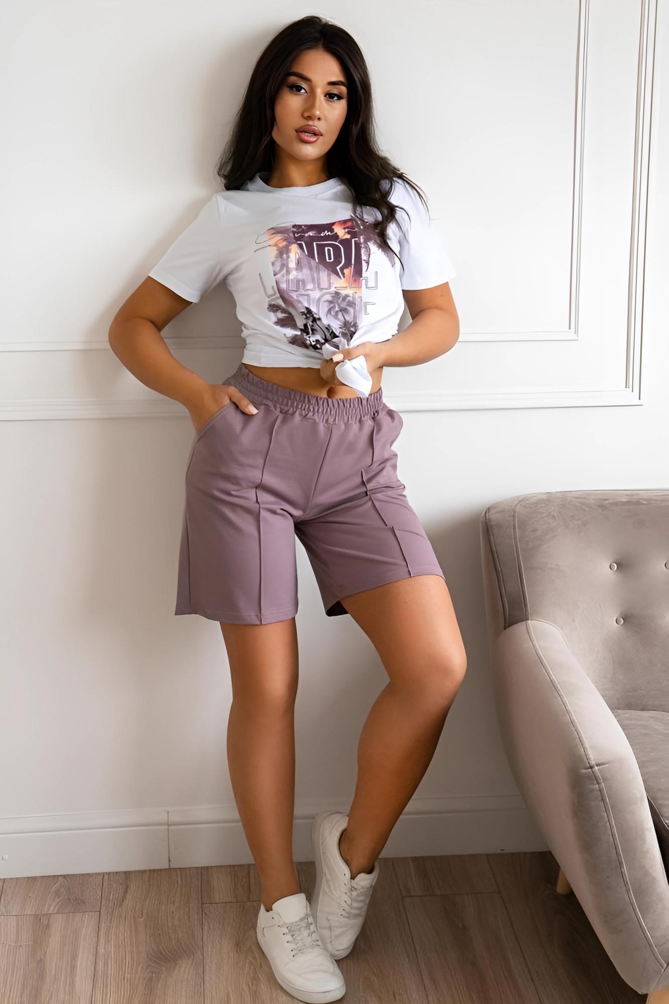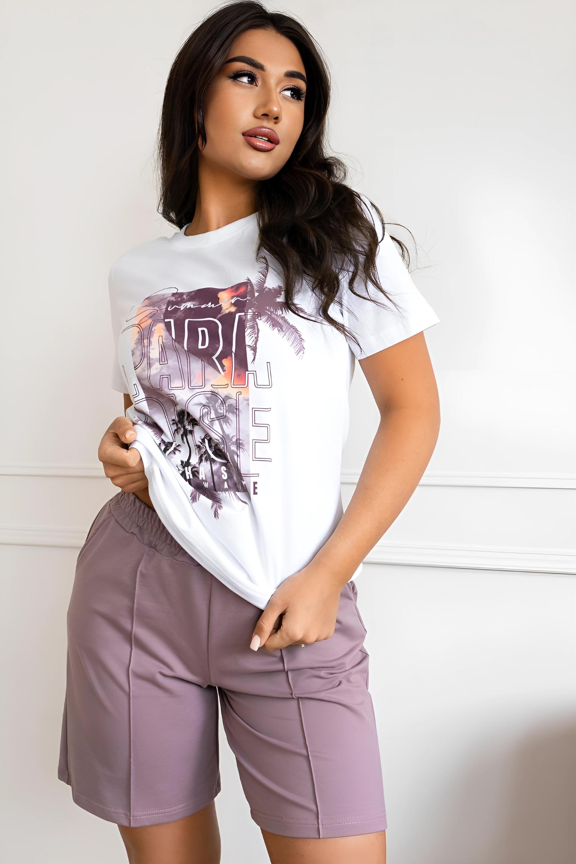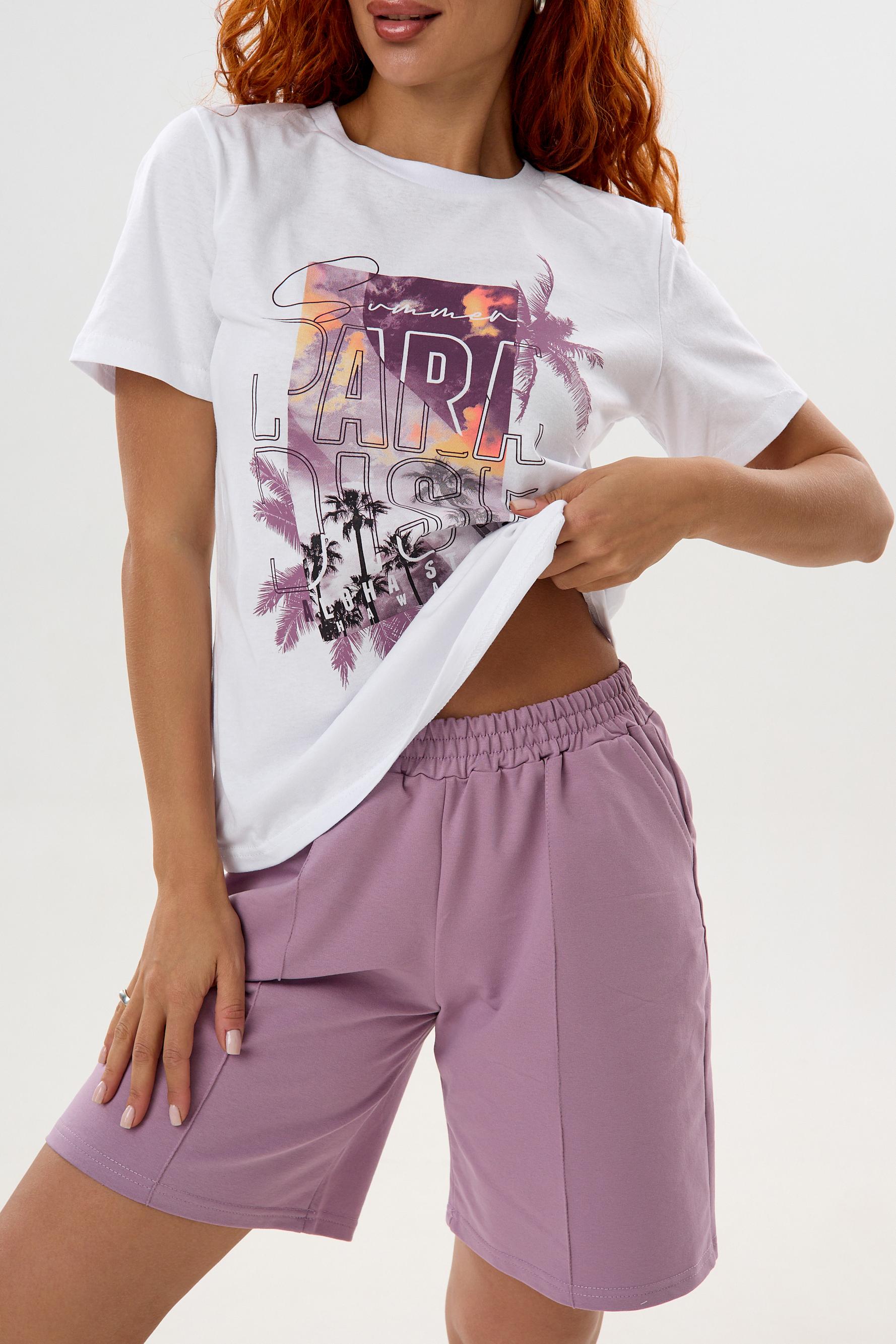 Сочные цвета костюма Парадиз наполняю Вашу жизнь яркими красками. Комплект состоит из базовой футболки с дизайнерским принтом и модных шорт комфортной длины с прошитыми стрелками и кармашками. В таком костюме Вы привлечете к себе внимание. Также в нем можно пойти на прогулку, отправиться на экскурсию, в отпуск или носить дома.