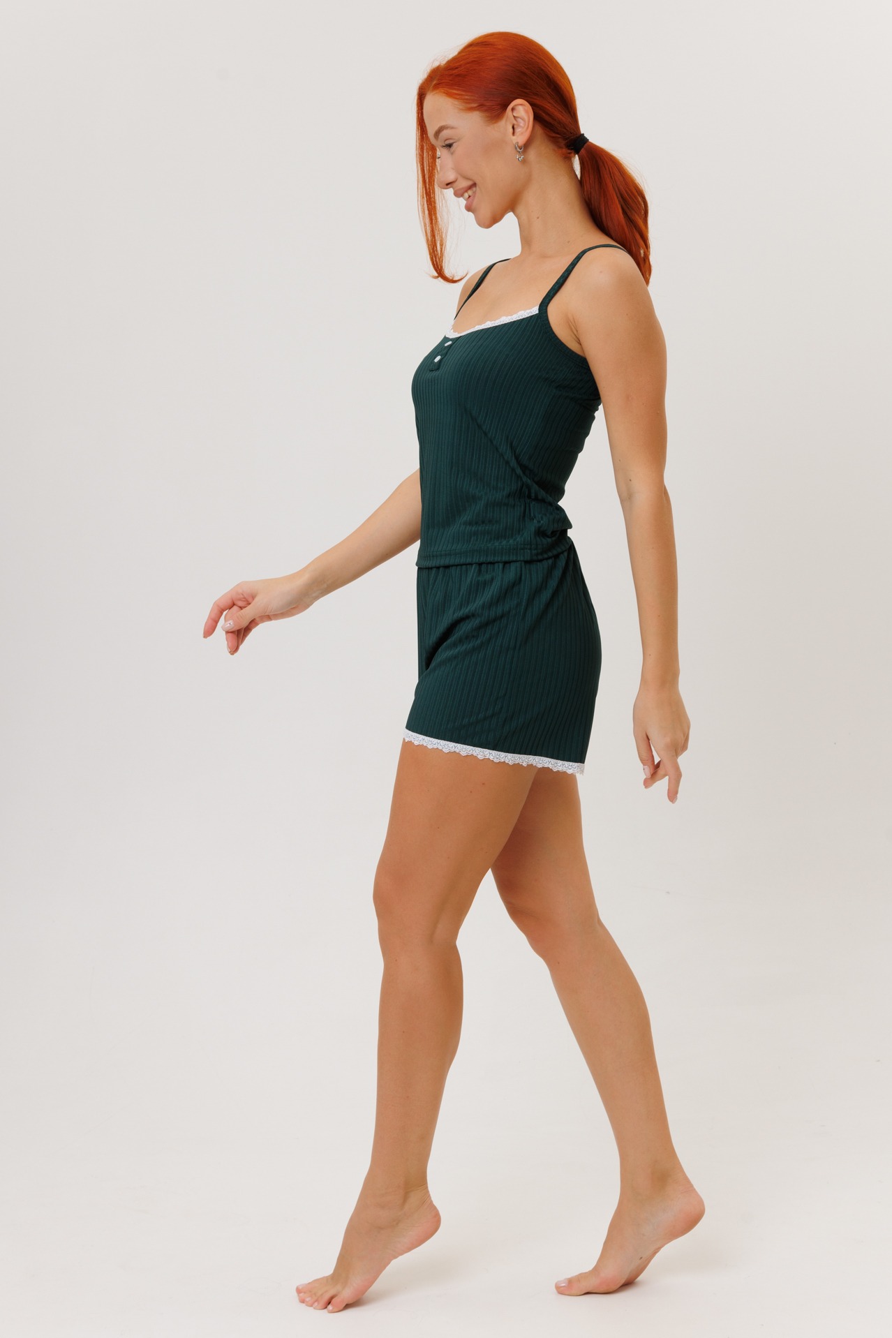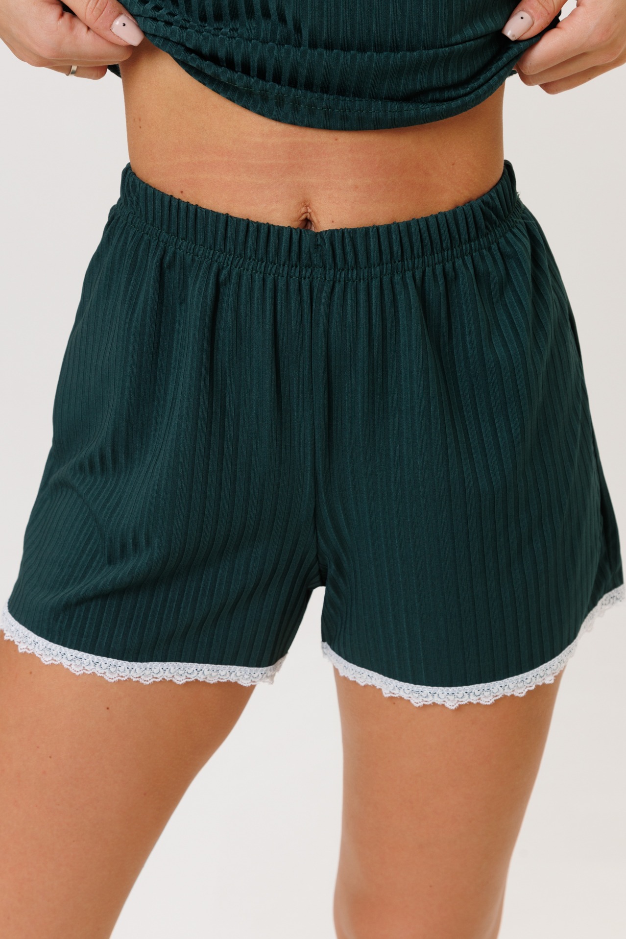 Женский костюм с шортами из трикотажной лапши — это комплект домашней или повседневной одежды, состоящий из топа и шорт, изготовленных из особого вида трикотажа с рельефной поверхностью, напоминающей лапшу. Такой материал отличается эластичностью, мягкостью и хорошей воздухопроницаемостью.