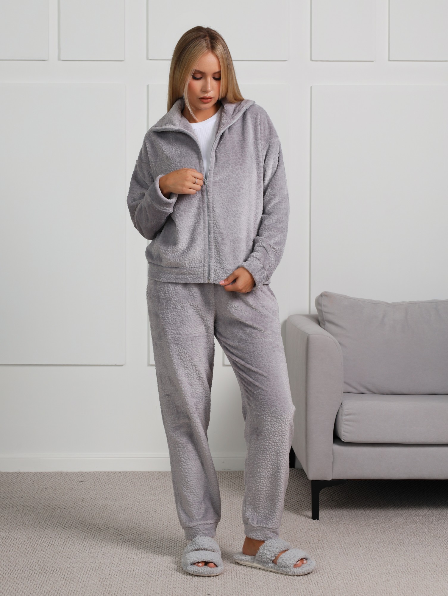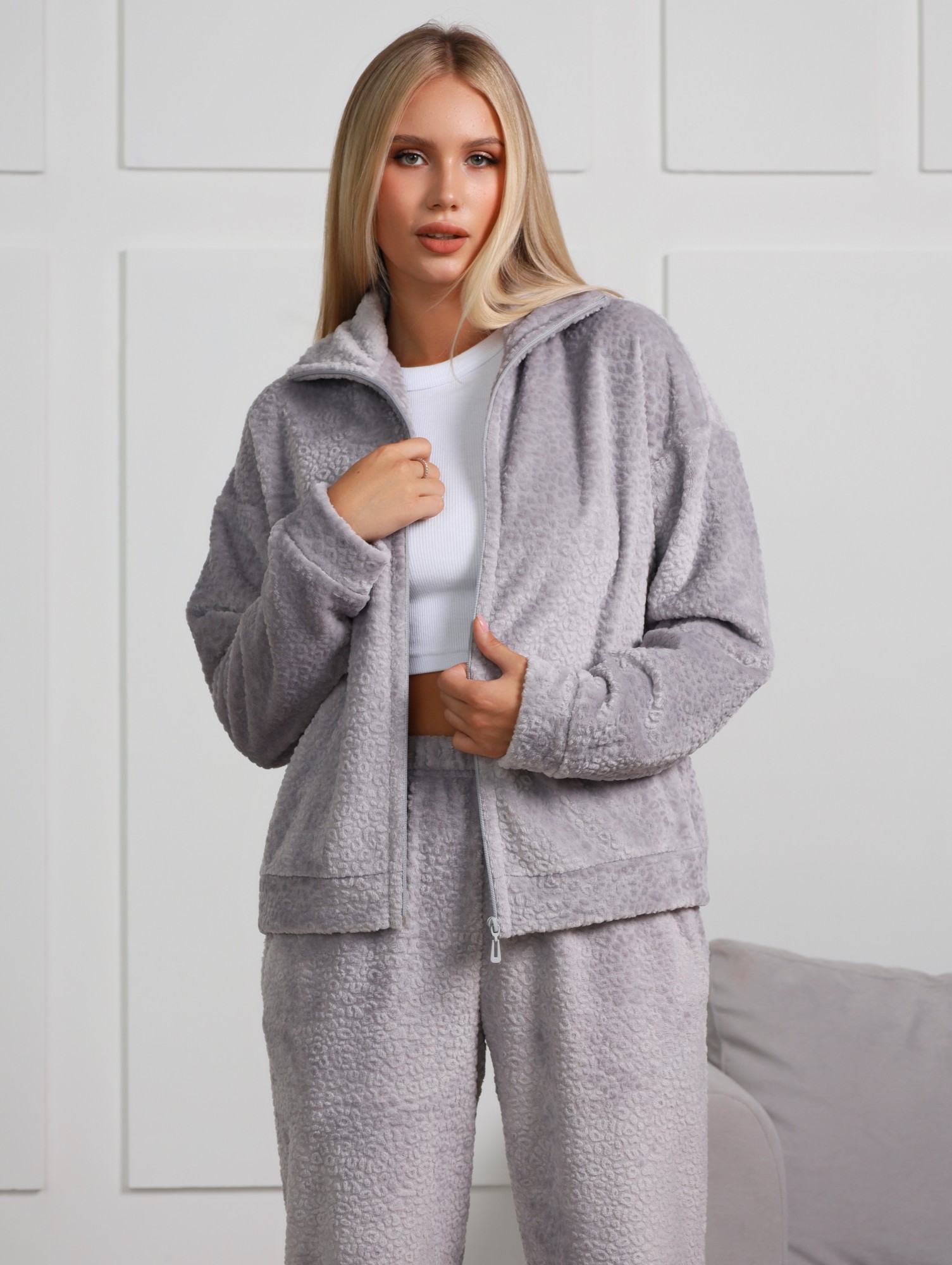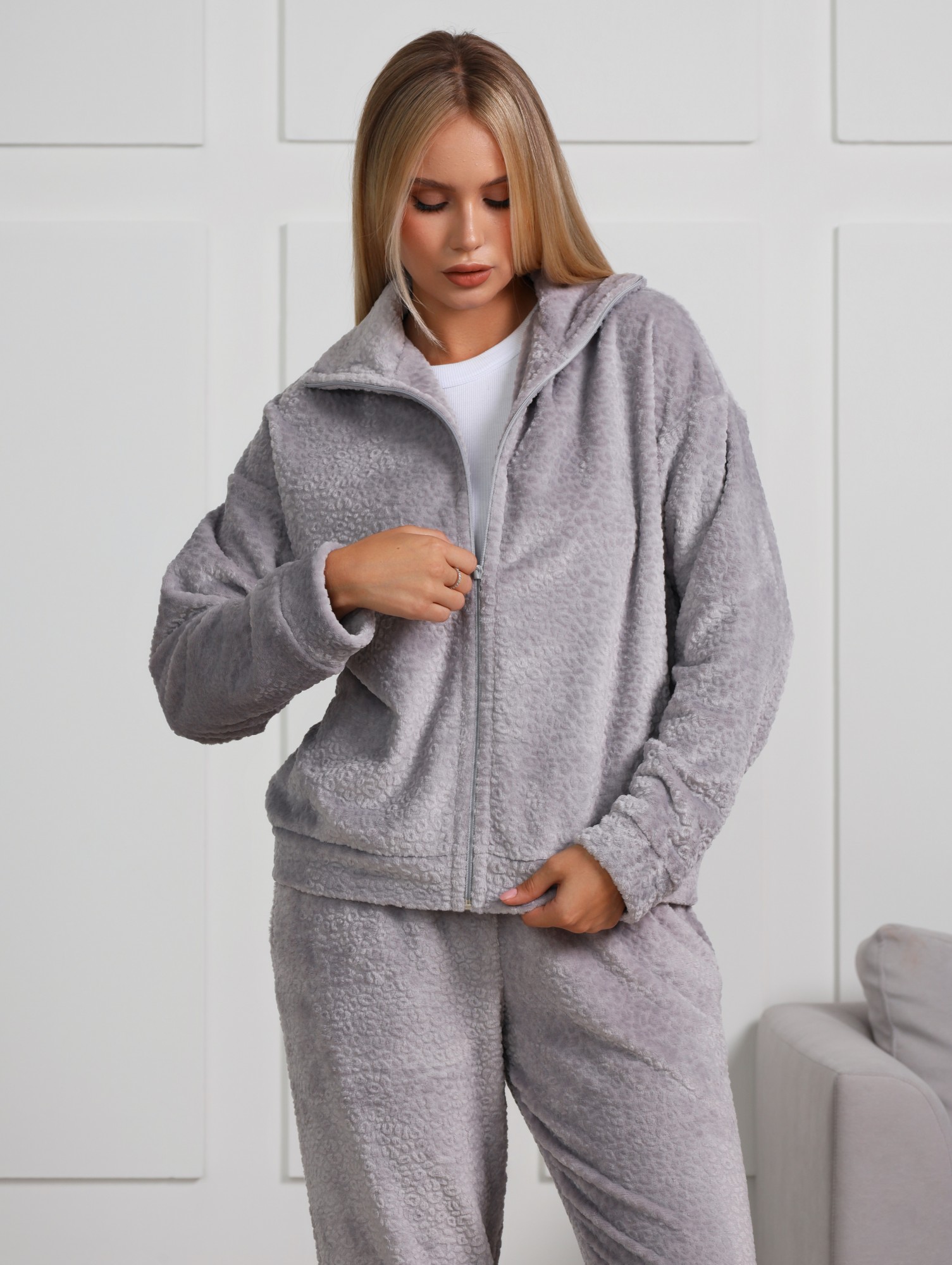 Костюм из гладкокрашенного полотна «велсофт», состоящий из куртки и брюк. Куртка – из полотна «велсофт», прямого силуэта, с длинными втачными рукавами, воротником «стойка», центральной бортовой застежкой на тесьму «молния» и вышивкой на спинке. Нижние срезы рукавов обработаны притачными манжетами. Низ изделия – с притачным поясом. Брюки – из гладкокрашенного полотна «вельмонд» классического покроя, с карманами в боковых швах, эластичной тесьмой по талии и манжетами по низу изделия.