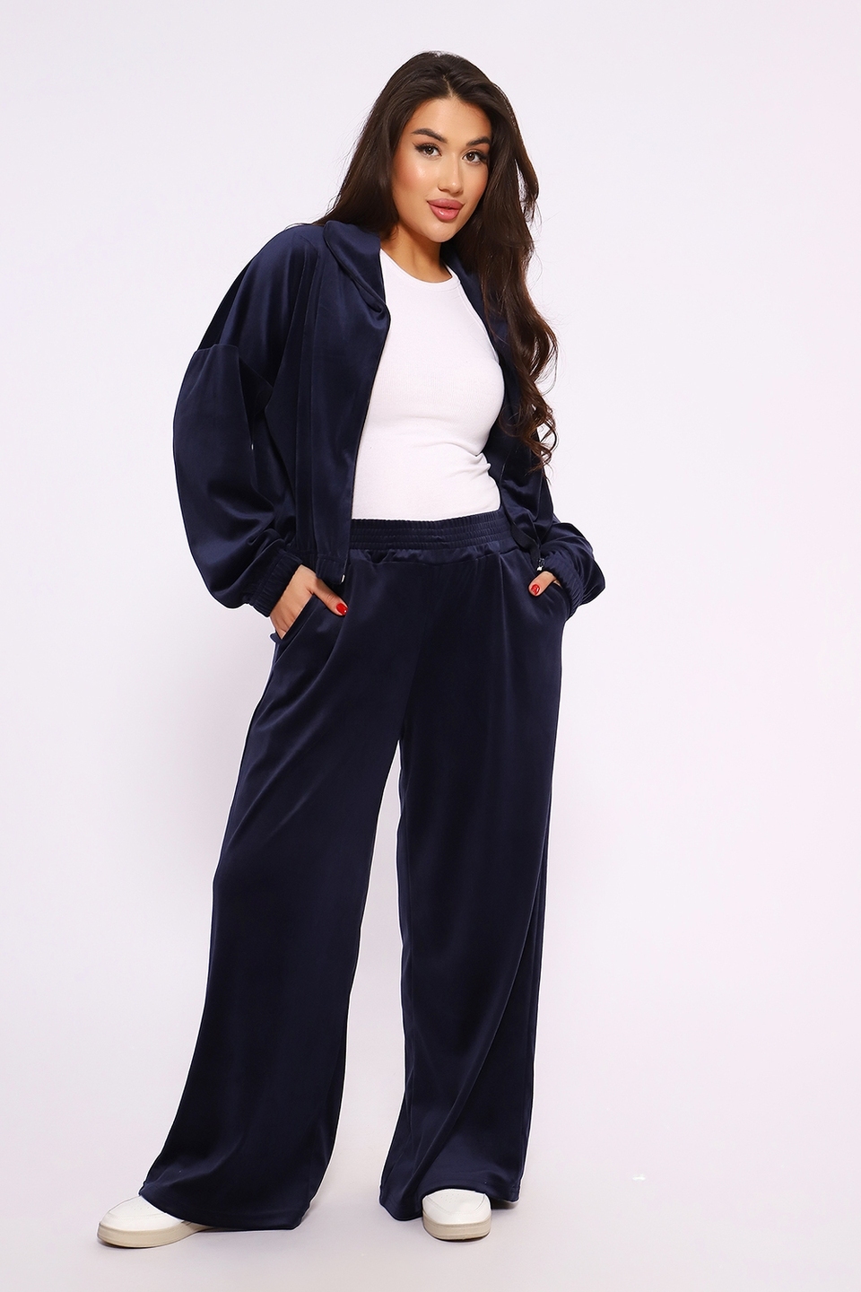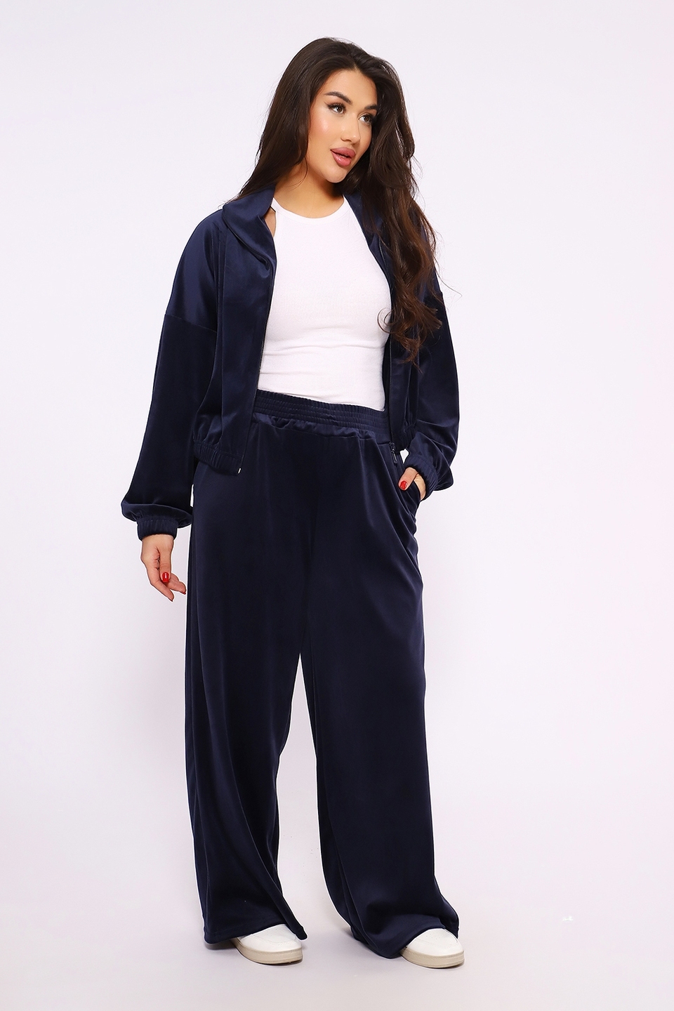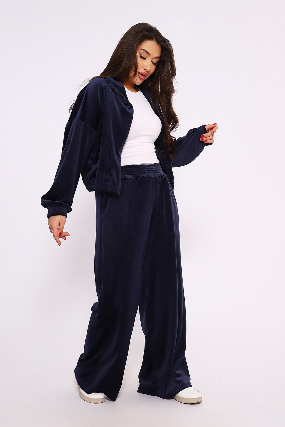 Женский костюм с брюками из велюра — это комплект одежды, состоящий из верха (джемпера, толстовки или свитшота) и брюк, изготовленный из мягкой ворсистой ткани. Велюр — это группа тканей с ворсистой лицевой поверхностью и гладкой изнанкой.