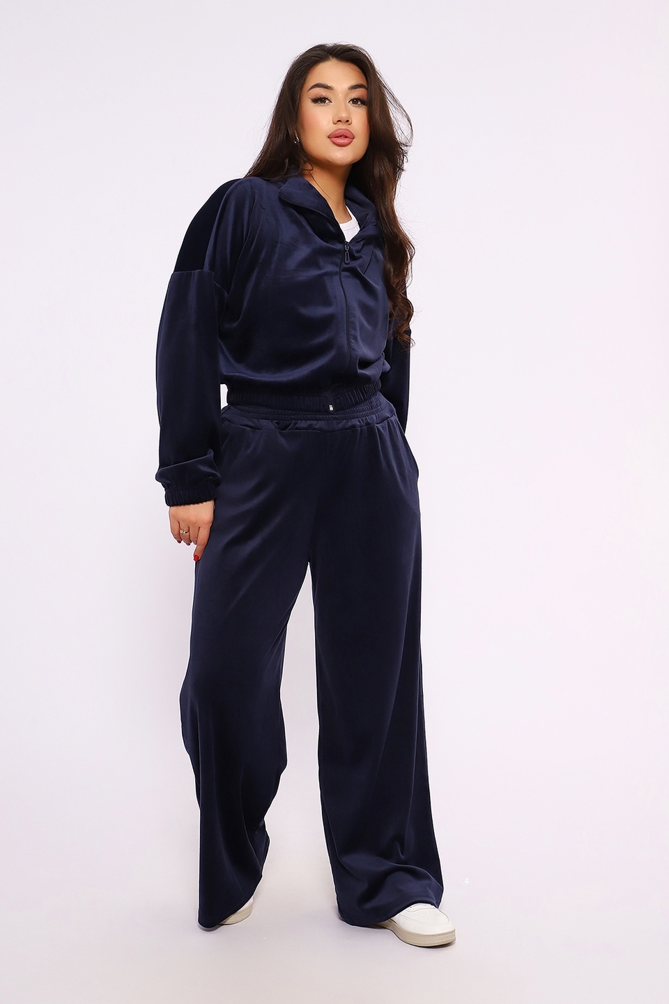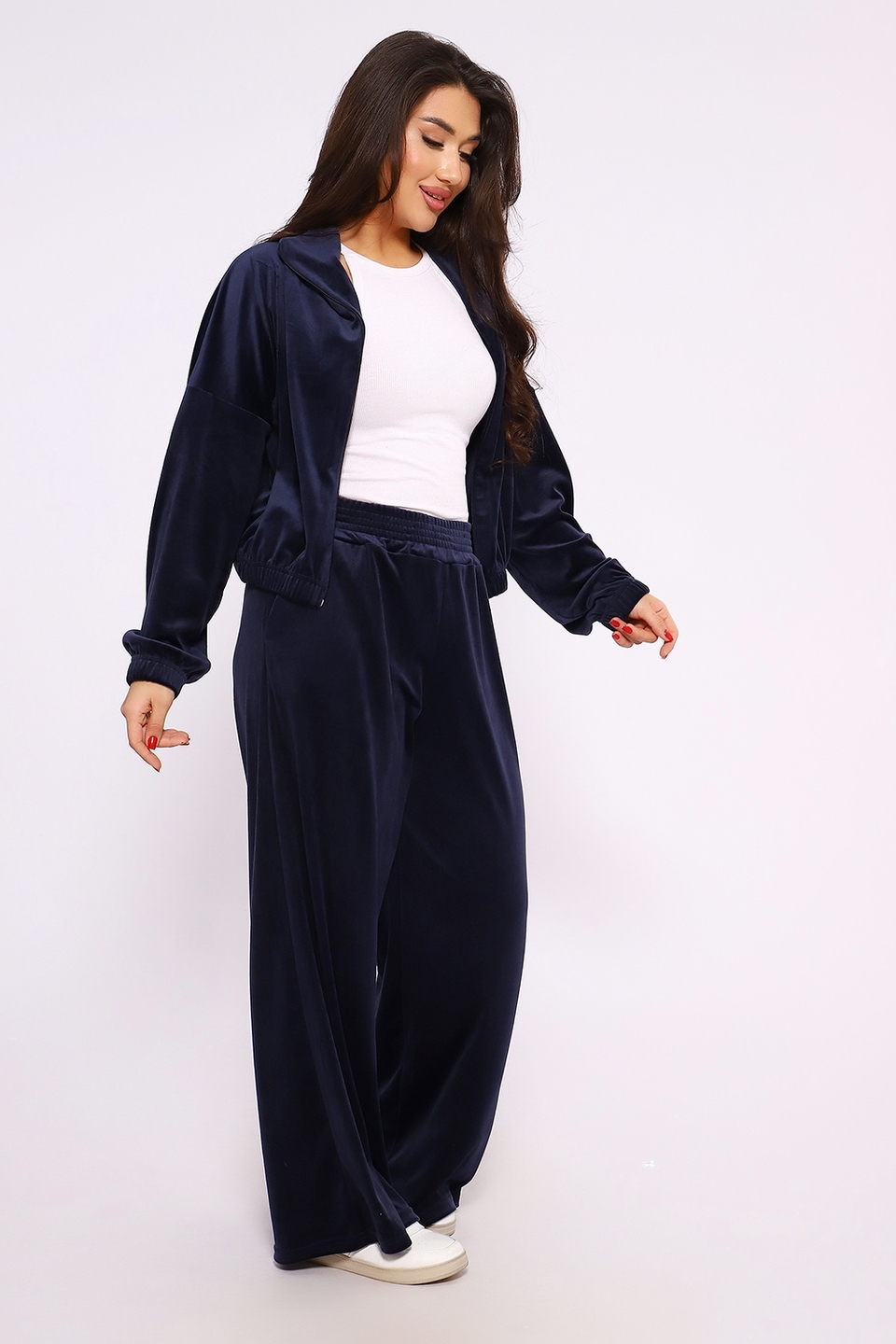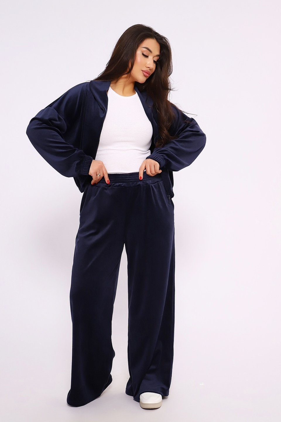Женский костюм с брюками из велюра — это комплект одежды, состоящий из верха (джемпера, толстовки или свитшота) и брюк, изготовленный из мягкой ворсистой ткани. Велюр — это группа тканей с ворсистой лицевой поверхностью и гладкой изнанкой.