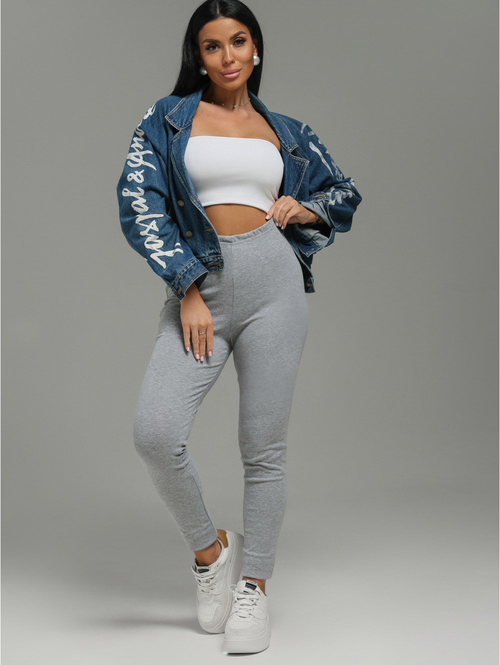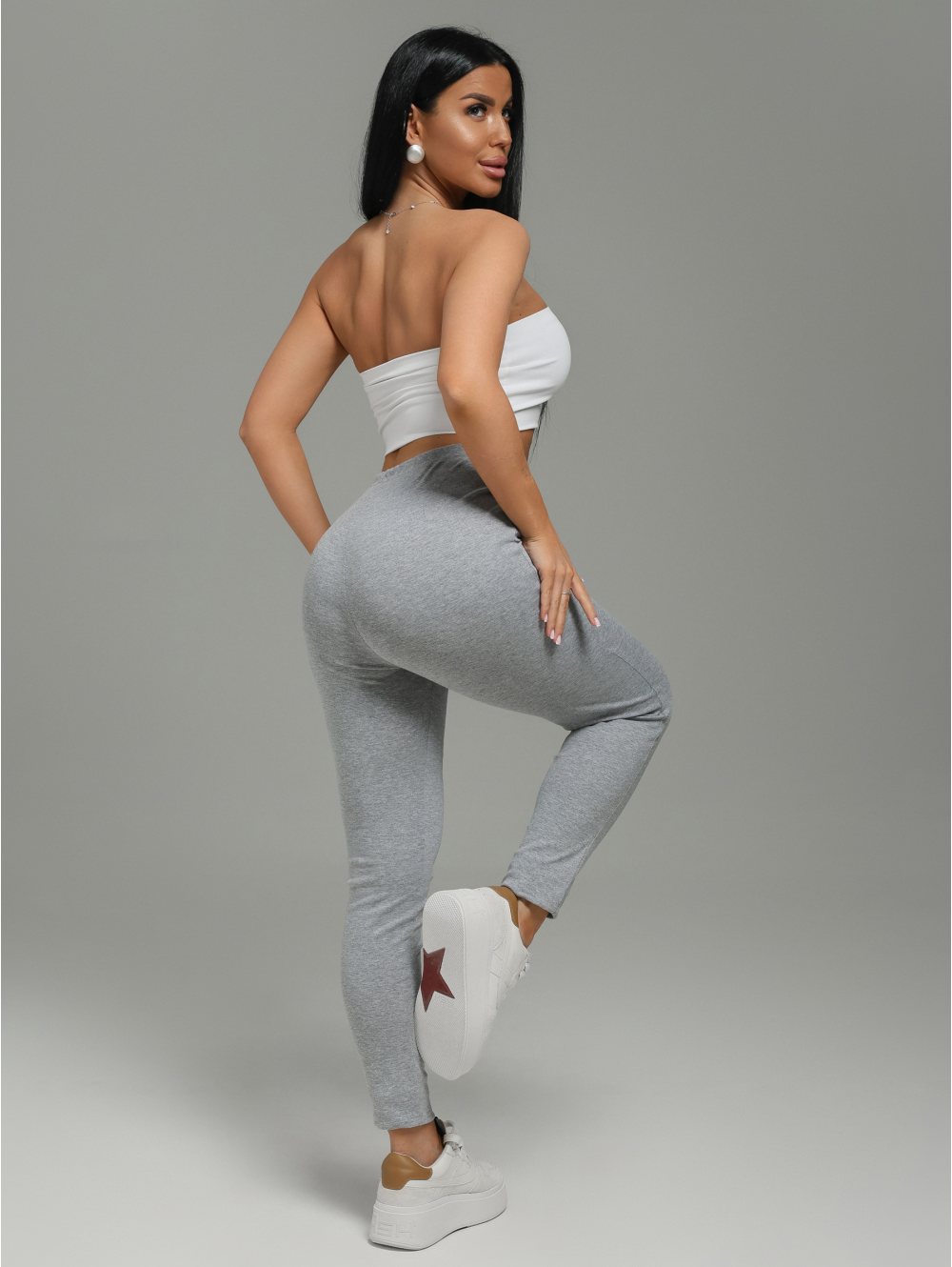 Леггинсы женские Бритни из рибаны с цельнокроеным поясом.