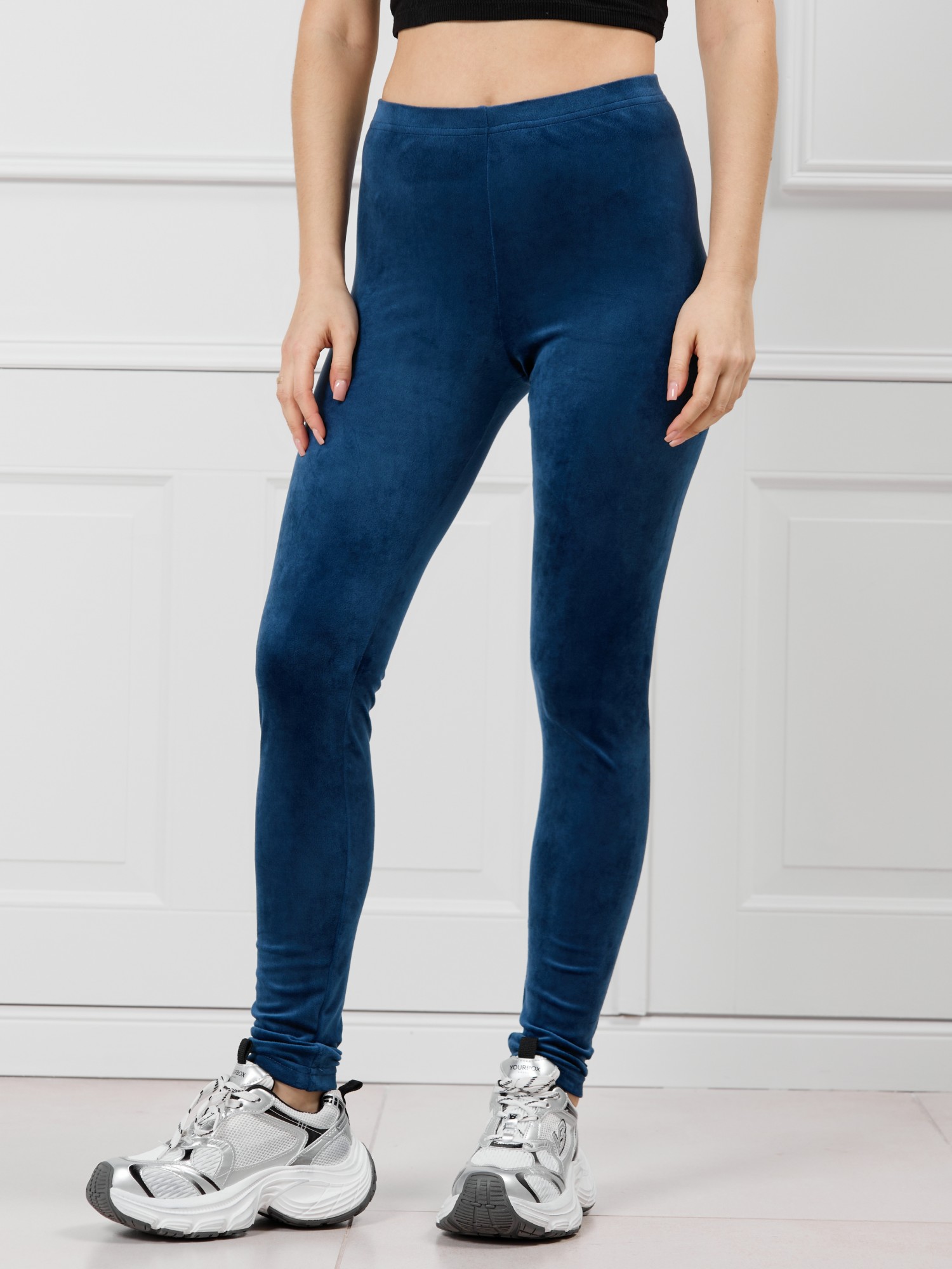 Леггинсы молодежные из трикотажного гладкокрашенного полотна «велюр-стрейч» длинные, облегающие фигуру, с эластичной тесьмой по талии.