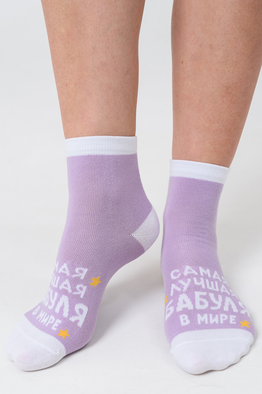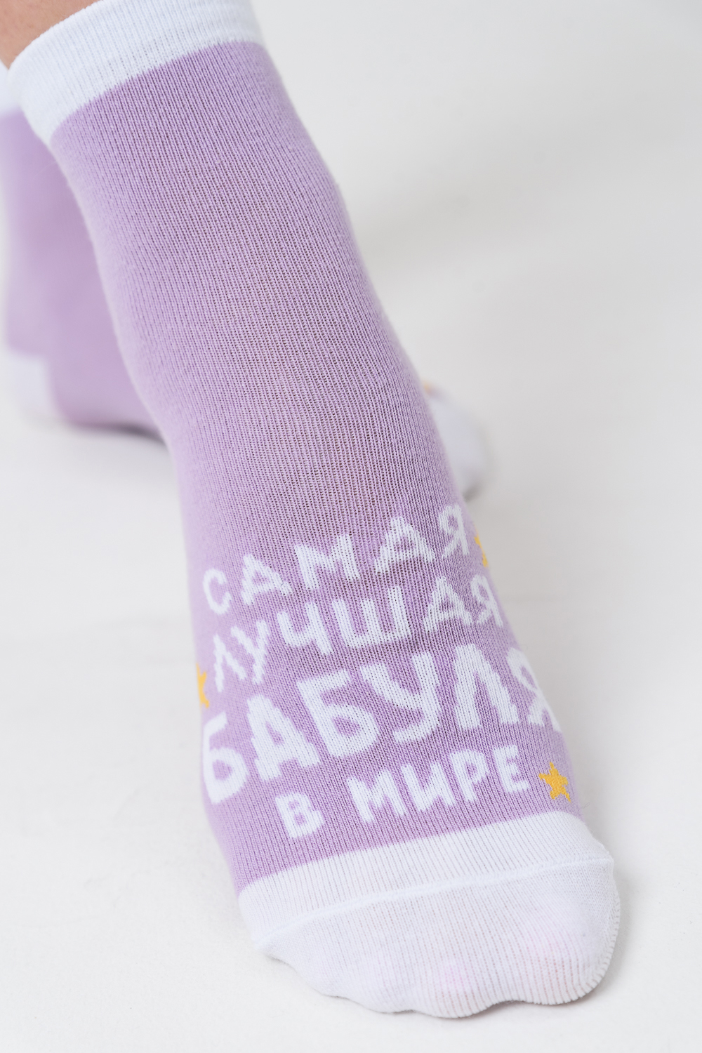 Комплект женских носков 3 пары. Пятка и мысок другого цвета. На верхней части носка надпись Самая лучшая бабуля мире