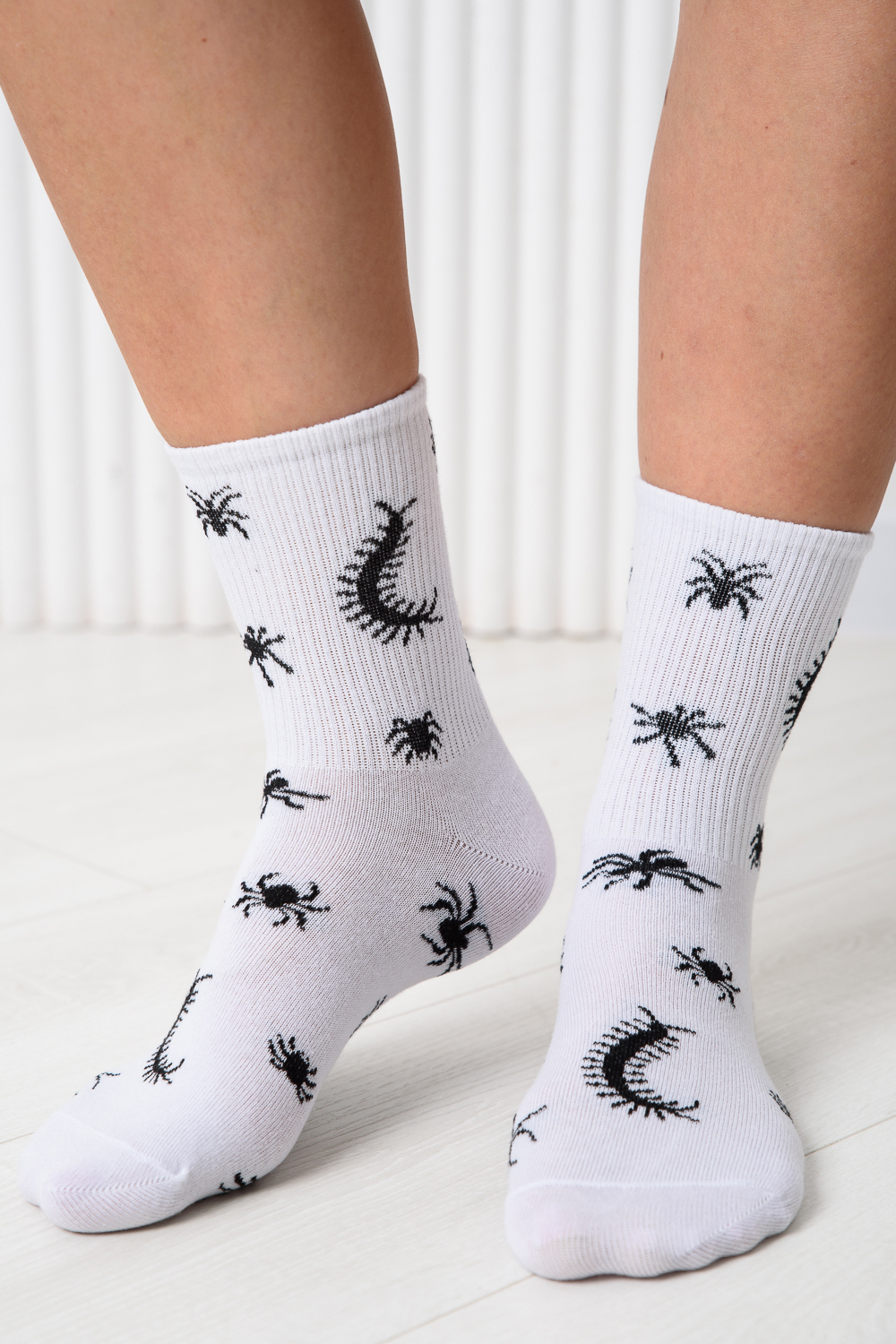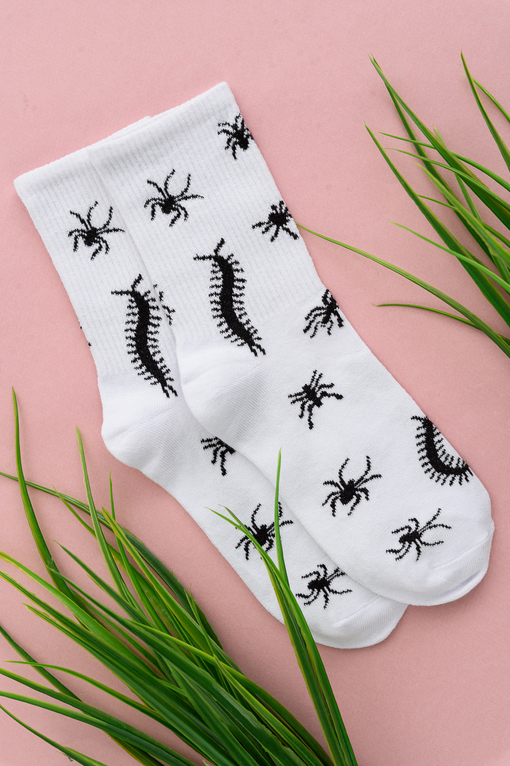 Комплект носков с резинкой по всей верхней части. По всему носку изображение насекомых. В комплекте 3 пары.