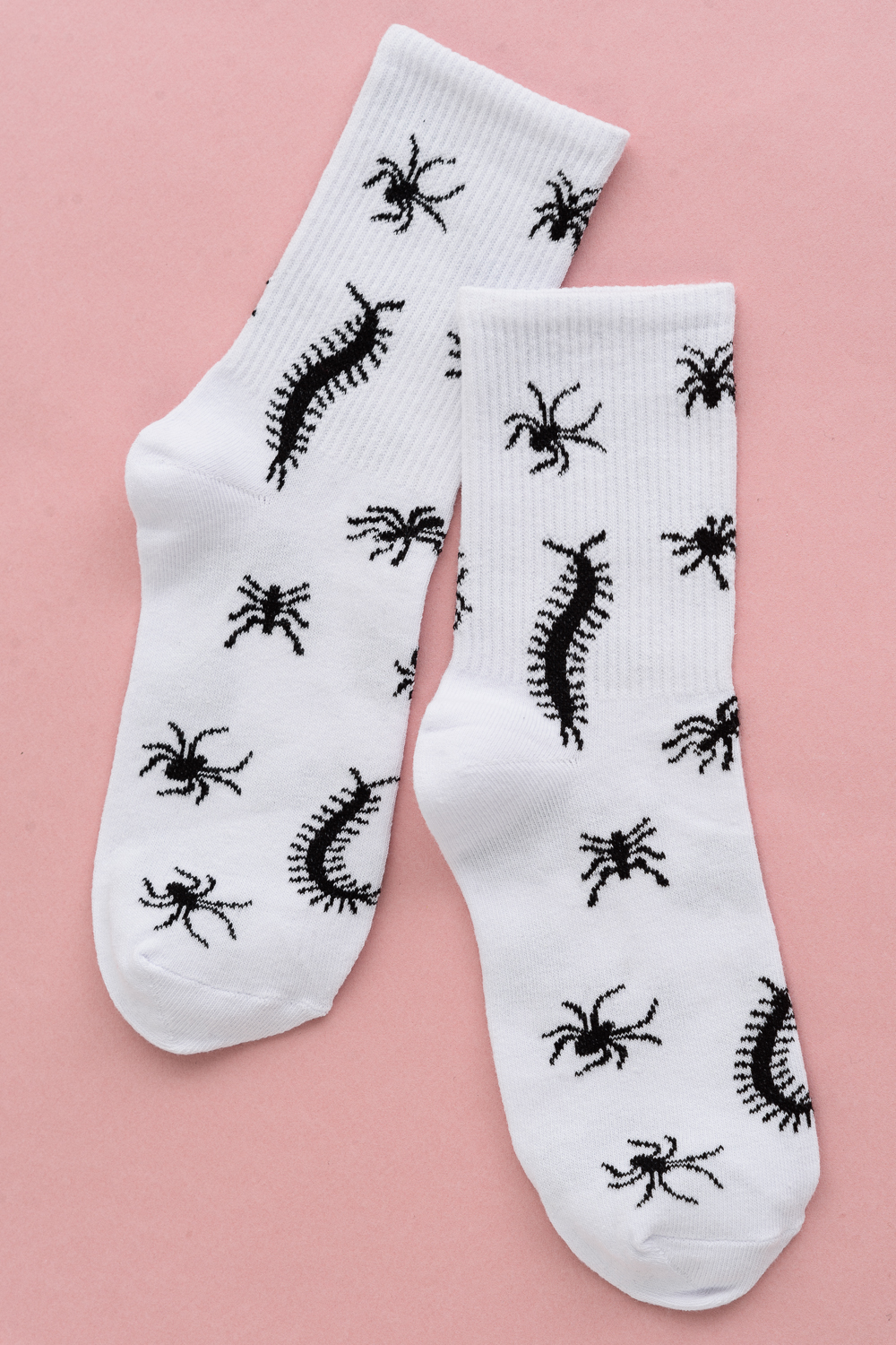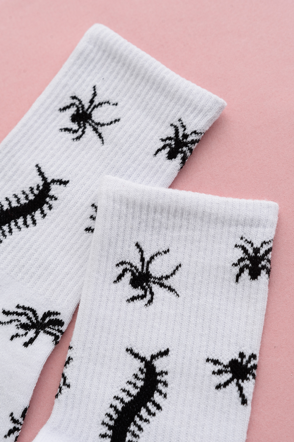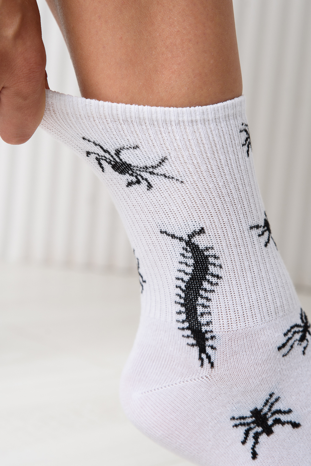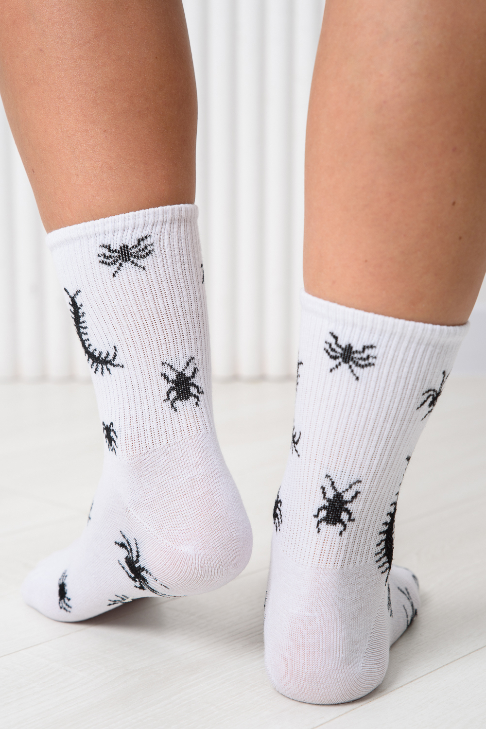 Комплект носков с резинкой по всей верхней части. По всему носку изображение насекомых. В комплекте 2 пары.