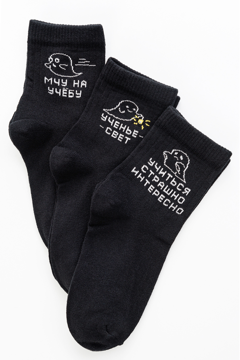 Женские носочки с реалистичными надписями, связанные из натурального хлопка. Креативная модель мягко облегает ногу, не доставляя дискомфорт в течение всего дня. Носки сочетаются с разной обувью, подходят как женщинам, так и мужчинам. В наборе 3 пары.