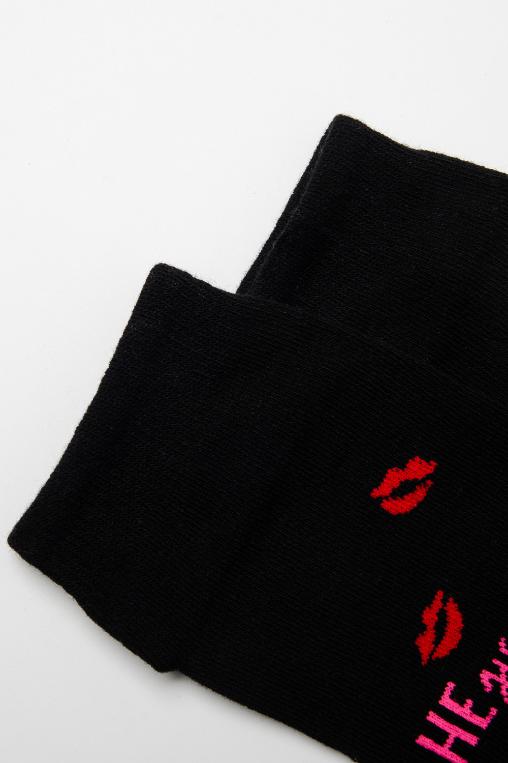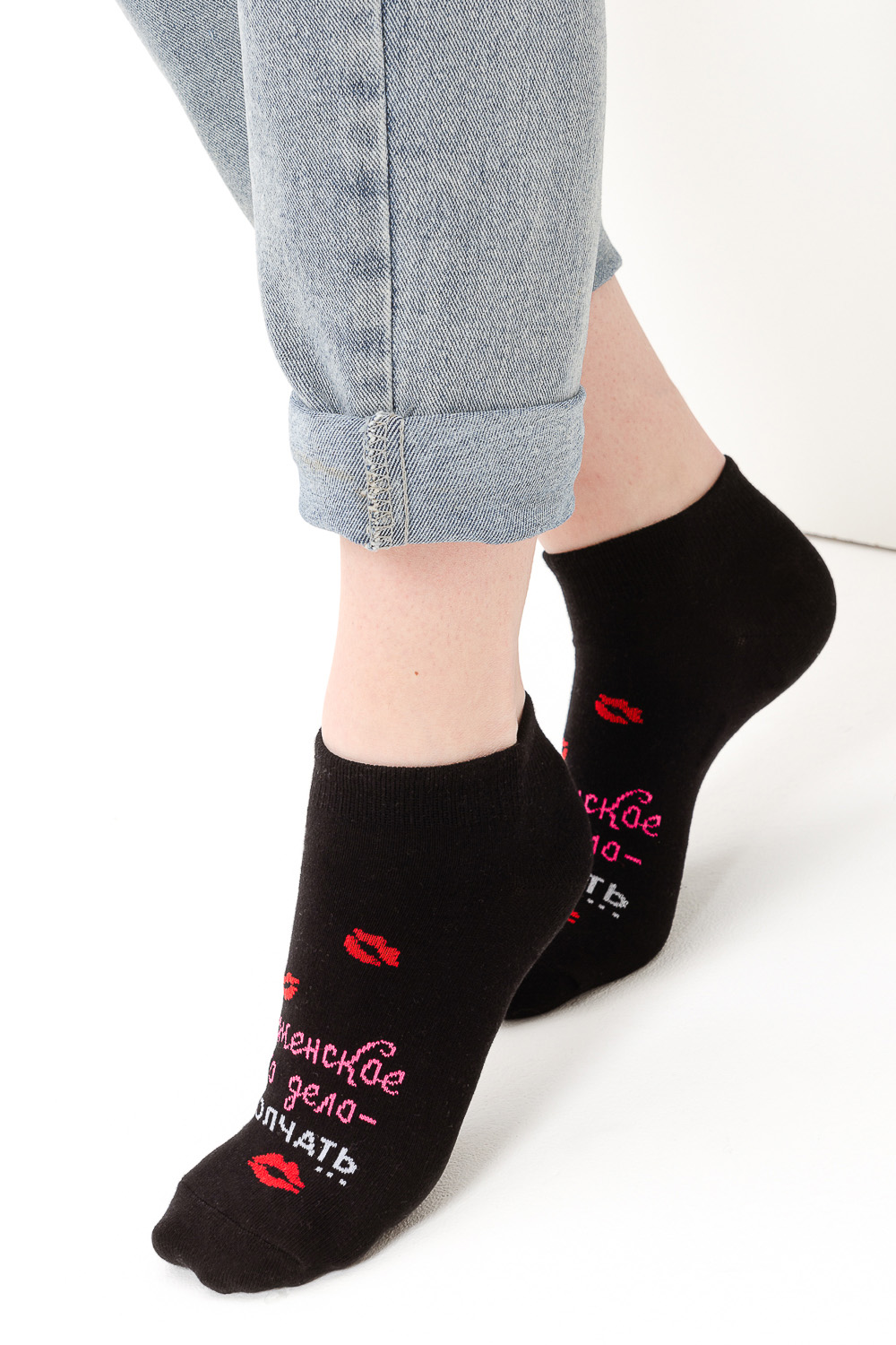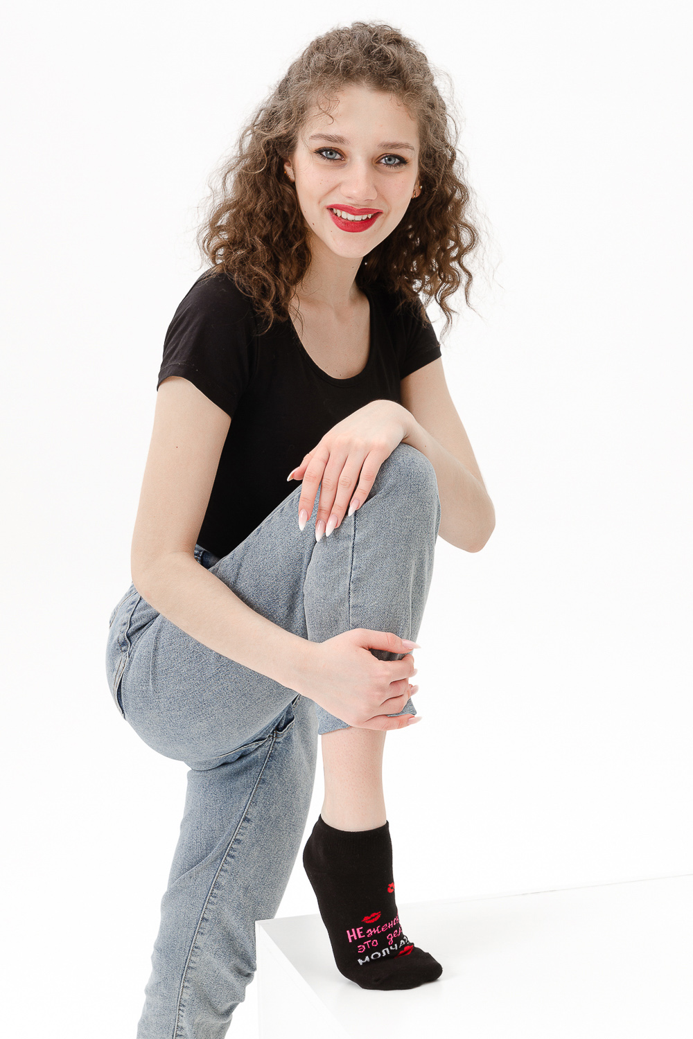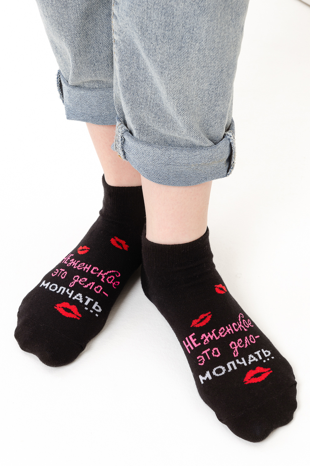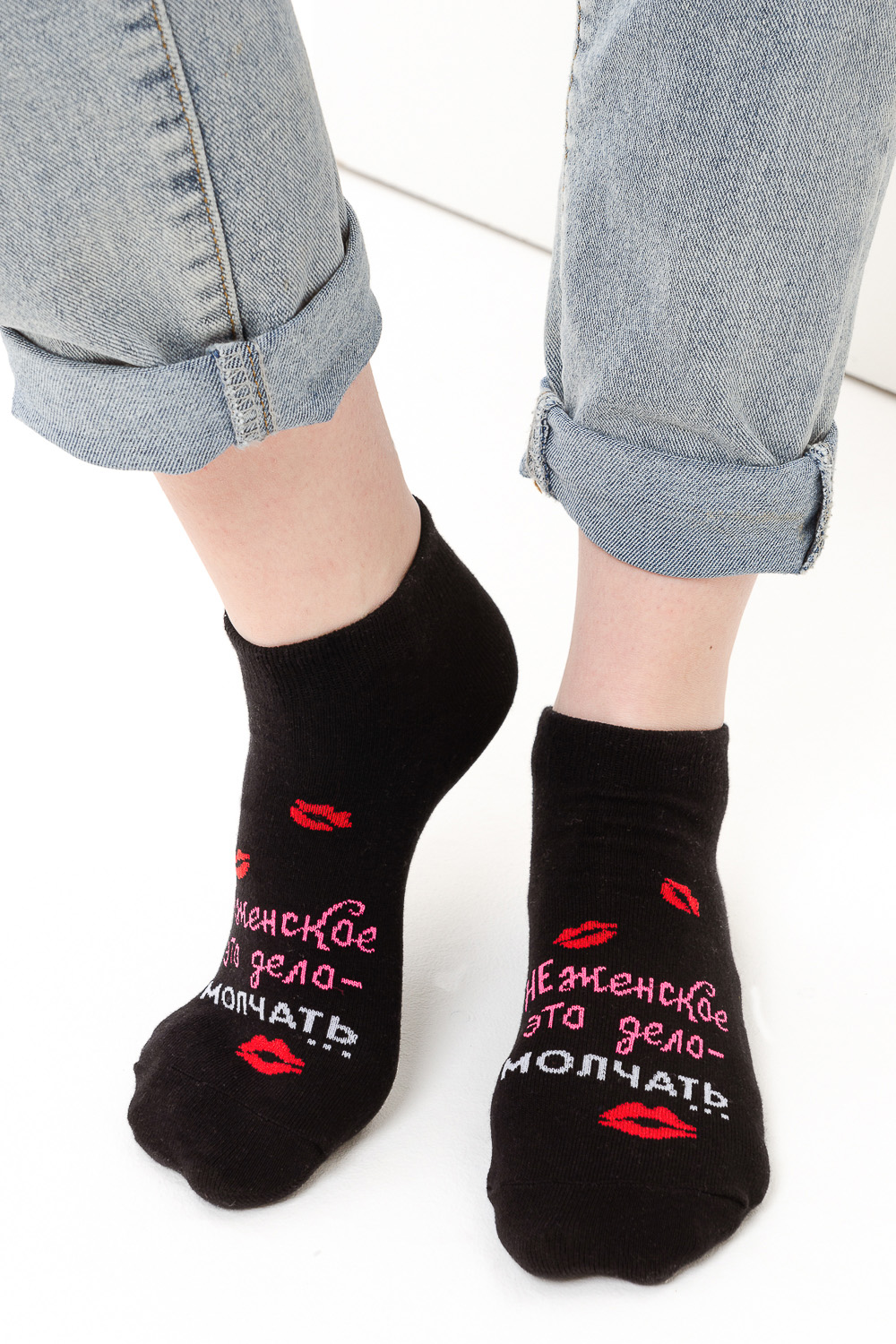 Короткие женские носки с оригинальной надписью. Отлично подойдут в качестве подарка на 8 марта и по любому поводу. В упаковке 3 пары.