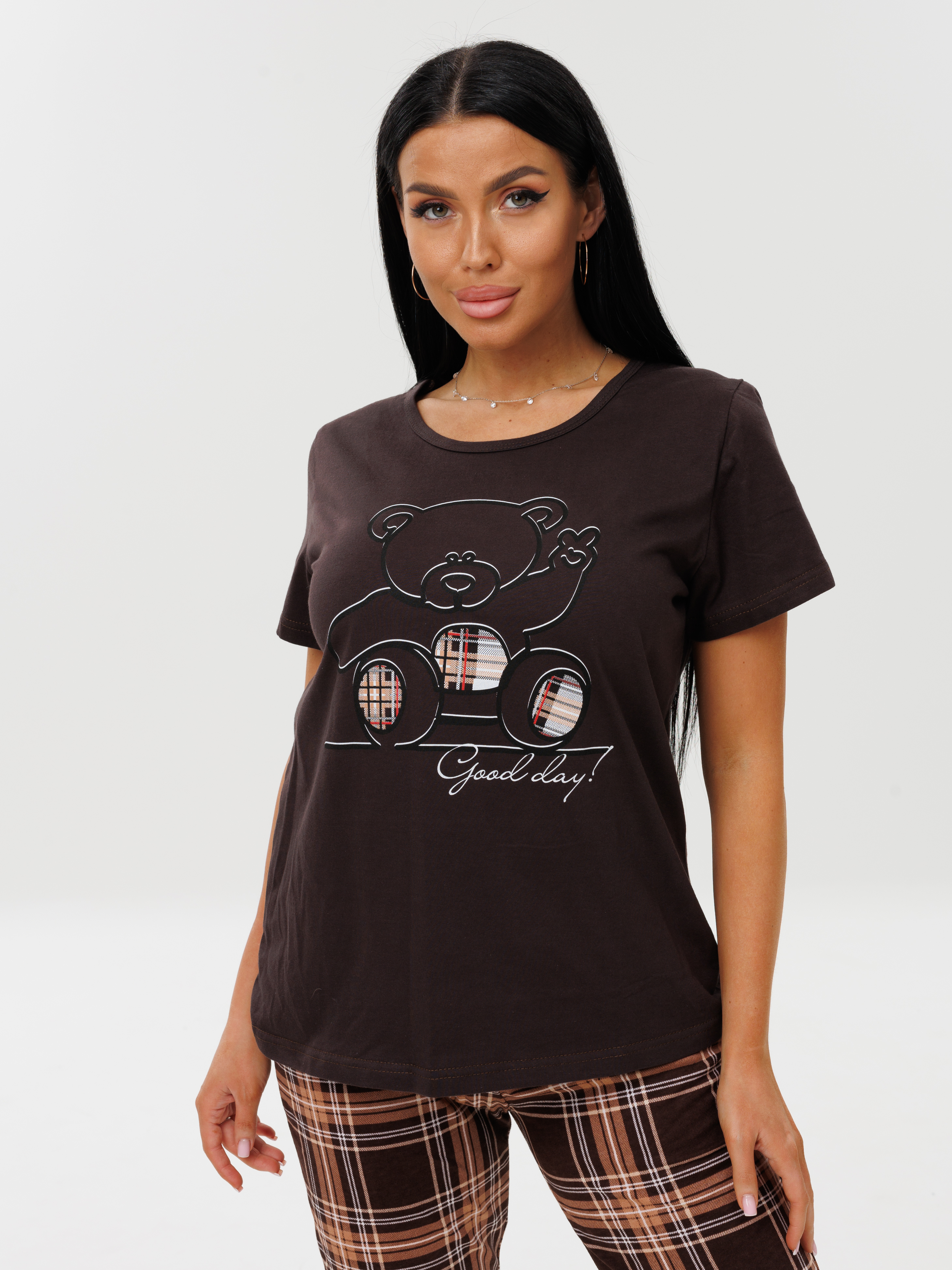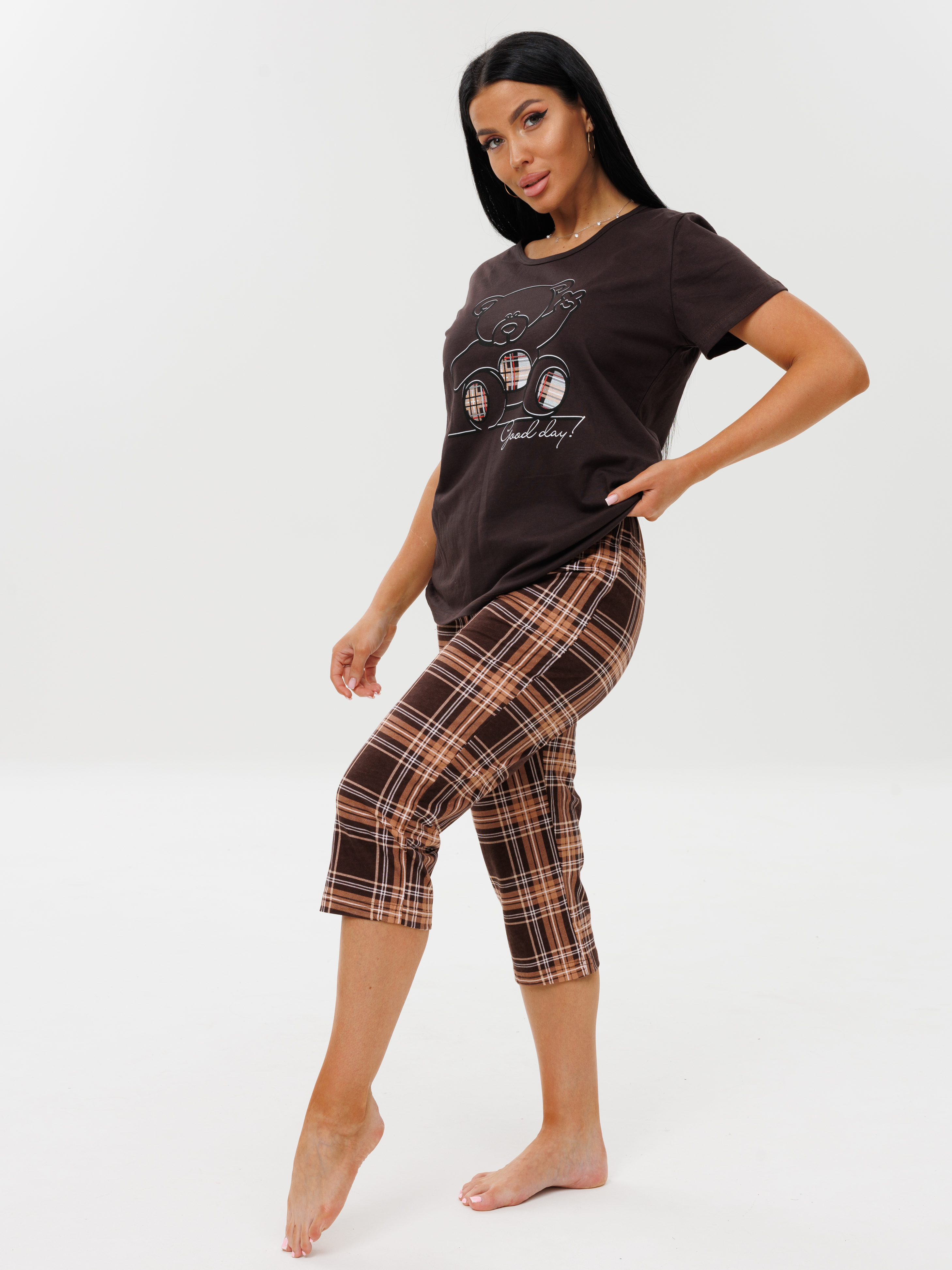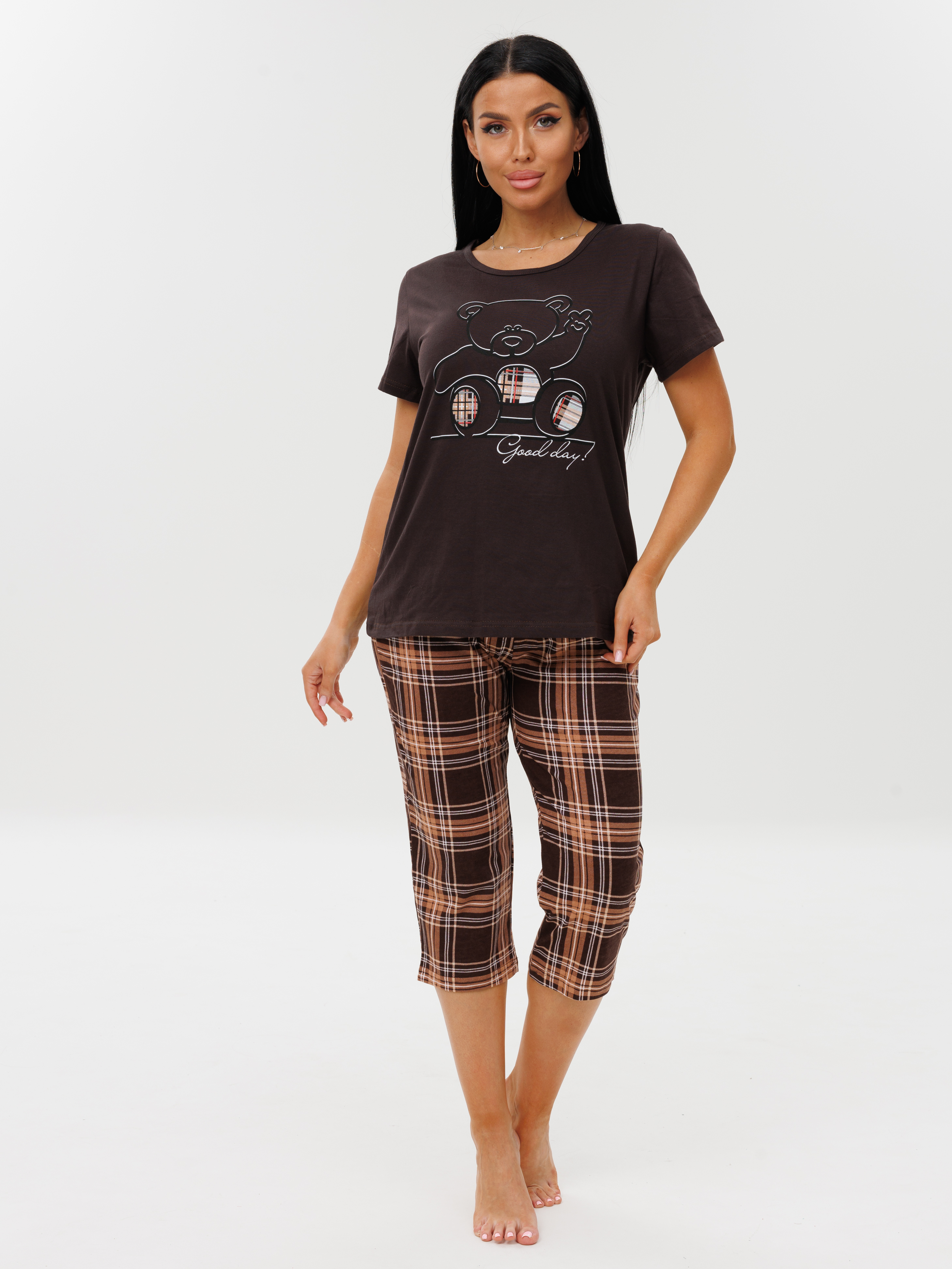 Женская пижама П-33(К) / Коричневый (коричневая клетка) с