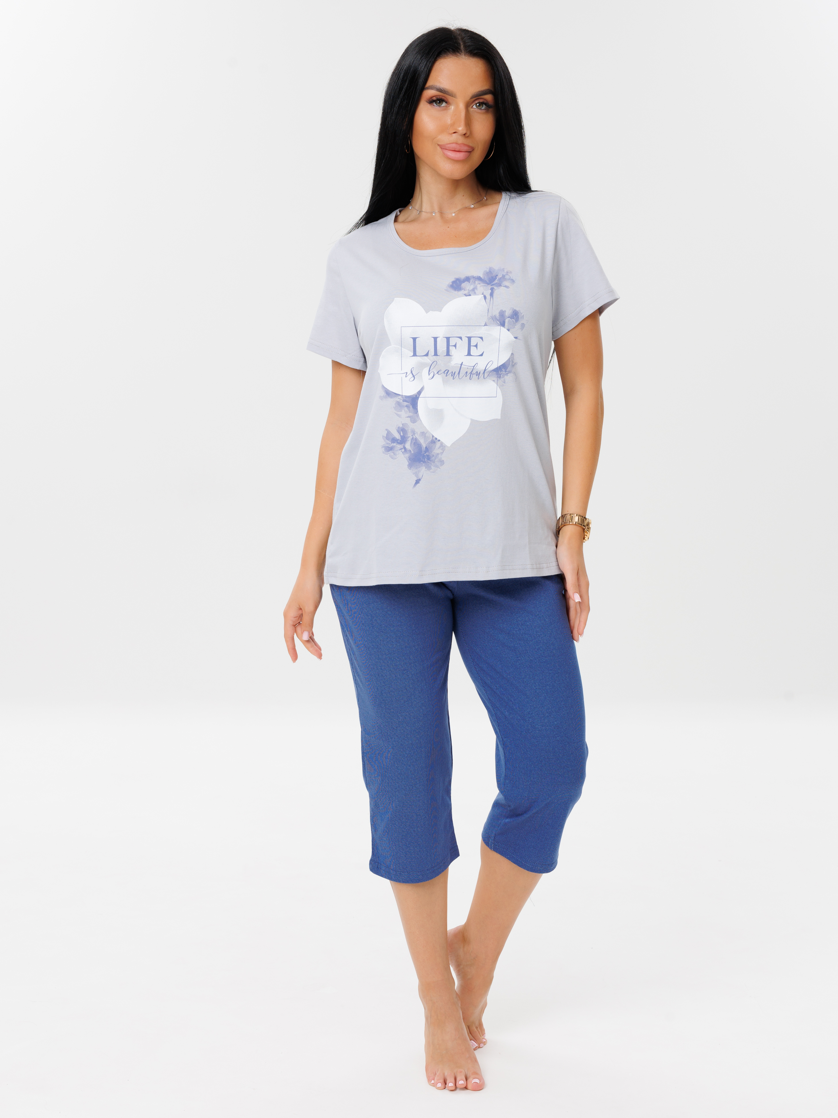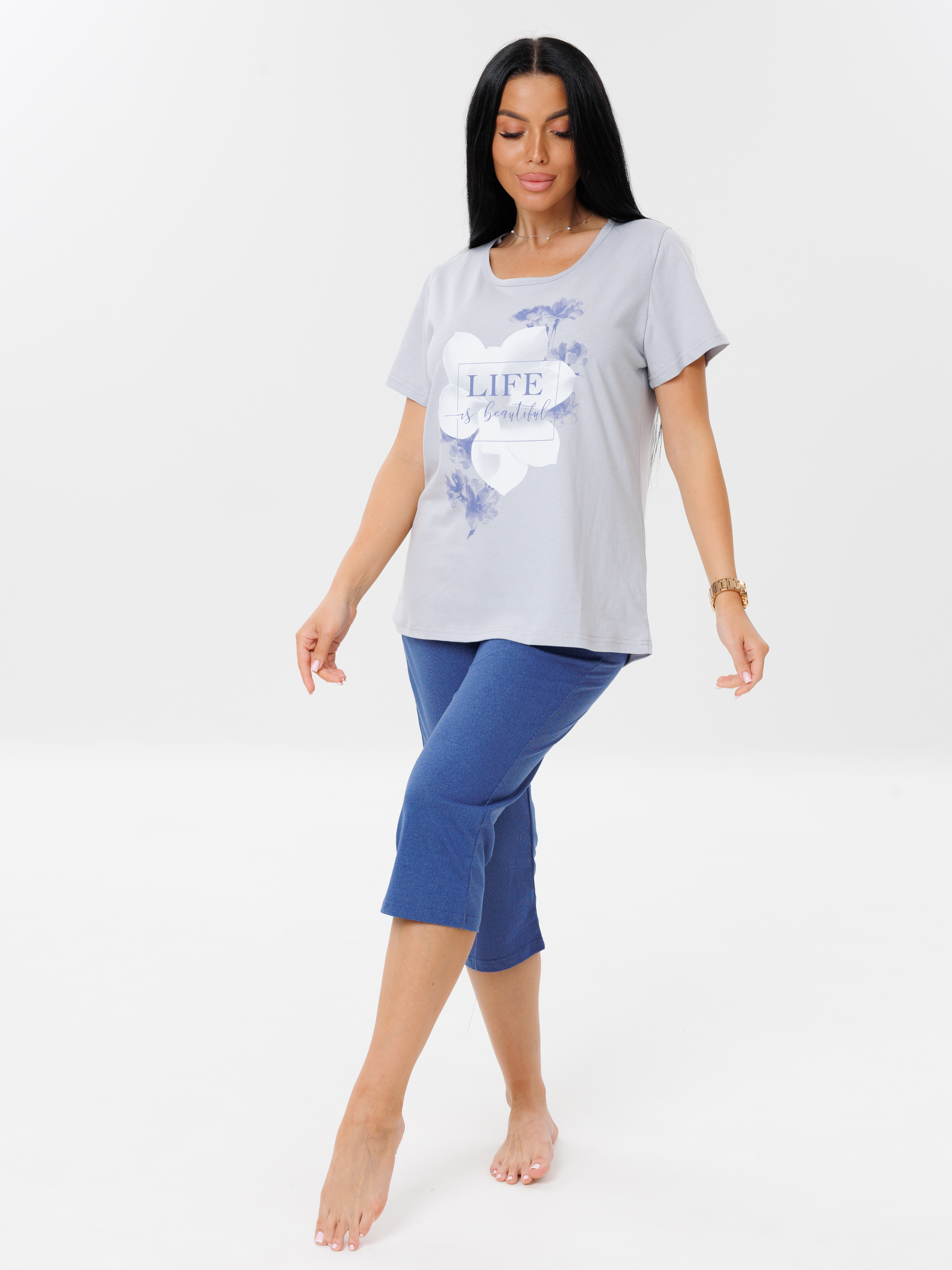 Женская пижама из кулирки — это комфортный и стильный вариант домашней одежды, изготовленный из хлопкового трикотажа. Такая ткань обеспечивает свободу движений и подходит для разных типов фигуры.
