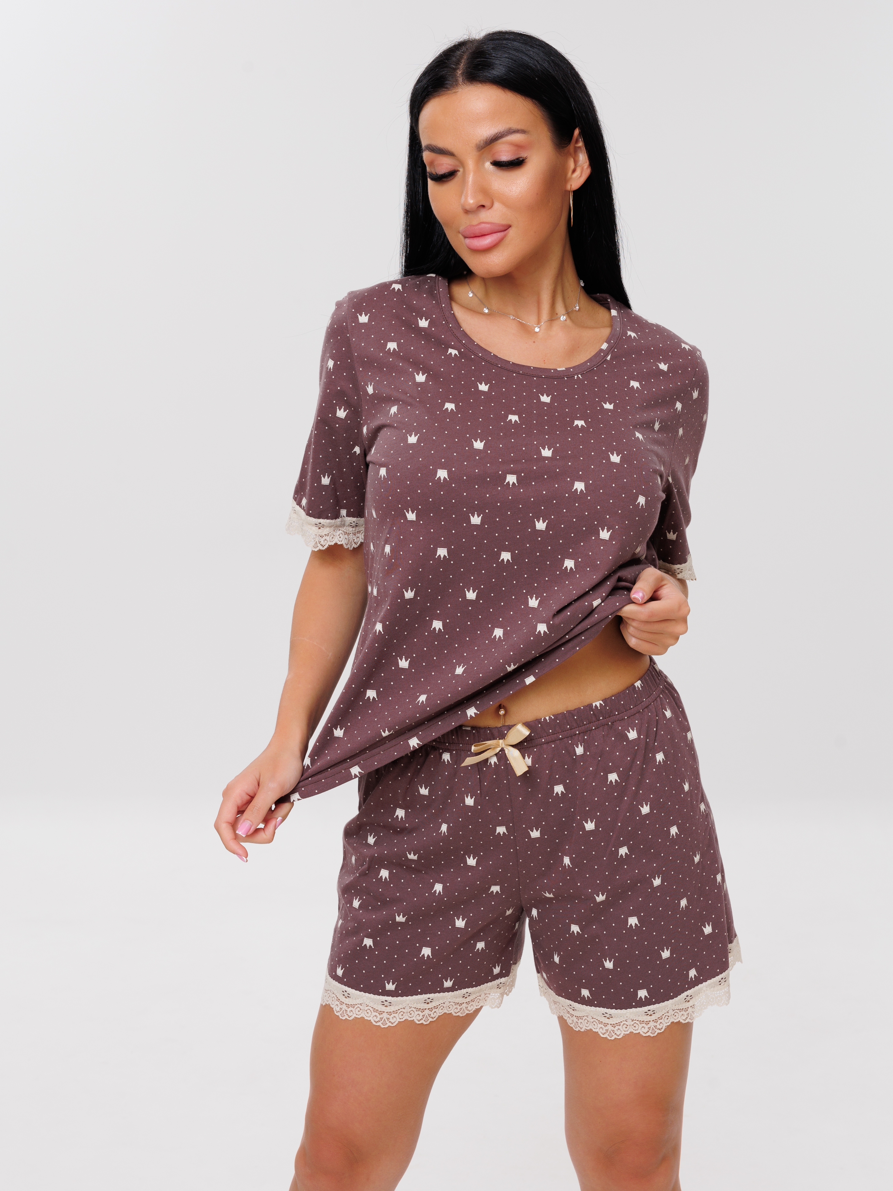 Женская пижама П-69(К) выполнена из трикотажного полотна - кулирка, в составе которого натуральный 100% хлопок. Шорты пижамные свободного кроя имеют широкую резинку, которая не давит на живот. Футболка прямого кроя с коротким рукавом, округлой горловиной и молодежным принтом. Натуральный состав домашнего комплекта устойчив к неоднократным стиркам, позволяет коже дышать и не чувствовать дискомфорта. Пижама домашняя женская подходит как в качестве домашней одежды, так и одежды для сна.