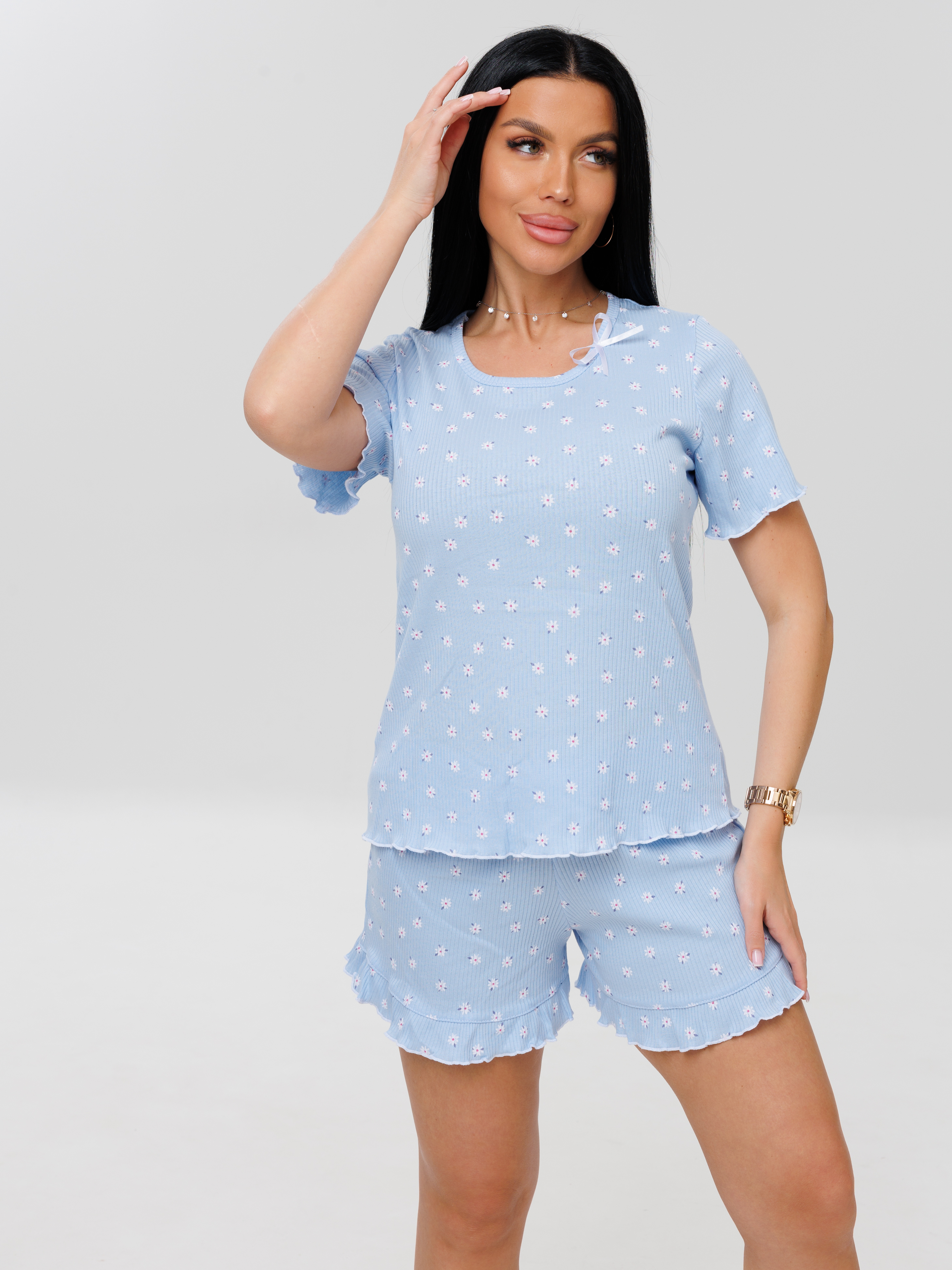 Женская пижама с шортами из кашкорсе П-97(Каш) — это удобный и практичный вариант для домашнего отдыха или летних прогулок. Кашкорсе — тонкое трикотажное полотно из чистого хлопка, которое отличается гигроскопичностью, воздухопроницаемостью и износостойкостью. Такие костюмы обычно имеют свободный крой, не стесняют движений и подходят для разных типов фигуры.