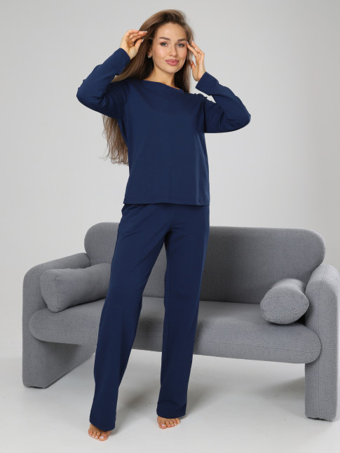 Женский домашний брючный костюм. Лонгслив и прямые брюки с карманами на поясе-резинке. Легкий и комфортный подойдет и как пижама, и как костюм для дома.