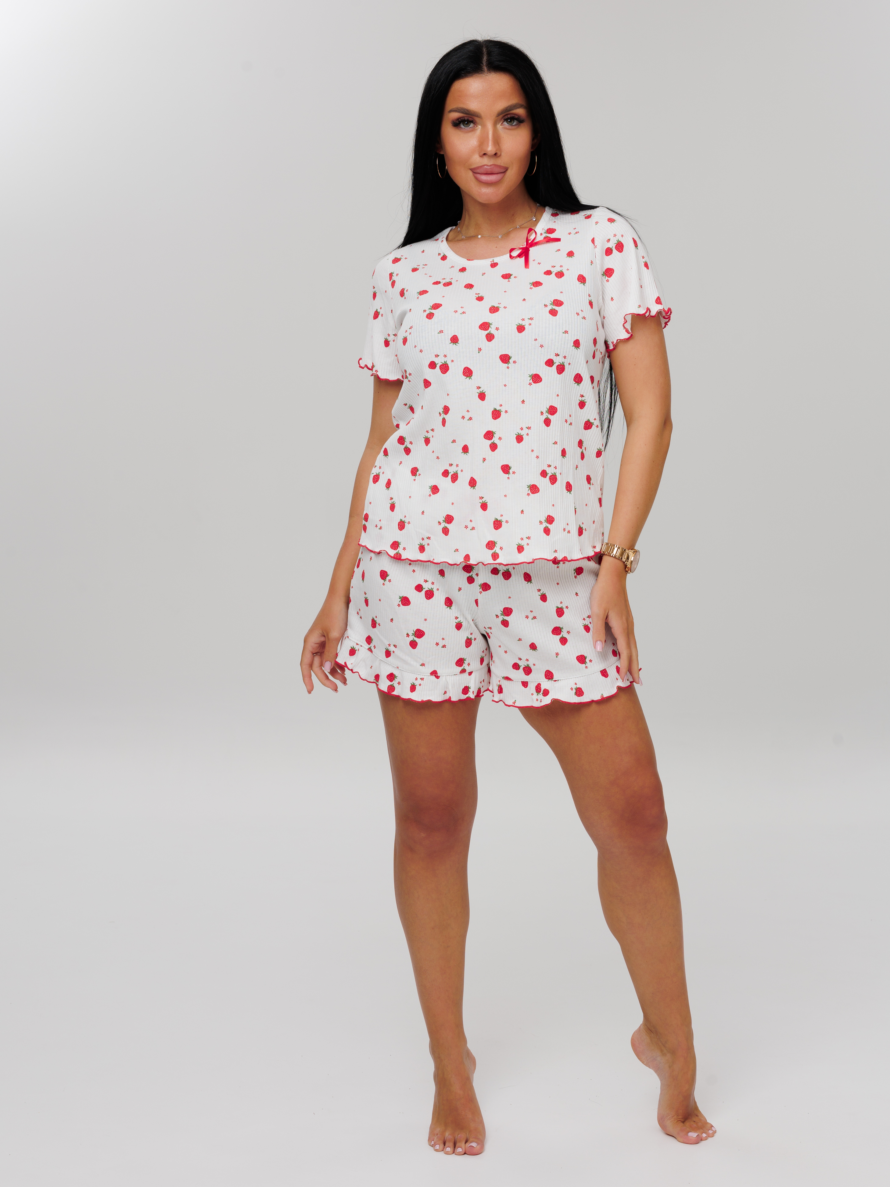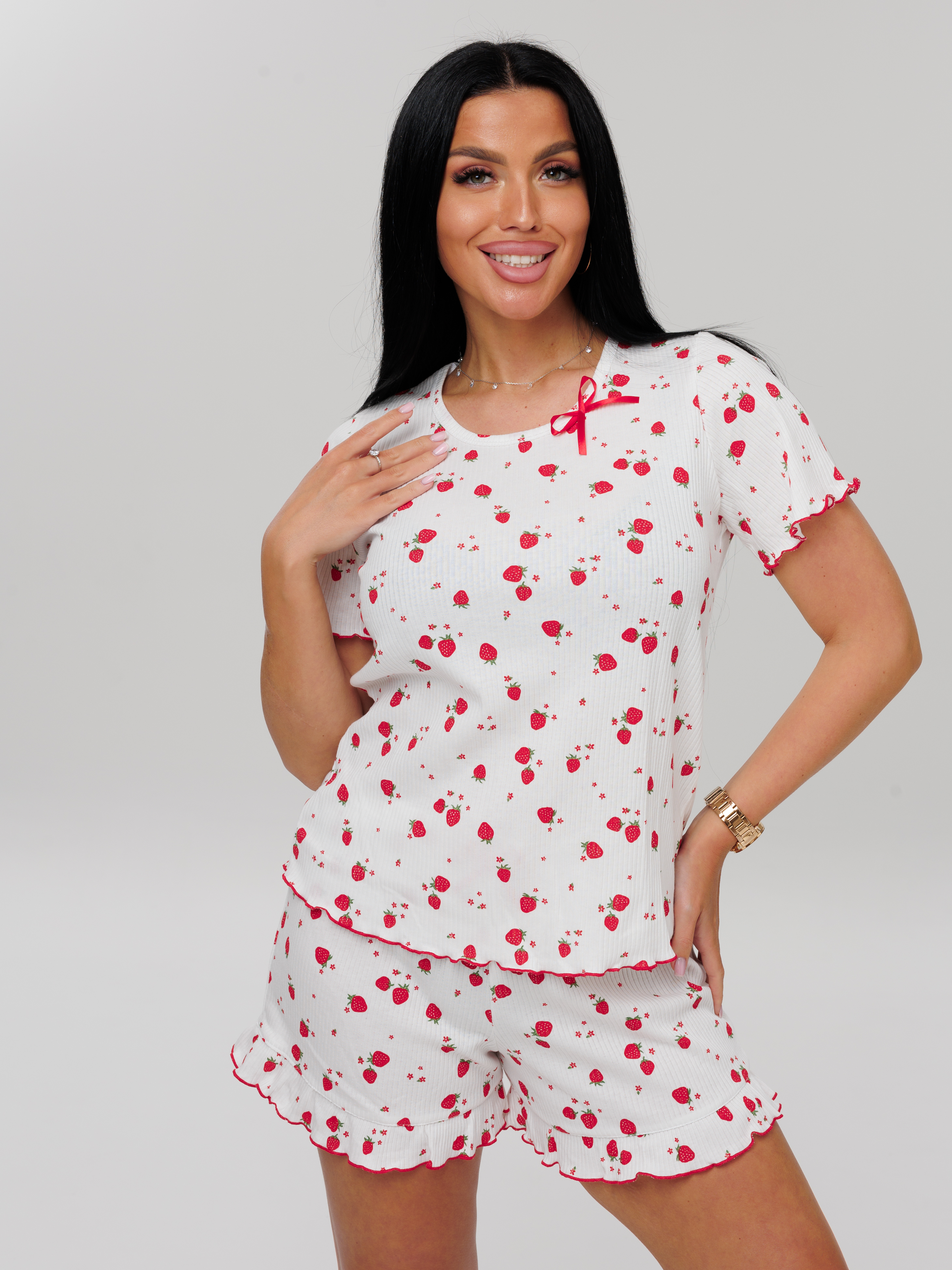 Женская пижама из кашкорсе — это комфортный и стильный вариант домашней одежды, изготовленный из хлопкового трикотажа. Такая ткань обеспечивает свободу движений и подходит для разных типов фигуры.