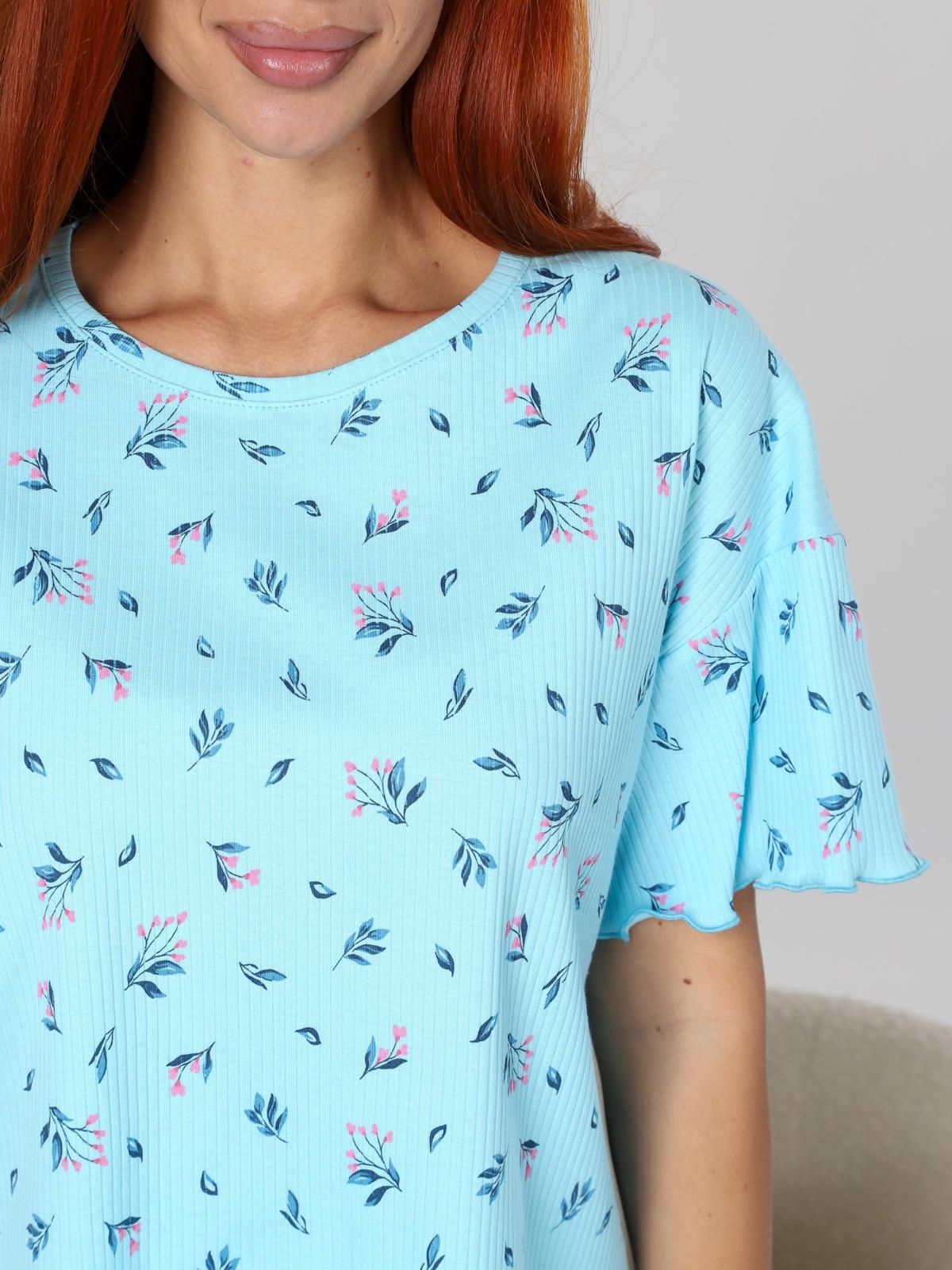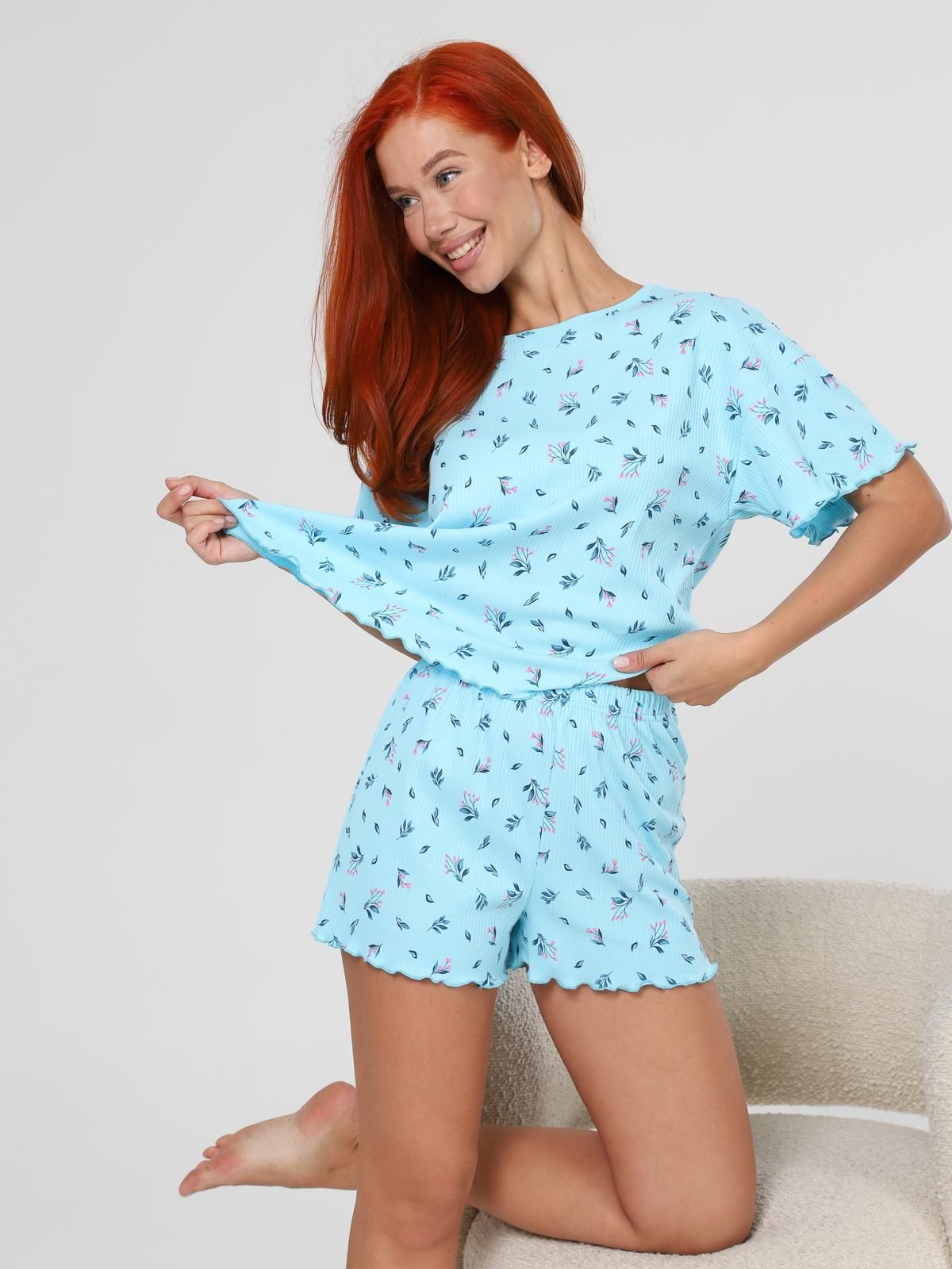 Пижама "Шодо" из набивного трикотажного полотна "кашкорсе" состоит из футболки и шорт. Футболка свободного покроя со спущенной линией плеча, короткими втачными рукавами, горловиной овальной формы, обработанной втачной планкой. Нижние срезы рукавов и низ изделия обработаны узкой обметочной строчкой, создающей красивый волнистый край. Шорты средней длины с цельнокроеным поясом с эластичной лентой. Нижние срезы шорт обработаны узкой обметочной строчкой, создающей красивый волнистый край.