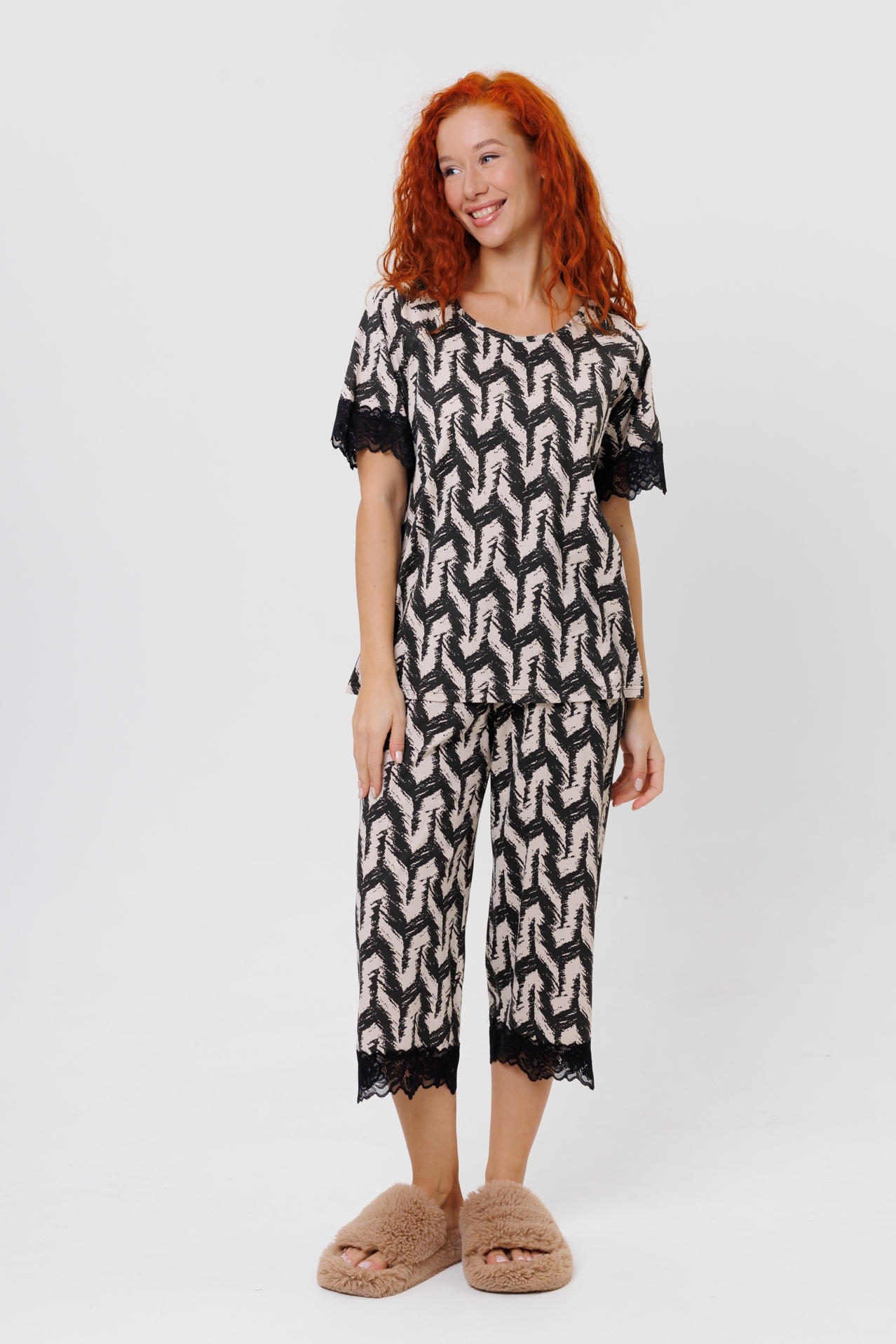 Женская пижама с бриджами из кулирки — это удобный комплект для дома и сна, изготовленный из тонкого трикотажного полотна. Кулирка (кулирная гладь) — это материал из 100% хлопка, который хорошо тянется в ширину, практически не мнётся, не садится после стирки и позволяет коже дышать.