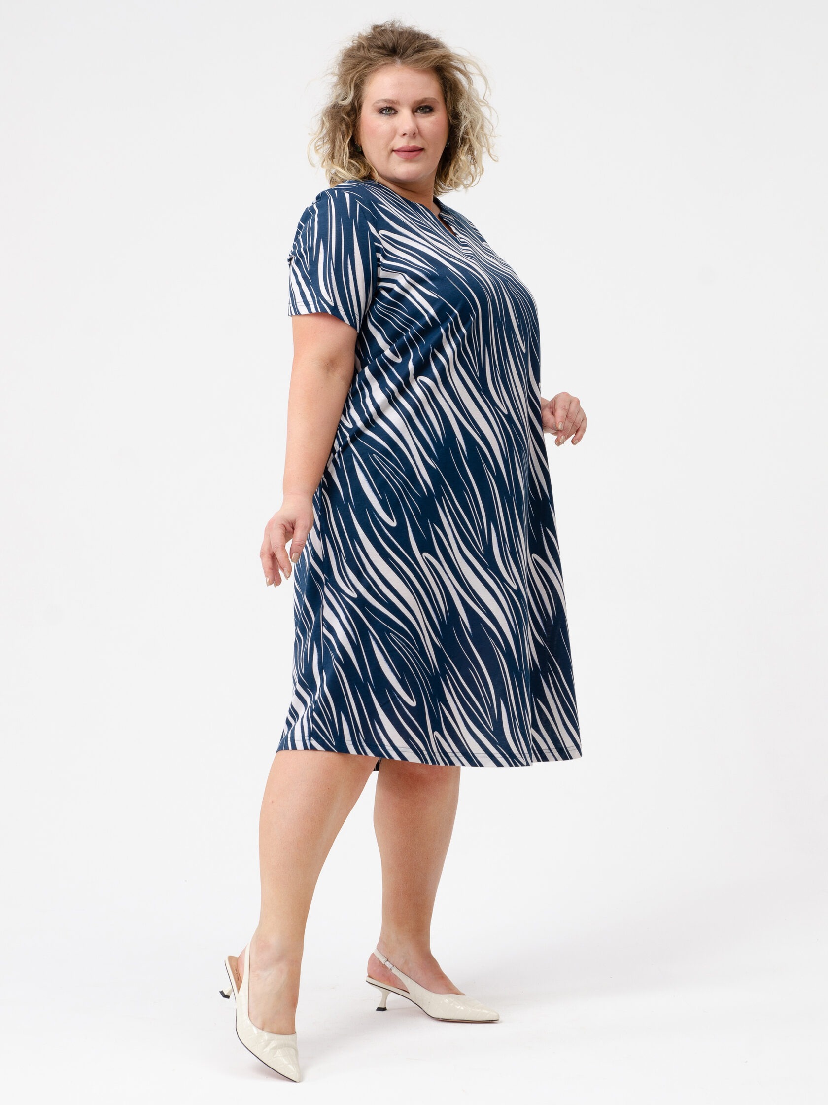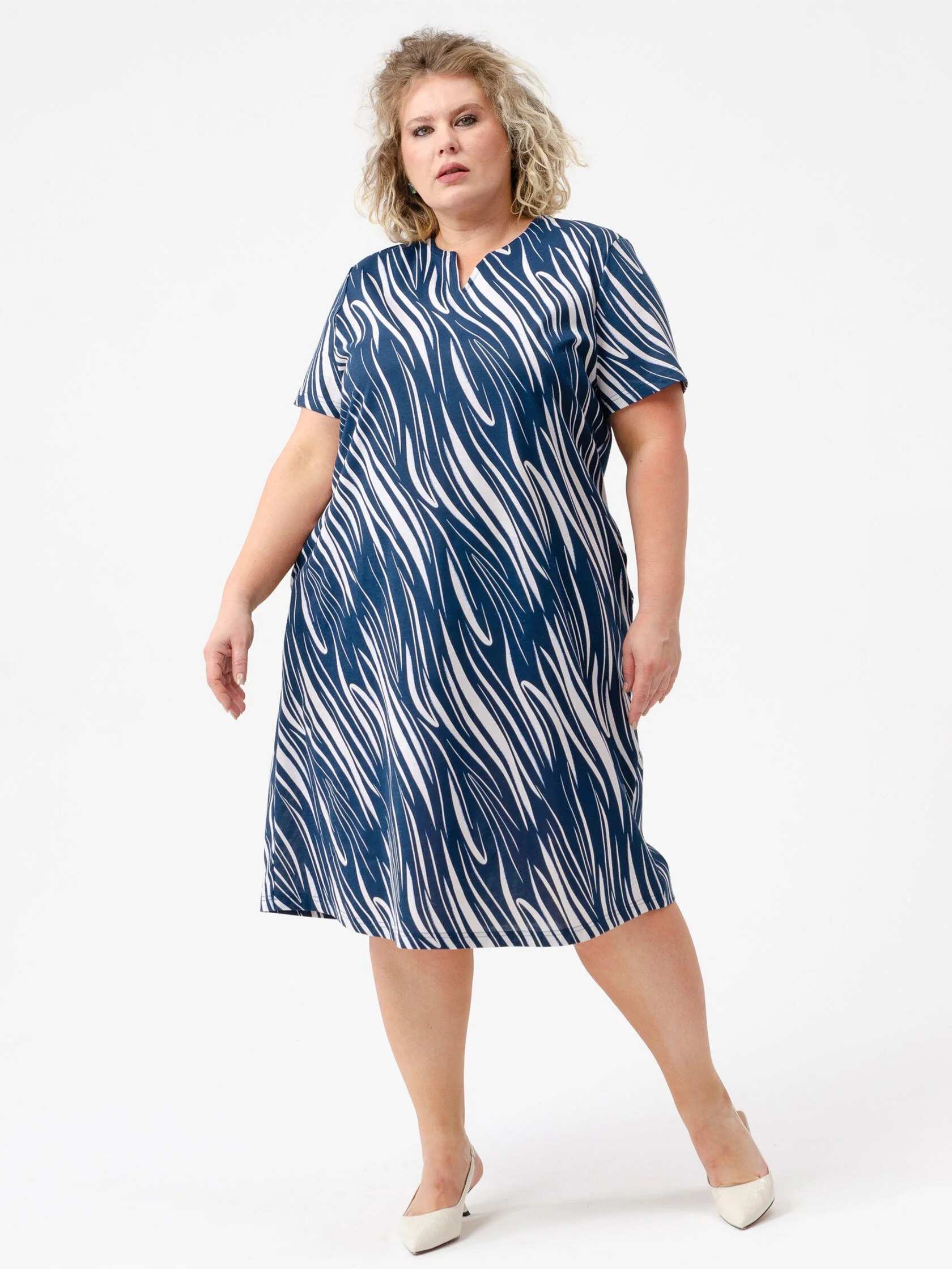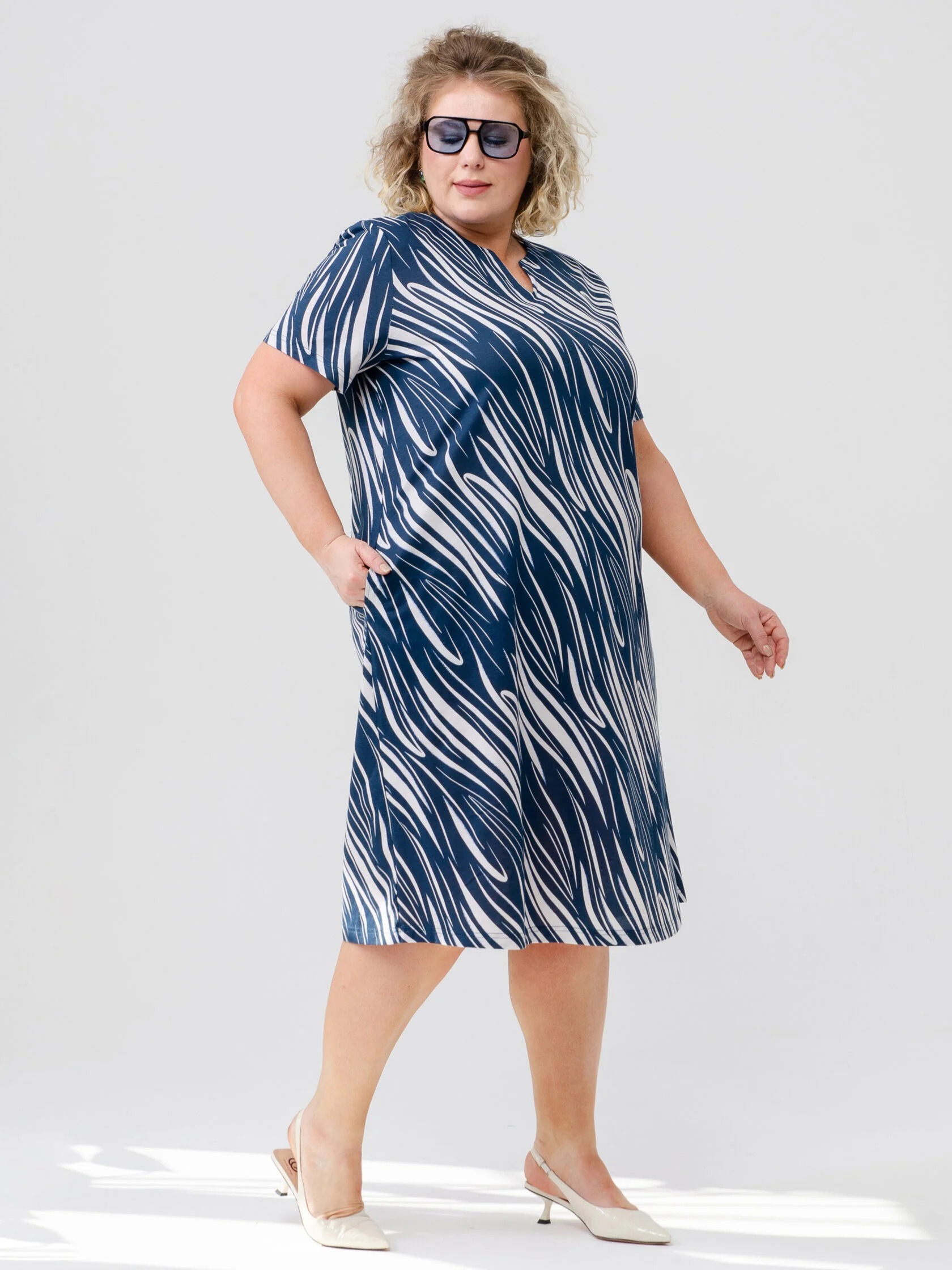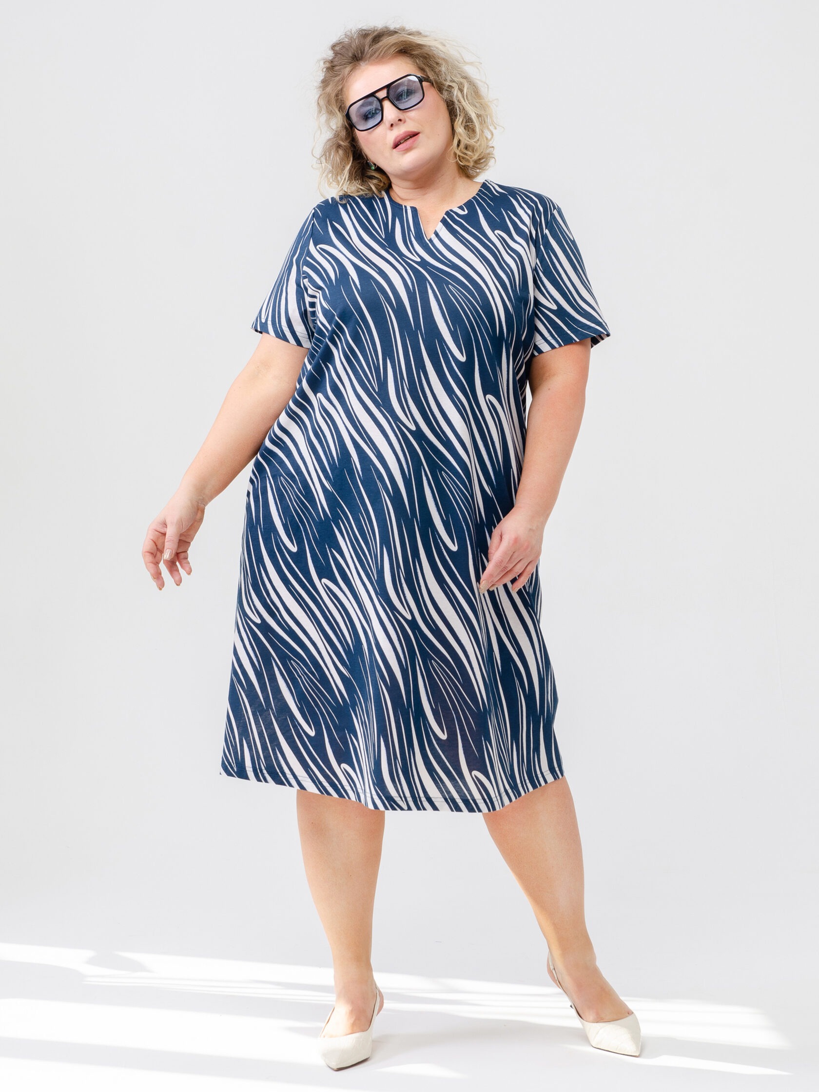 Женское платье "Мираж" 2229-К / Синий с короткими рукавами, средней длины. Женское летнее хлопковое платье отшивается в яркой расцветке и имеет широкий размерный ряд.