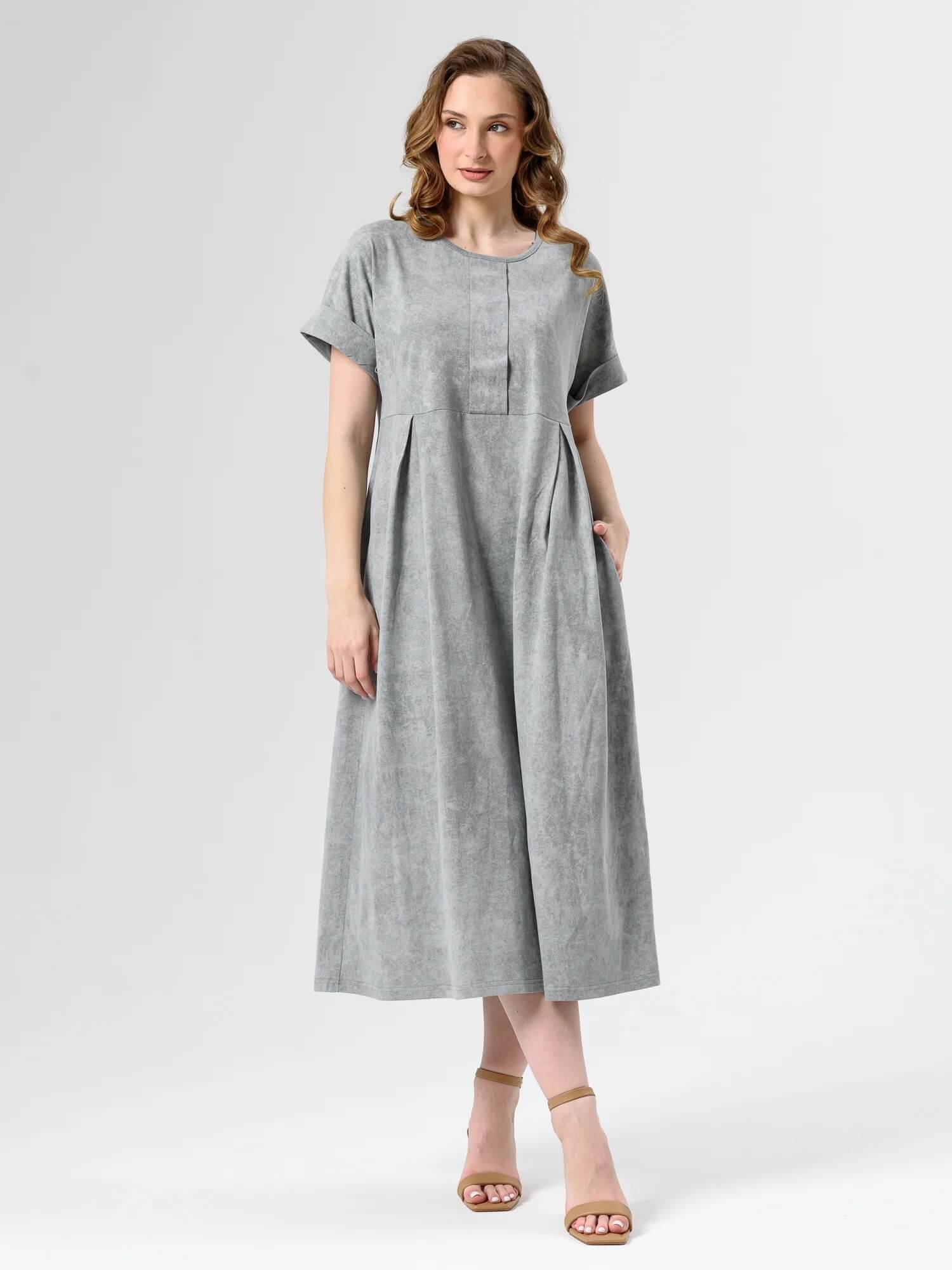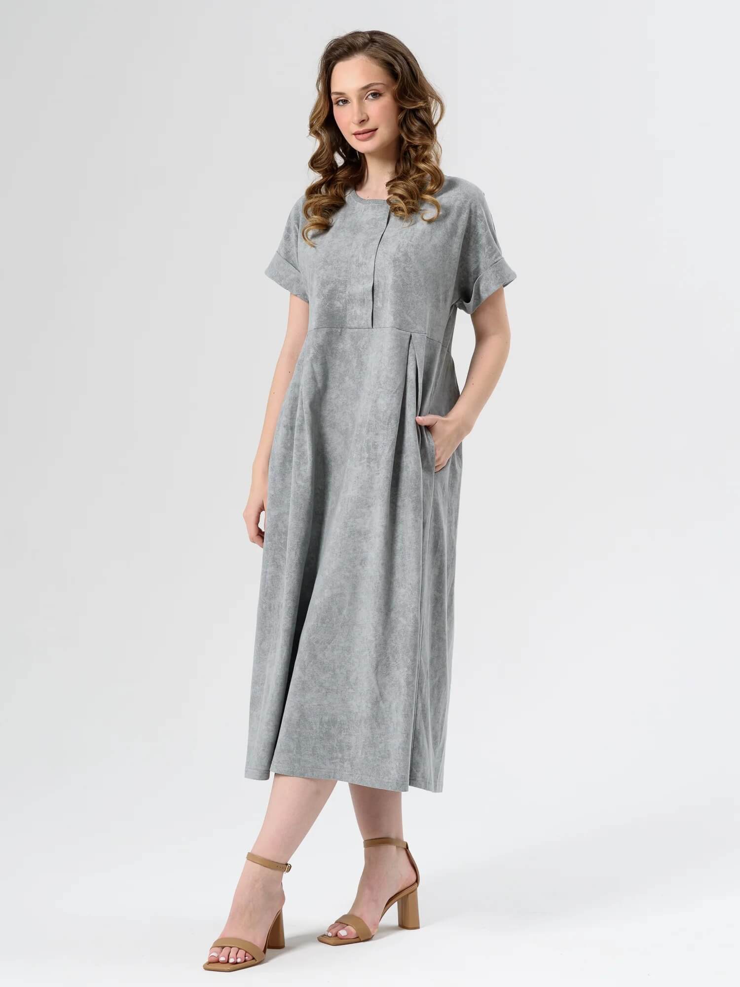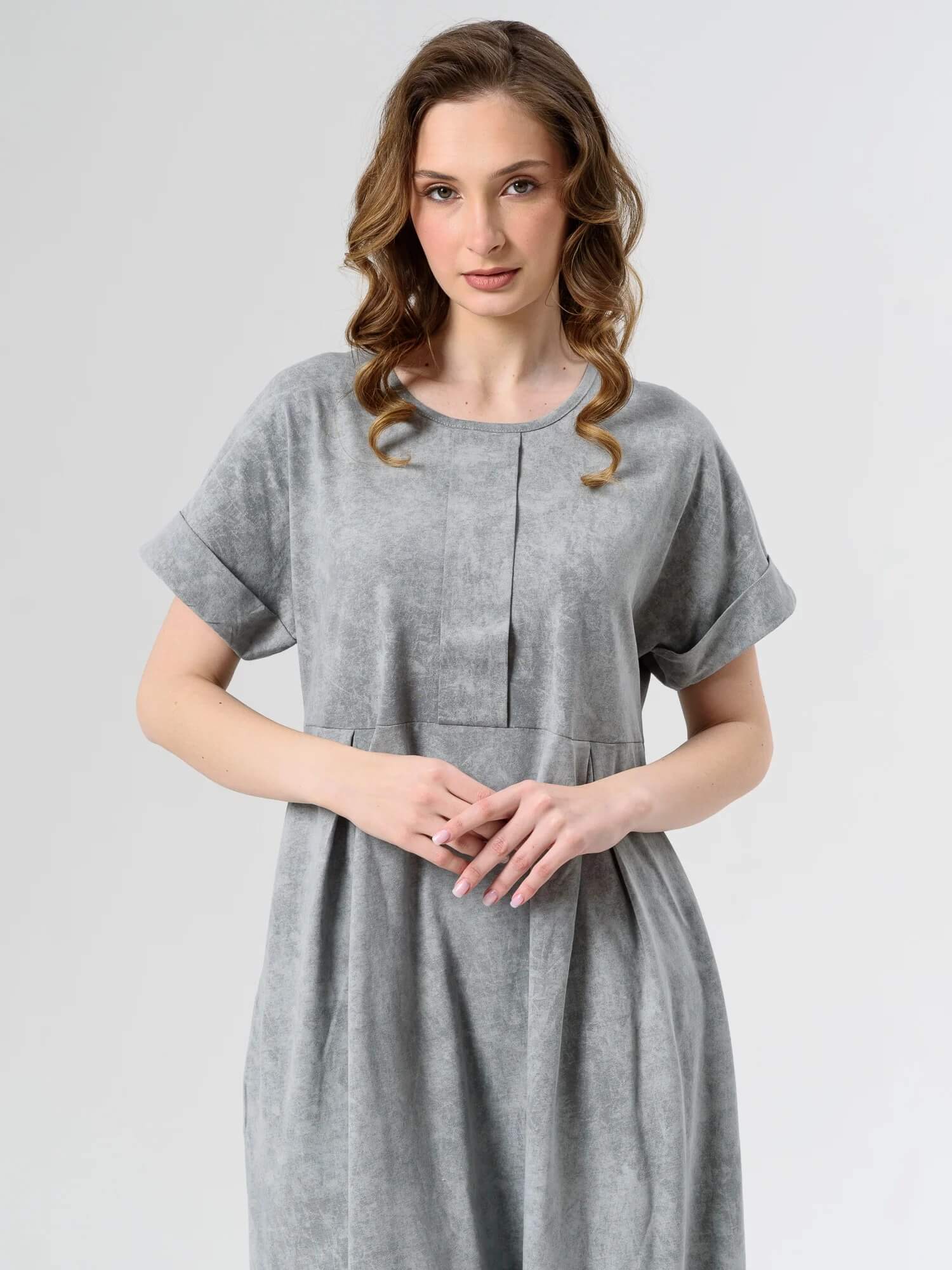 Женское платье "Винтаж" 2285-К / Серый с короткими рукавами, отшивается из однотонной хлопковой ткани кулирки. Женское летнее платье длиной миди - отличный вариант для прогулок или в качестве домашней одежды.