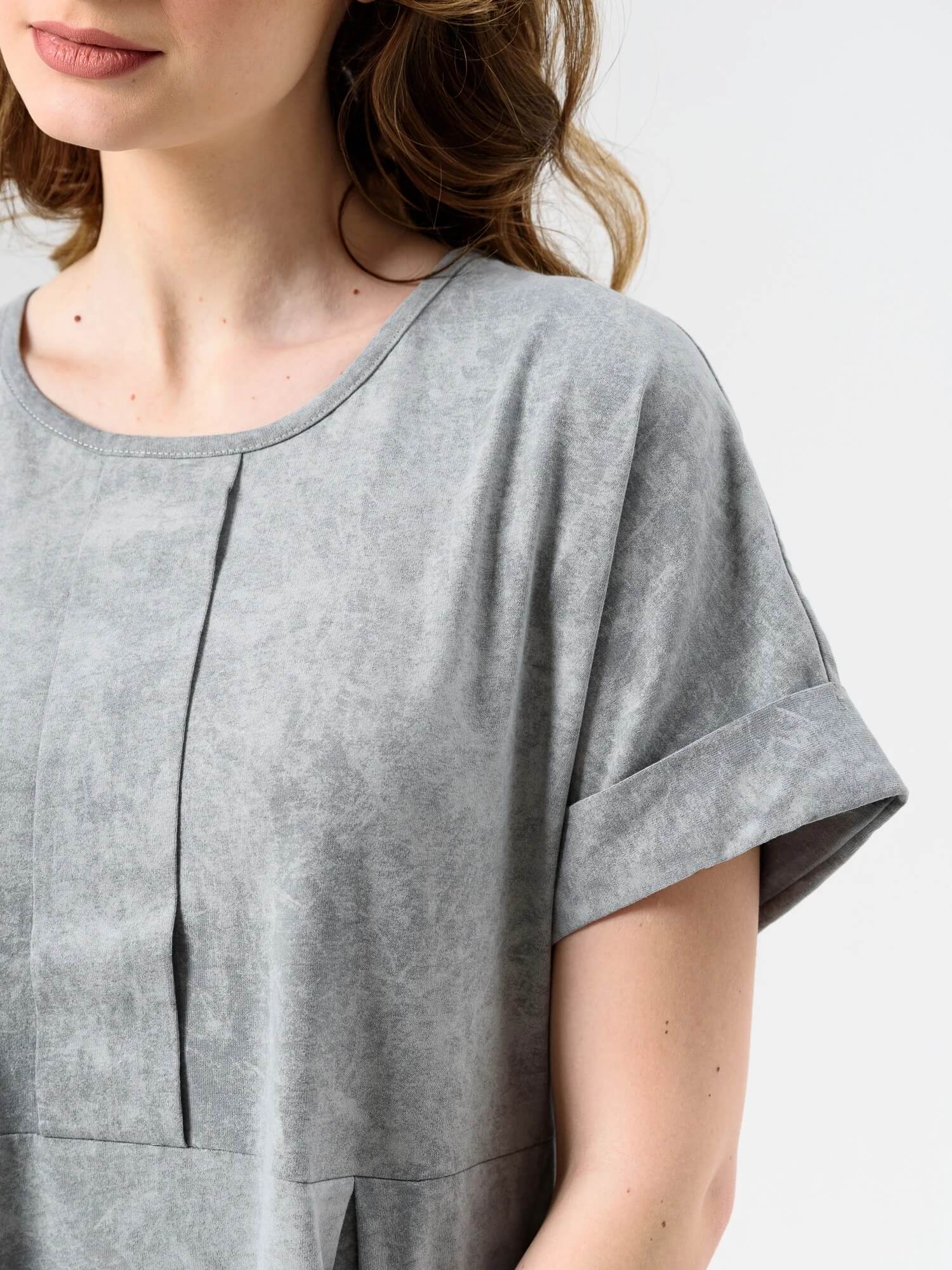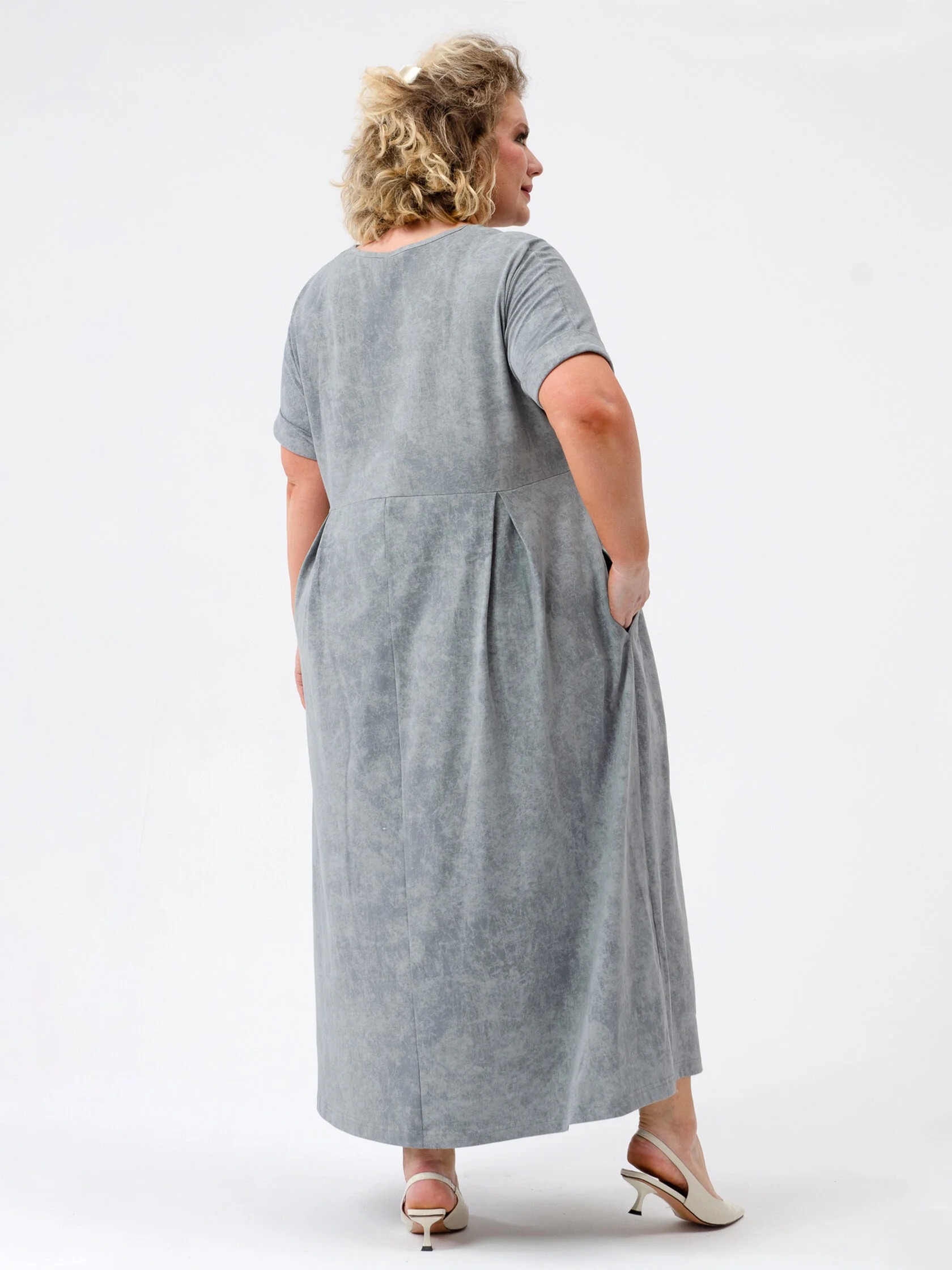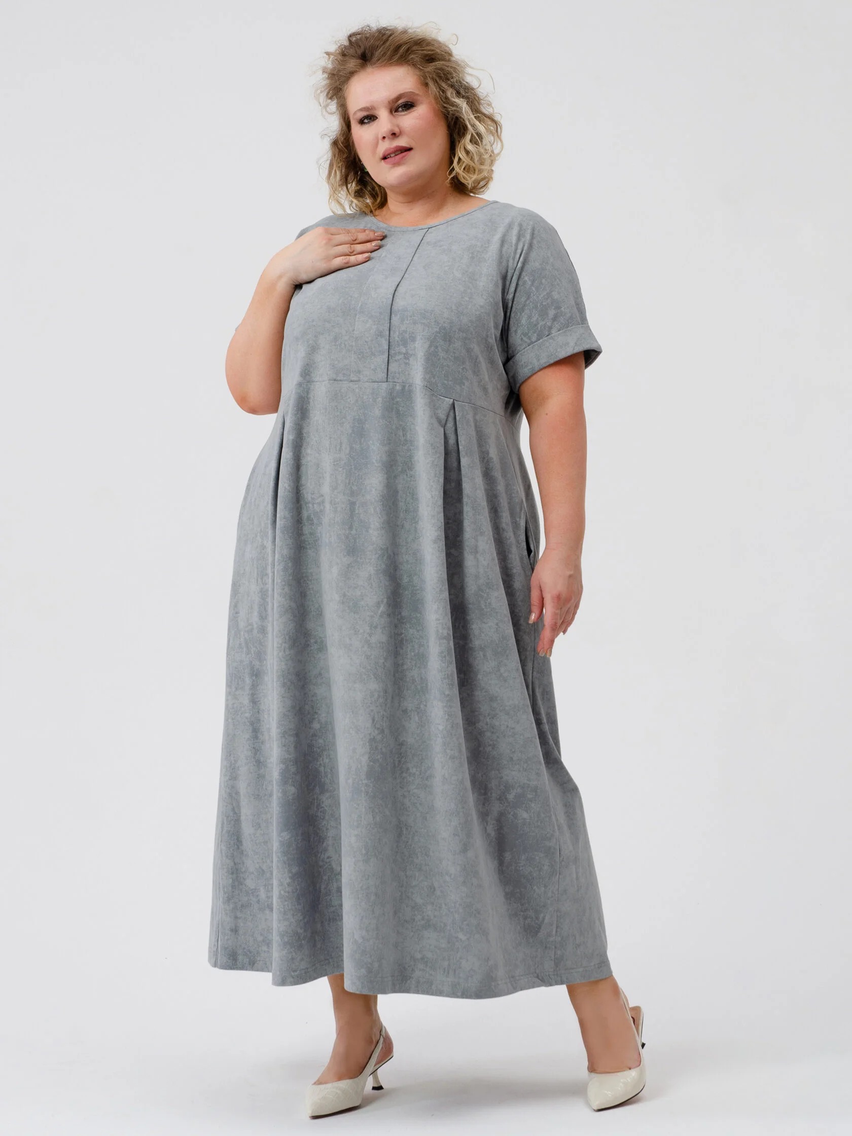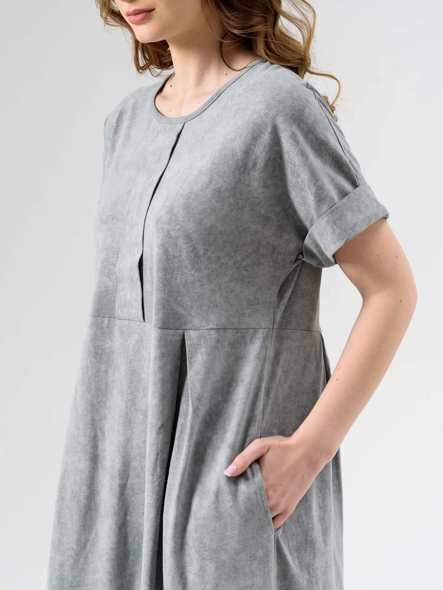 Женское платье "Винтаж" 2285-К / Серый с короткими рукавами, отшивается из однотонной хлопковой ткани кулирки. Женское летнее платье длиной миди - отличный вариант для прогулок или в качестве домашней одежды.