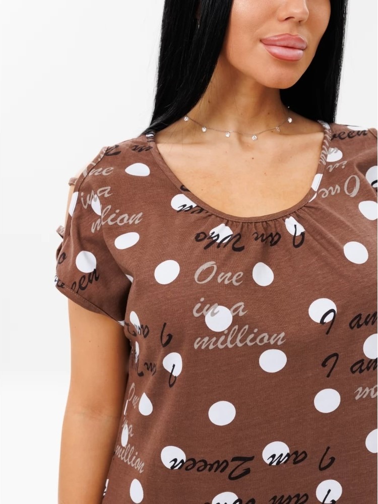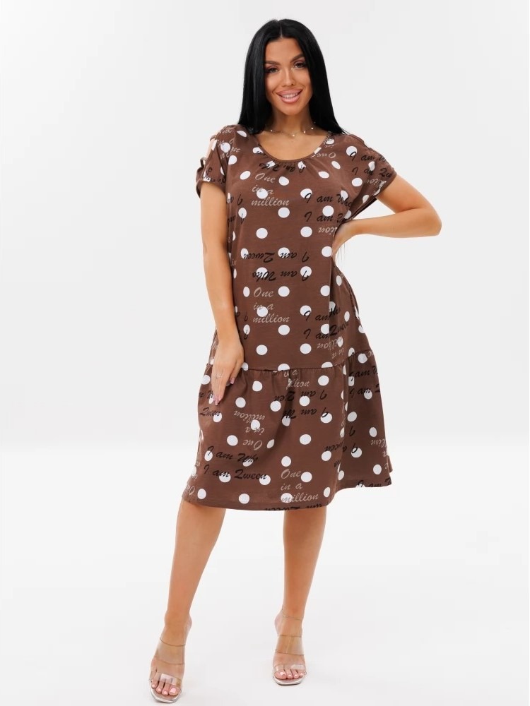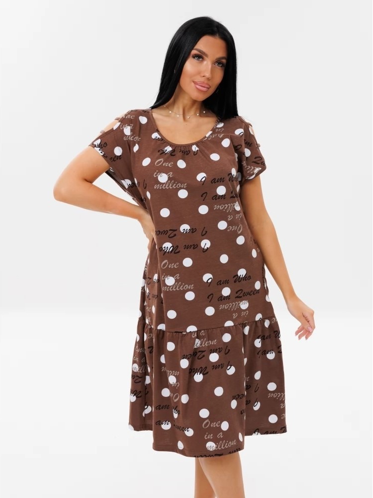 Женское платье Пл-82(К) / Коричневый (горох + надписи) с