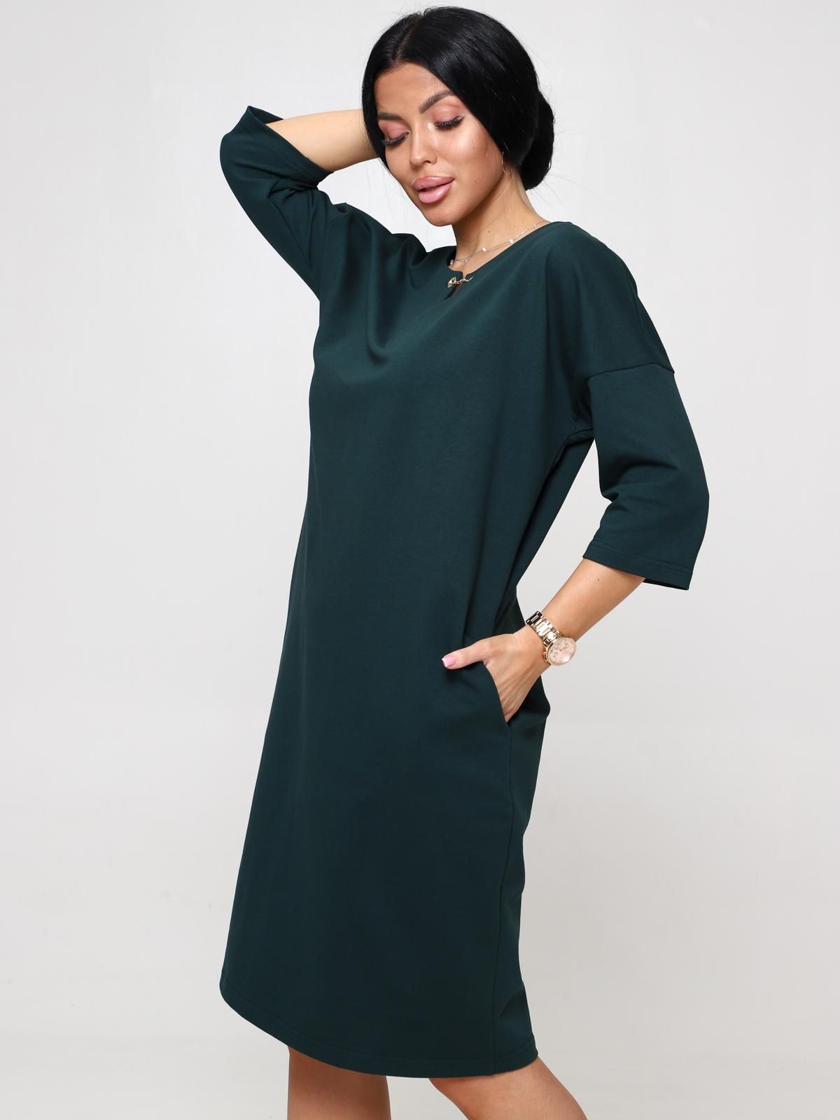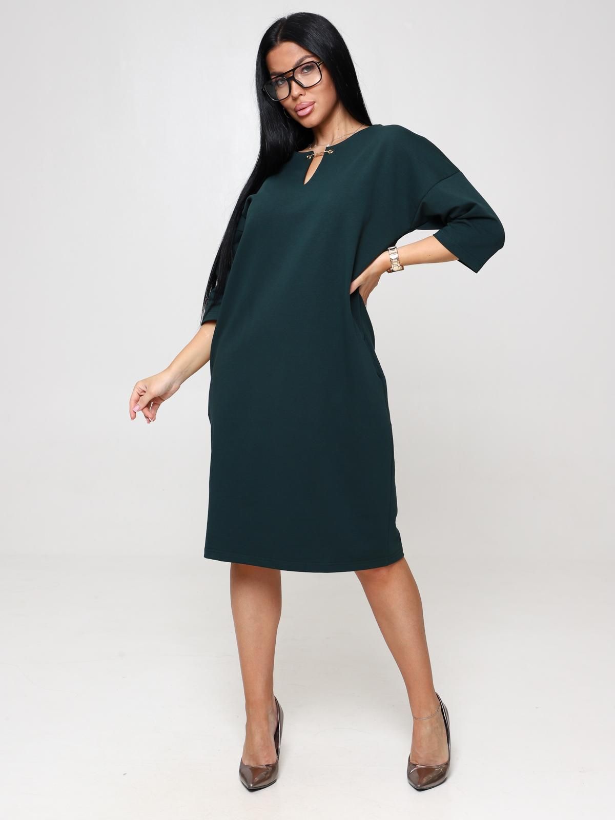 Платье подойдет для торжественного случая, а так же для повседневной носки. Модель прямого силуэта, длиной до колен, с карманами в боковых швах, рукав ¾. Модная, универсальная модель походит всем - стройным женщинам и дамам с формами.