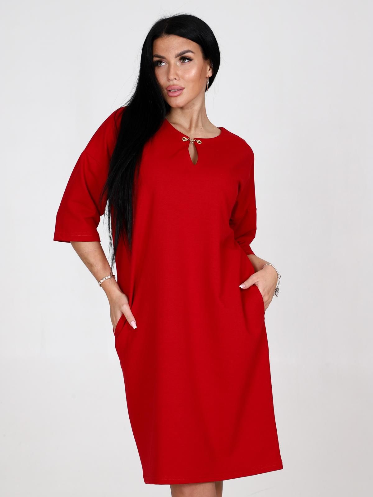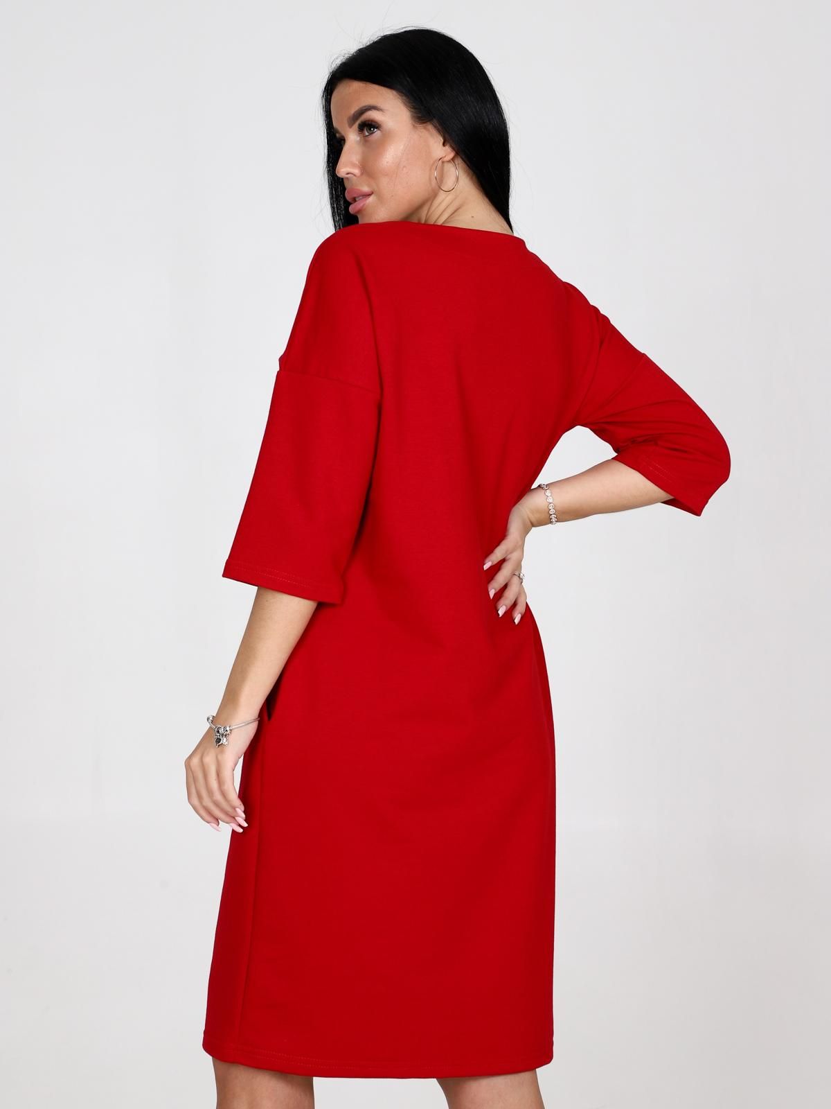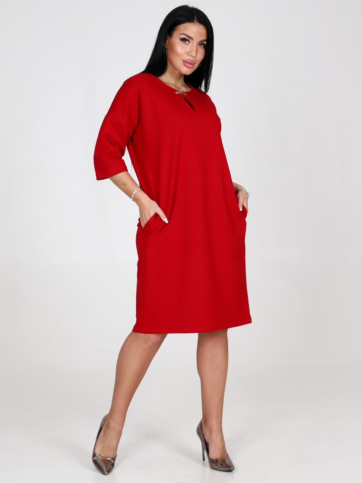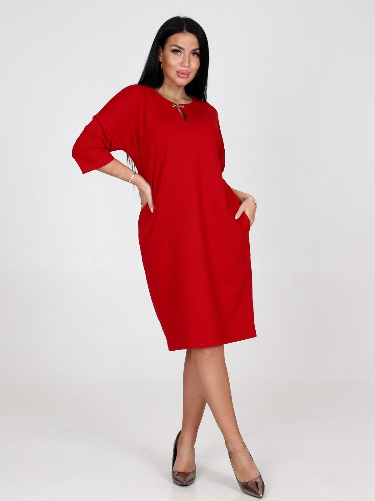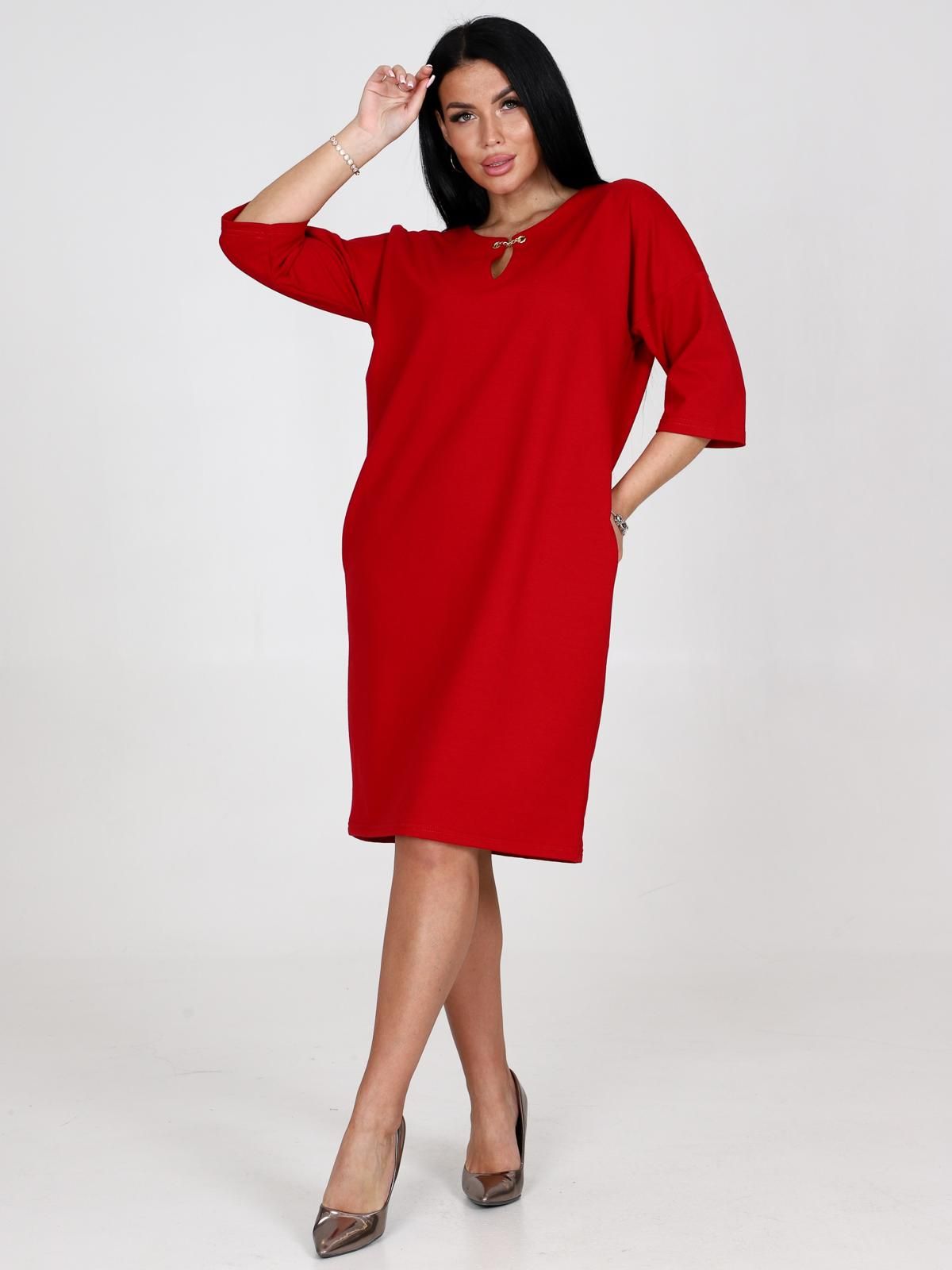 Платье подойдет для торжественного случая, а так же для повседневной носки. Модель прямого силуэта, длиной до колен, с карманами в боковых швах, рукав ¾. Модная, универсальная модель походит всем - стройным женщинам и дамам с формами.