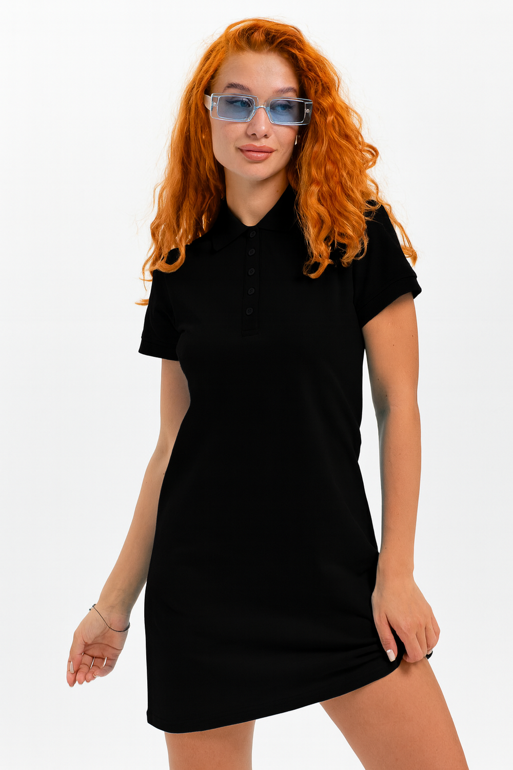 Отличный вариант для жаркого лета - модное платье-поло. Платье имеет отложной ворот и короткий рукав. Кроме того, вверху имеются акцентные пуговицы в цвет платья. Комфортная длина чуть выше колена и прямой крой делает это платье универсальным. Стильное и модное платье подойдет женщинам и девушкам разных возрастов. Хлопок обладает свойствами воздухопроницаемости, что так необходимо в жаркую весеннюю или летнюю погоду. Это изделие прекрасно сочетается как со спортивной обувью, так с классическими туфлями и балетками. На более прохладную погоду можно создавать многослойные образы, сочетая платья с другой одеждой. Это отличный вариант на повседневную основу на работу в офис, прогулки или учебу. Благодаря достаточному свободному не обтягивающему прилеганию в области талии оно является максимально удобным и комфортным. Плотность 190гр/куб.м.