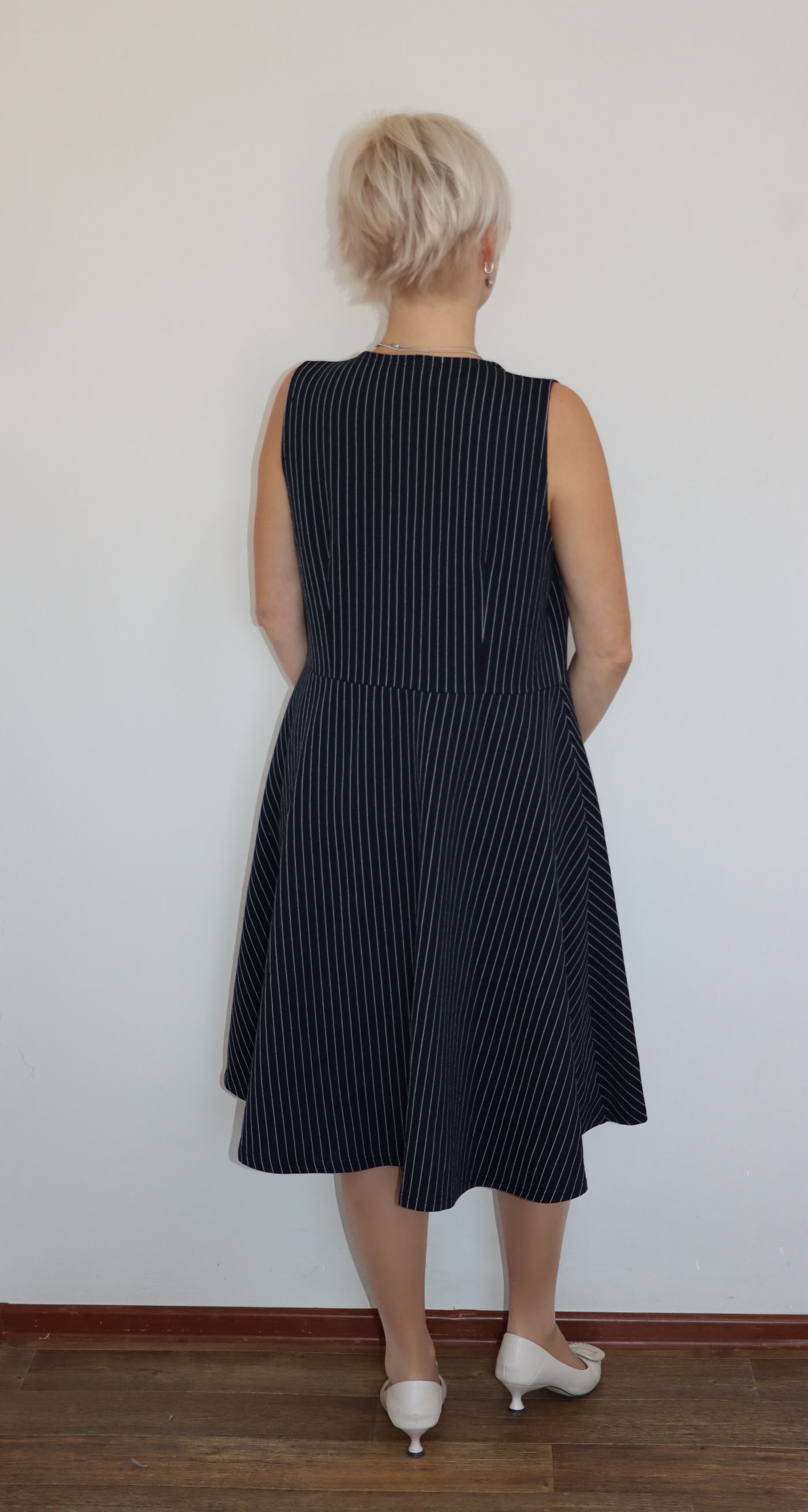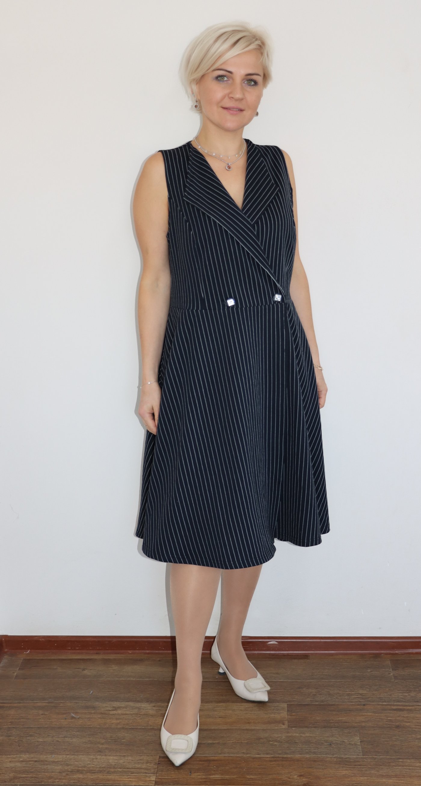 Классический фасон сарафана С1316 подходит для сочетания с блузами и футболками, хорошо садится на разные типы фигур.
