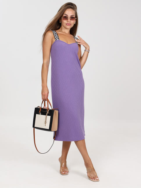 Широкие комфортные бретели, фигурное оформление линии декольте, оптимальная длина миди.