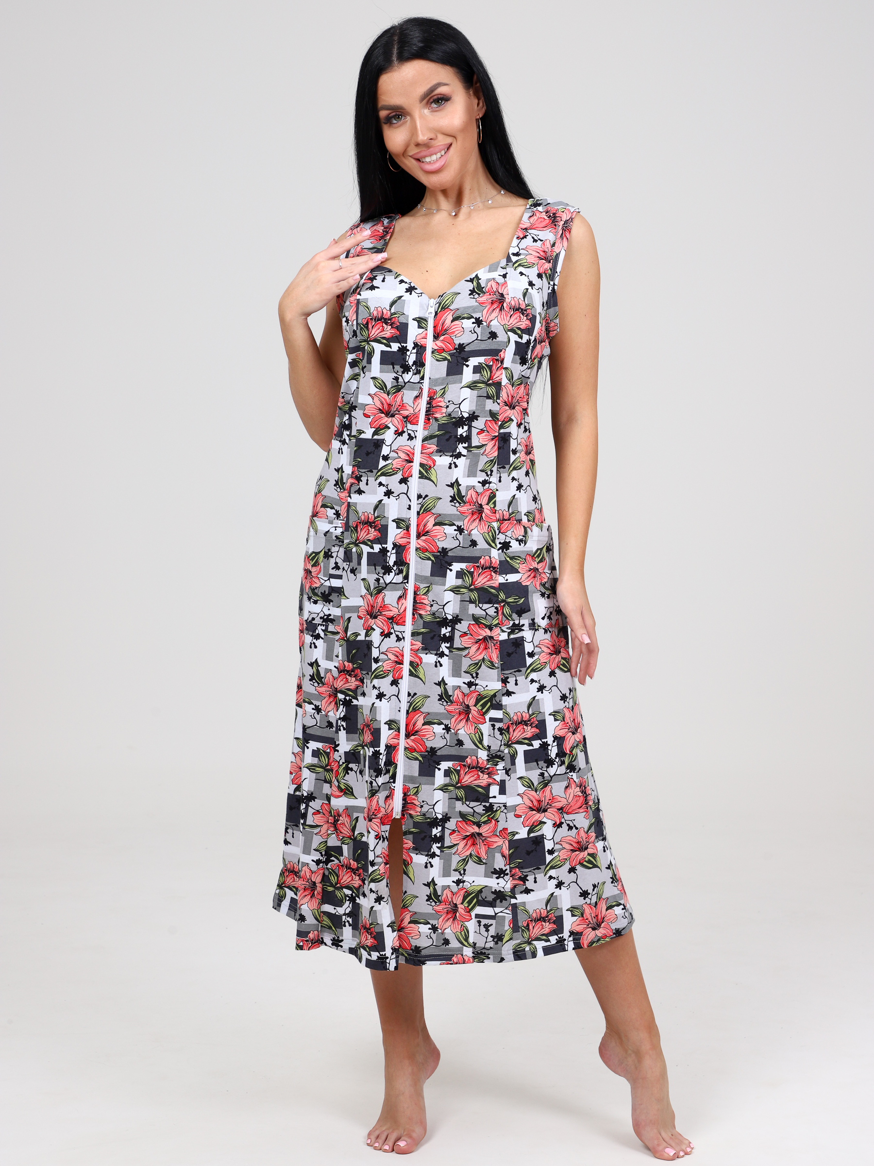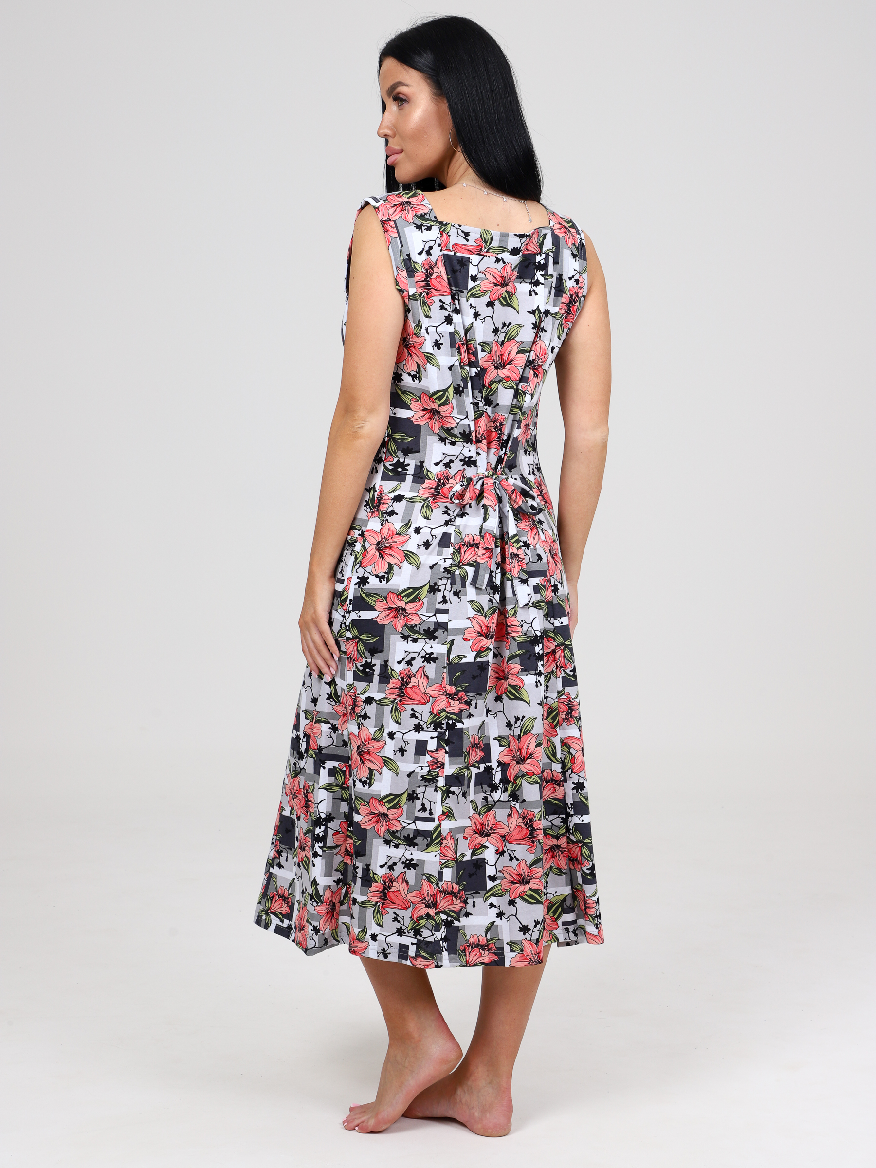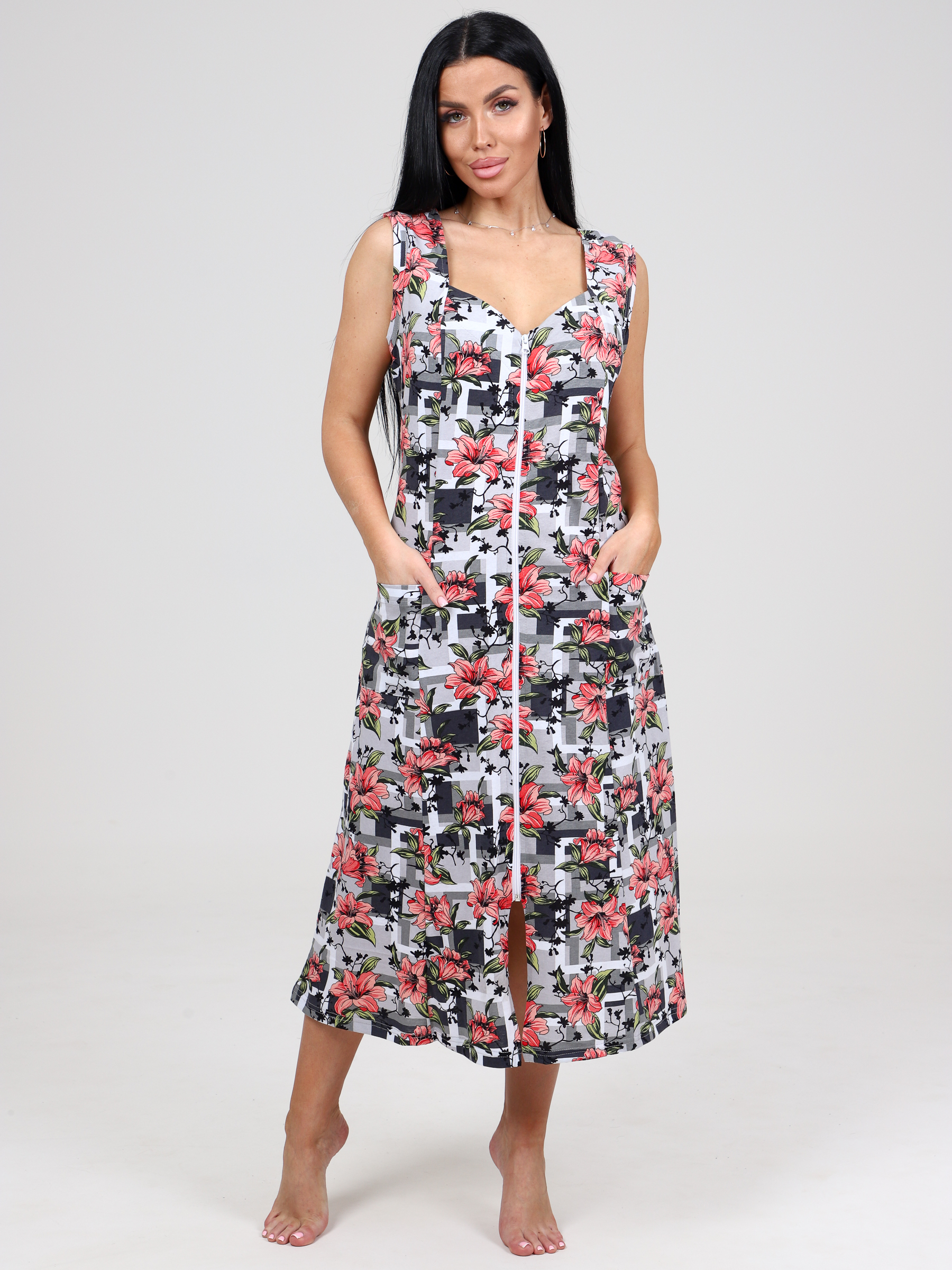 Сарафан трикотажный из кулирки на молнии, с 2 накладными карманами ШИРОКАЯ БРЕТЕЛЬ СК-563 / Красные лилии на сером. Проймы окантованы. Сарафан с рельефами, поэтому сидит очень хорошо на женской фигуре. Сарафан трикотажный больших размеров в боковых швах имеет 2 пояска, которые помогут отрегулировать силуэт. Сарафан больших размеров сшит из приятной, натуральной, дышащей ткани. Наш трикотажный сарафан порадуют девушек и женщин любого возраста.