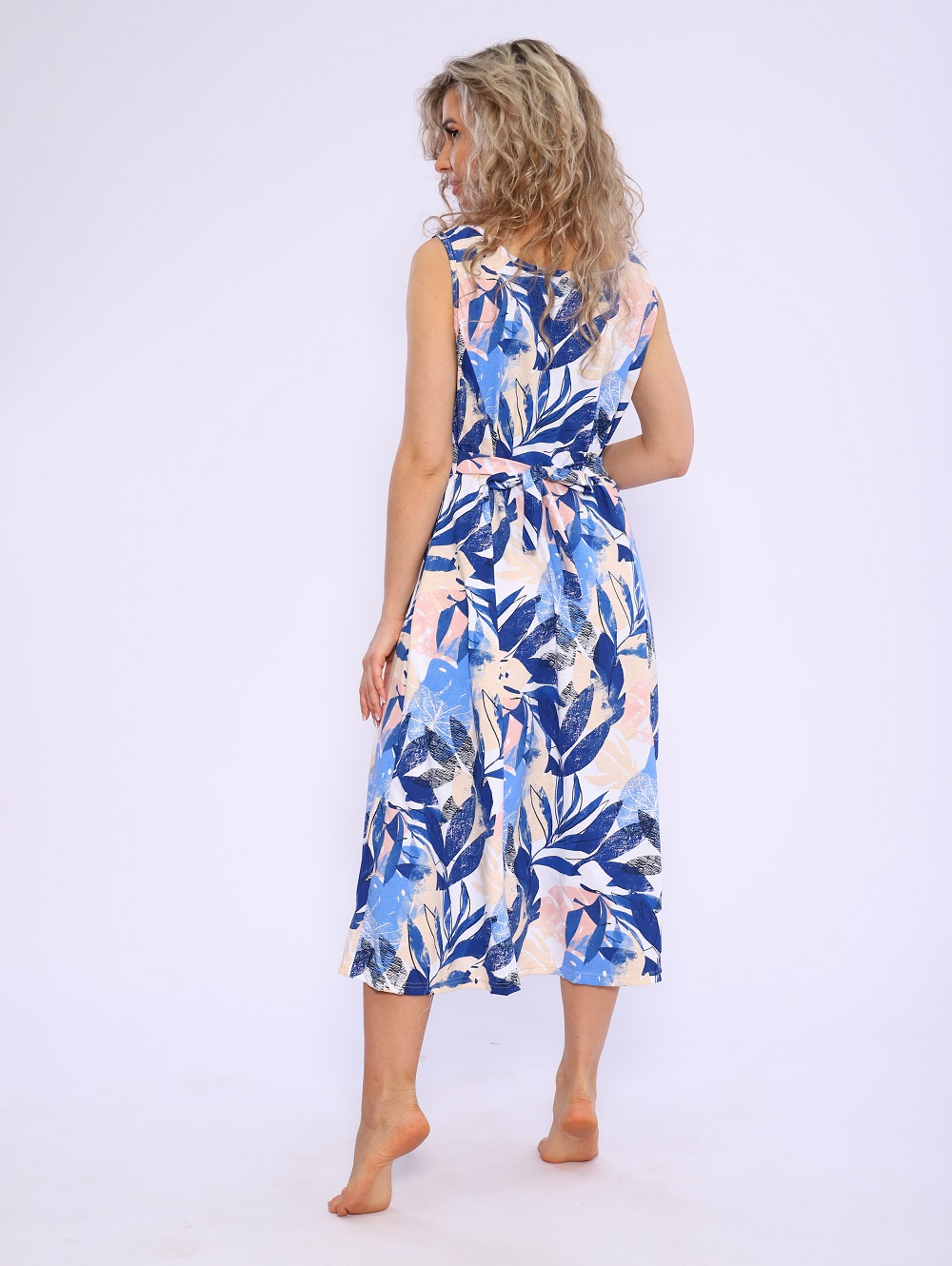 Сарафан женский Мод.576 Синий из трикотажного полотна «кулирка». Легкий женский сарафан на лето ярких расцветок, расклешенный в бёдрах свободный, а не прямой отличный вариант для отдыха.