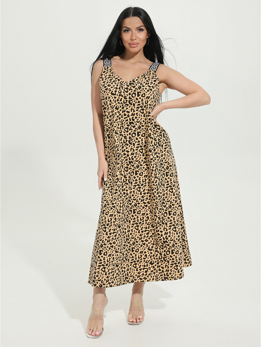 Сарафан женский Амира А-образного силуэта, длиной до щиколотки. Вырез горловины на полочке и спинке V- образный.