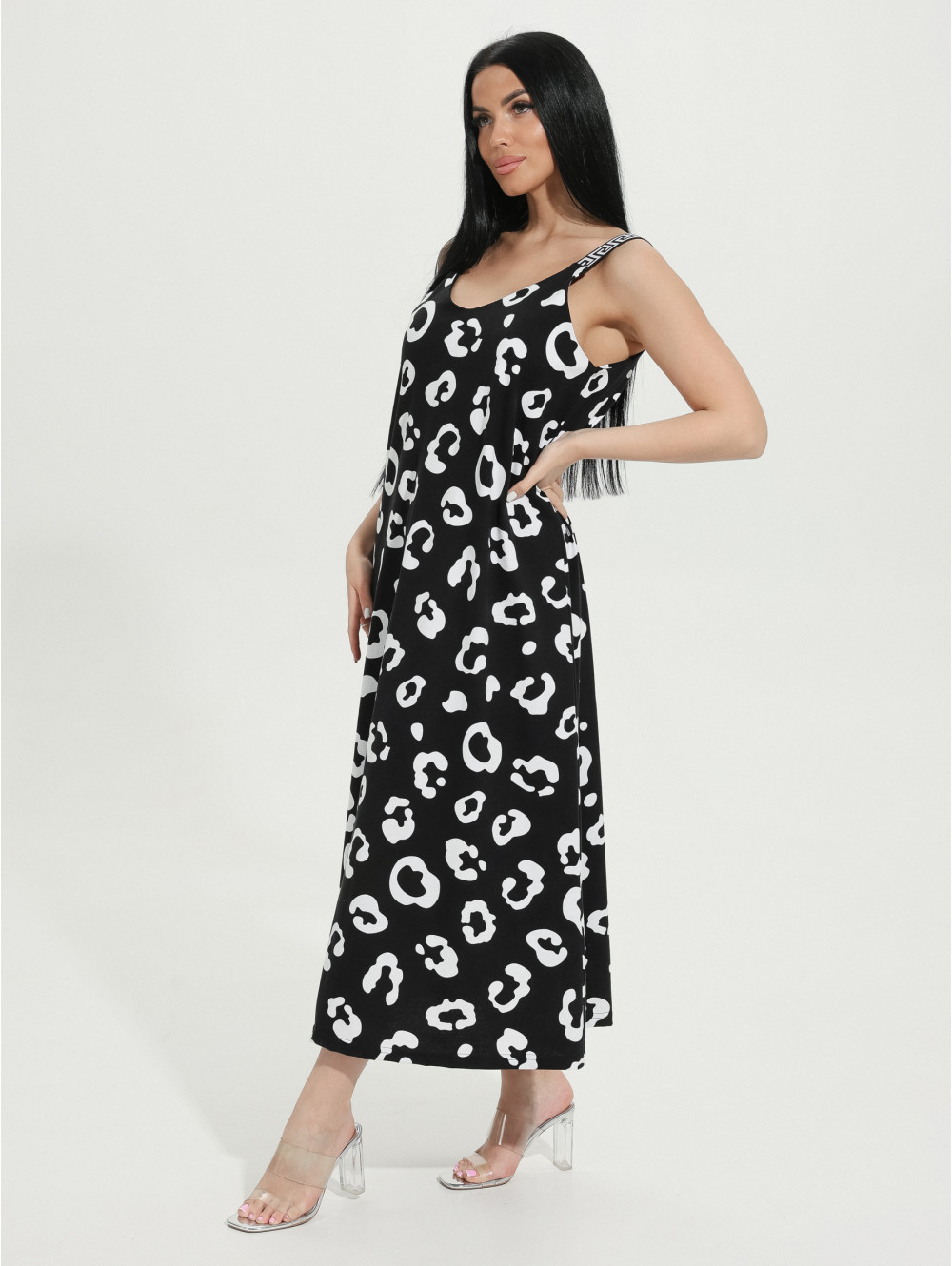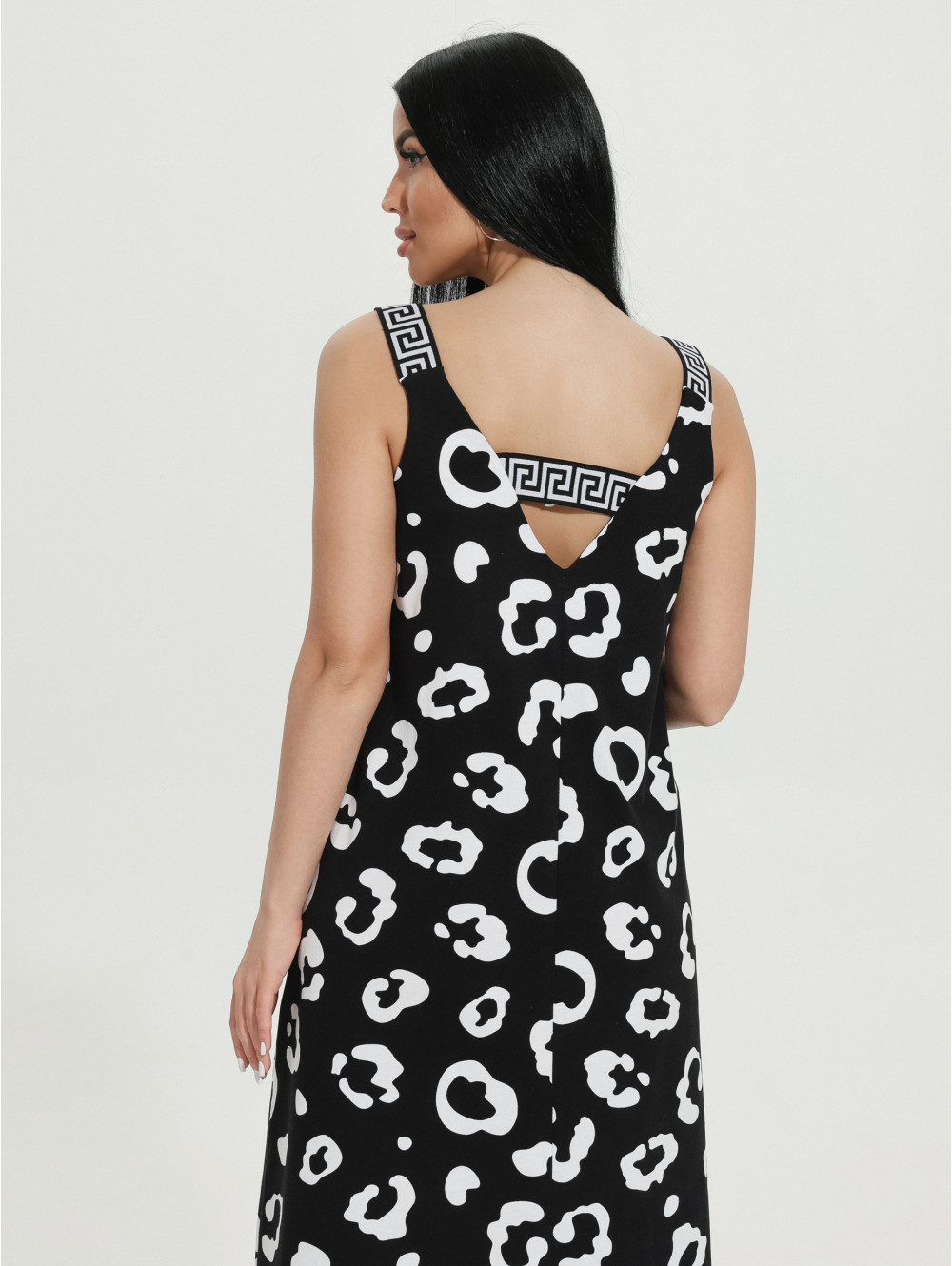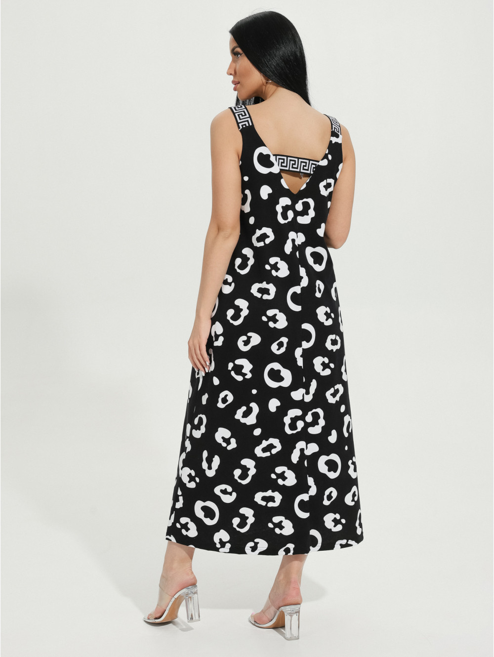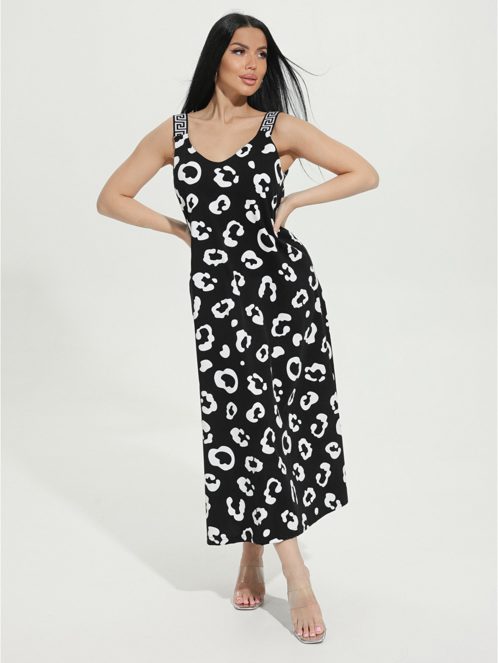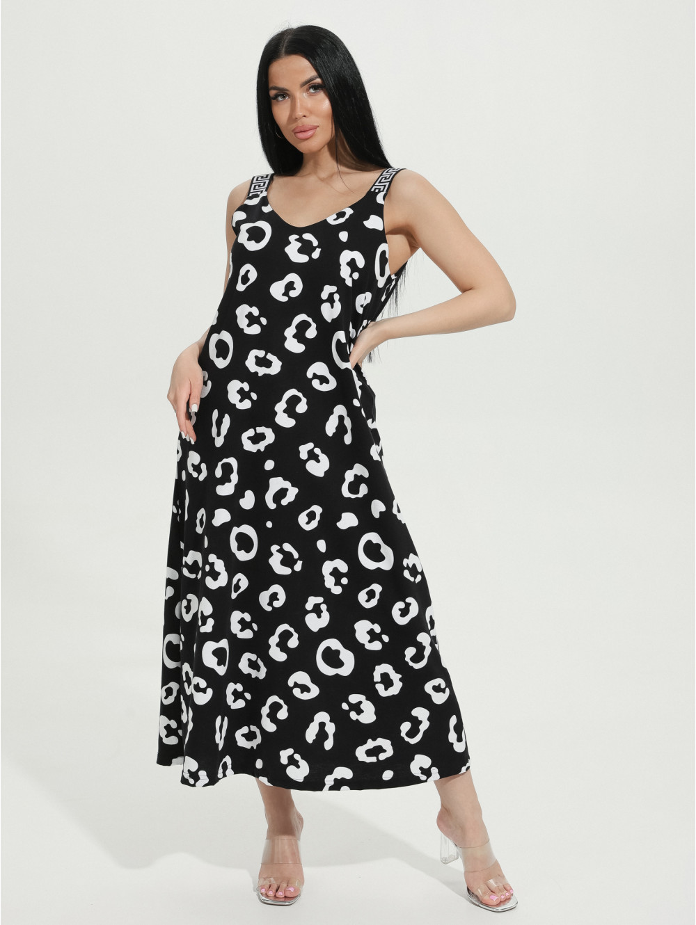Сарафан женский Амира А-образного силуэта, длиной до щиколотки. Вырез горловины на полочке и спинке V- образный.