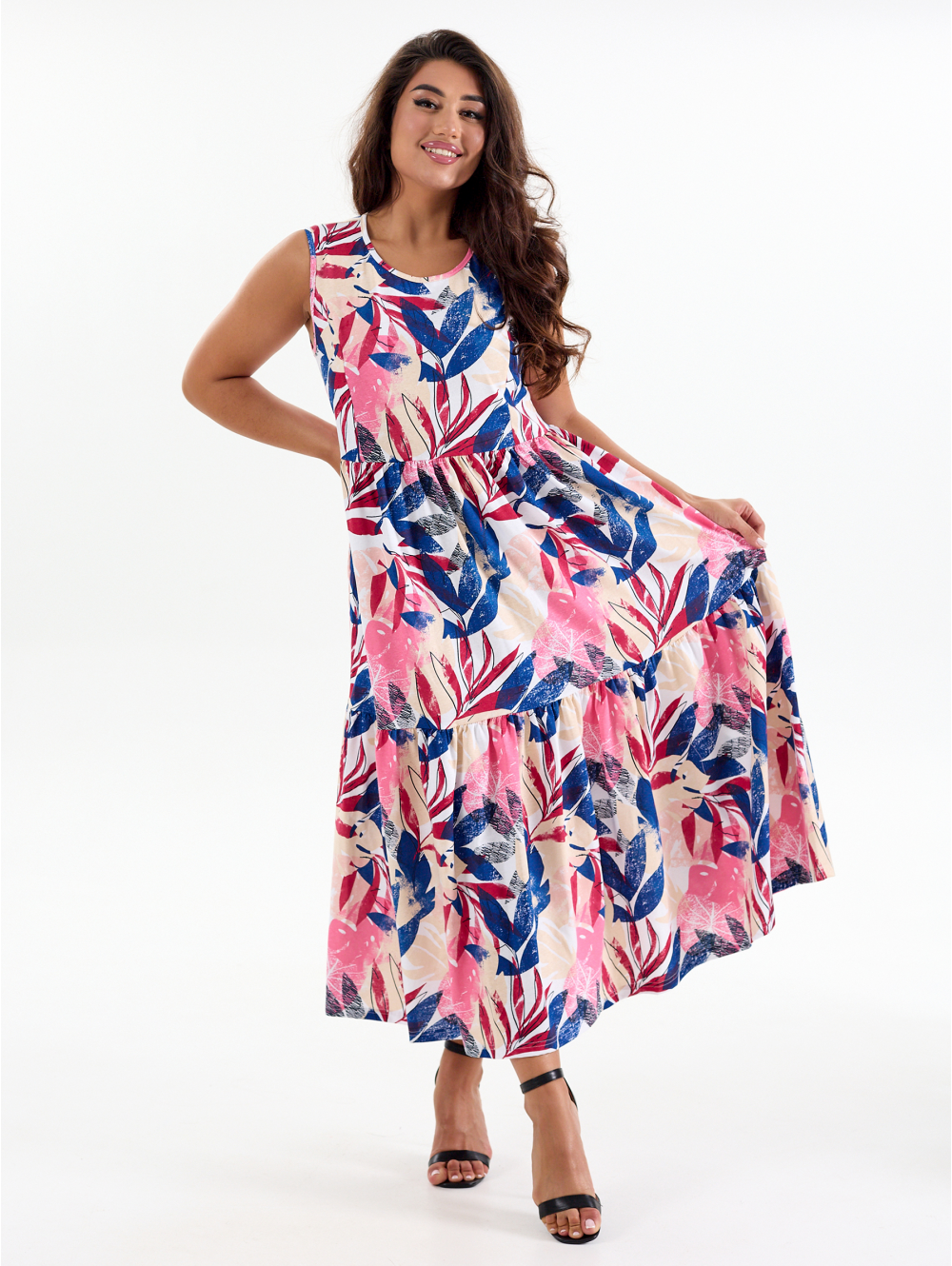 Огромной популярностью пользуются длинные платья-сарафаны. Главная особенность сарафана в его простоте и легкости, незаменимой в жаркую погоду. Открытые руки, спина и плечи позволяют греться в лучах солнца. Сарафан НЕЖНОСТЬ с отрезным лифом и широкими бретелями. Линия талии завышенная, лиф с рельефами, юбка на сборке в два яруса.